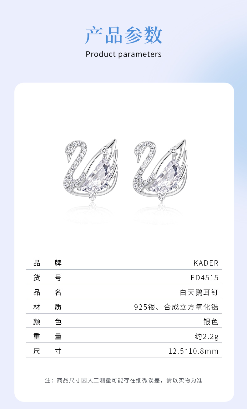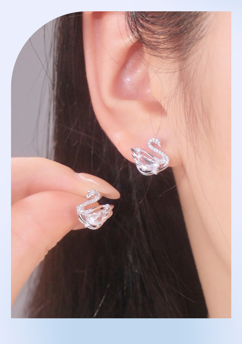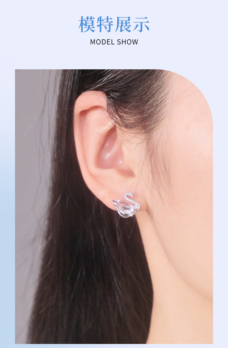卡蒂罗/KADER白天鹅形镶钻耳钉 浪漫百搭优雅气质满镶闪钻高贵吸睛纯银耳饰 春夏百搭约会温柔甜蜜饰爱配饰 925银 耳钉 女款 银色 520礼盒闺蜜同款