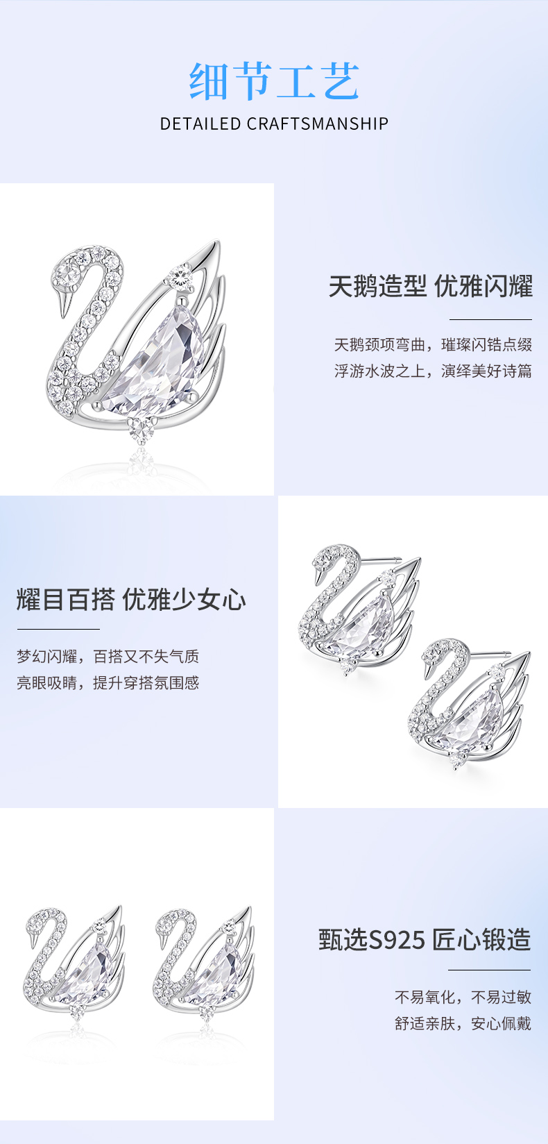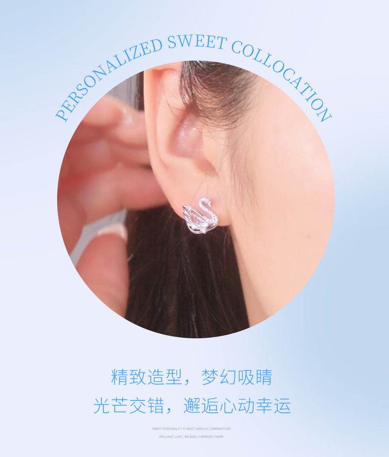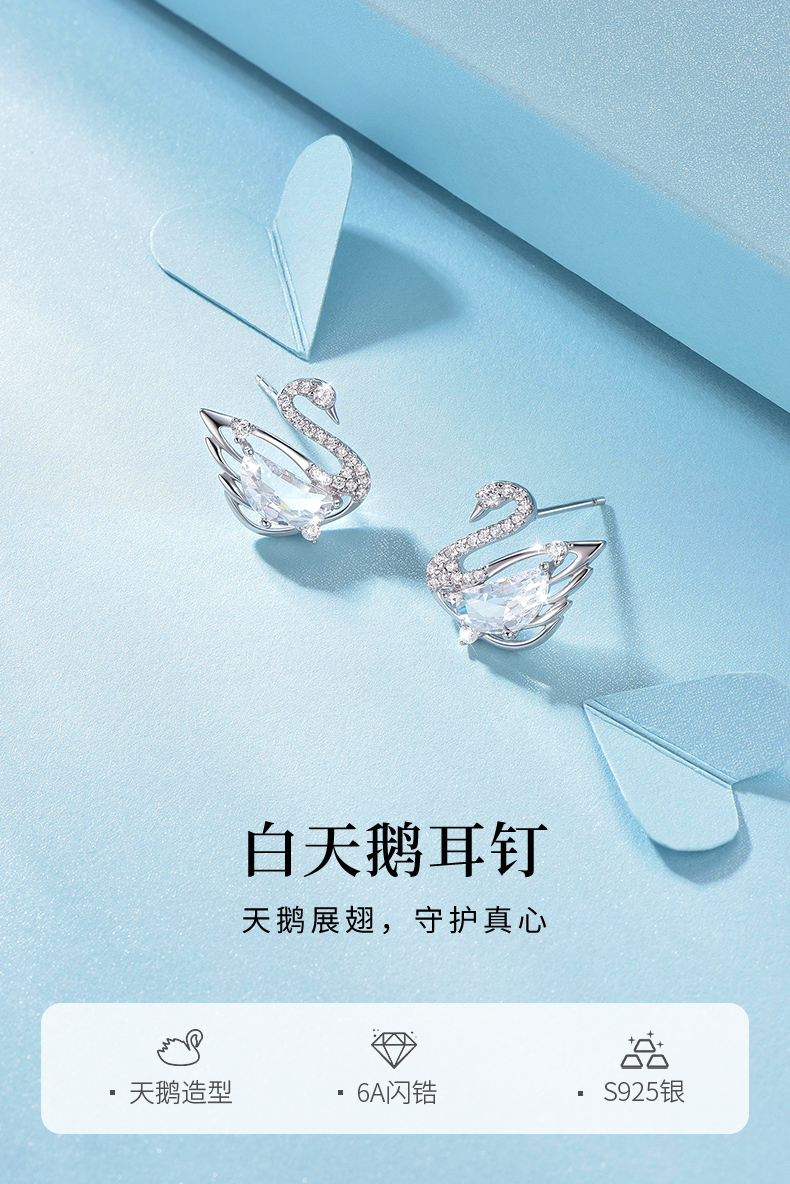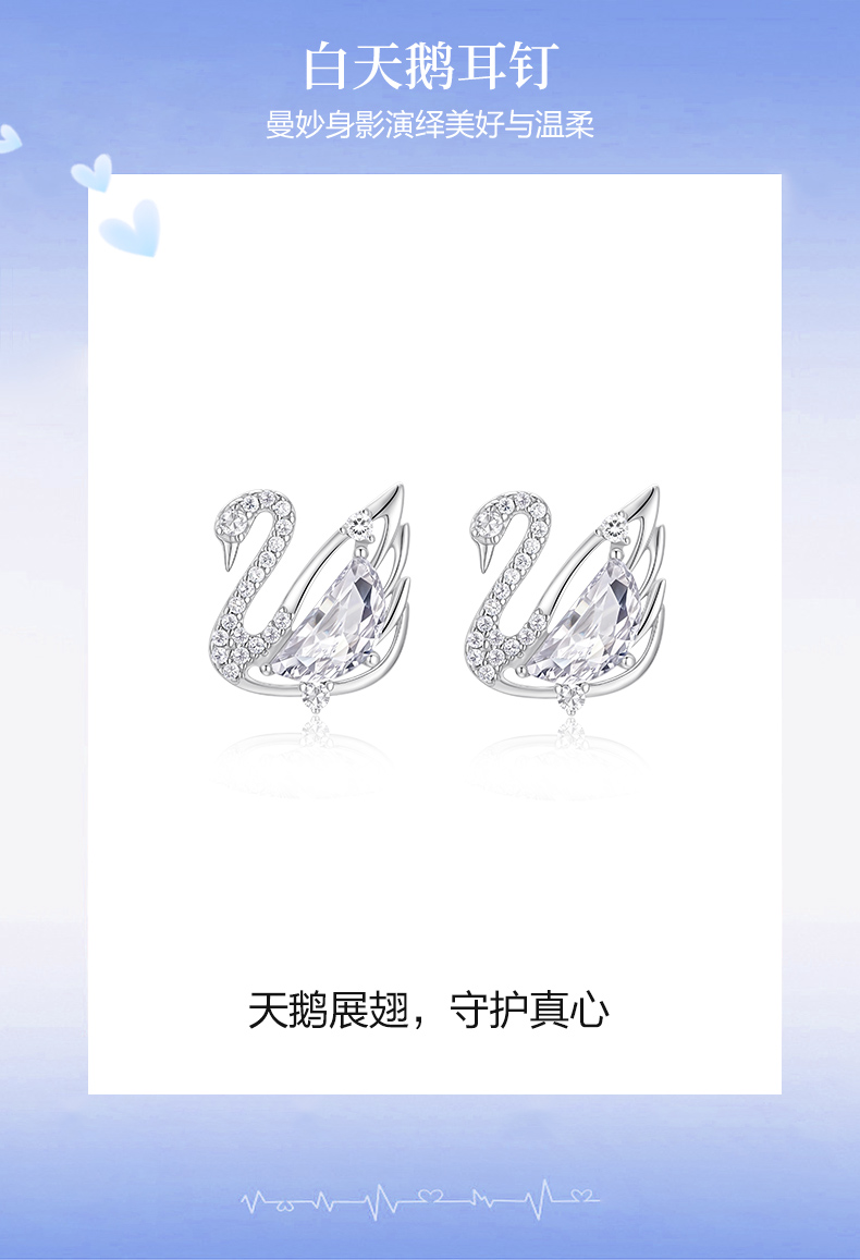 卡蒂罗/KADER白天鹅形镶钻耳钉 浪漫百搭优雅气质满镶闪钻高贵吸睛纯银耳饰 春夏百搭约会温柔甜蜜饰爱配饰 925银 耳钉 女款 银色 520礼盒闺蜜同款