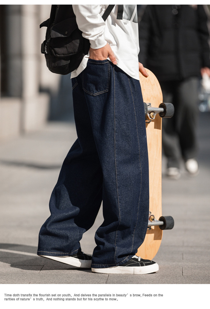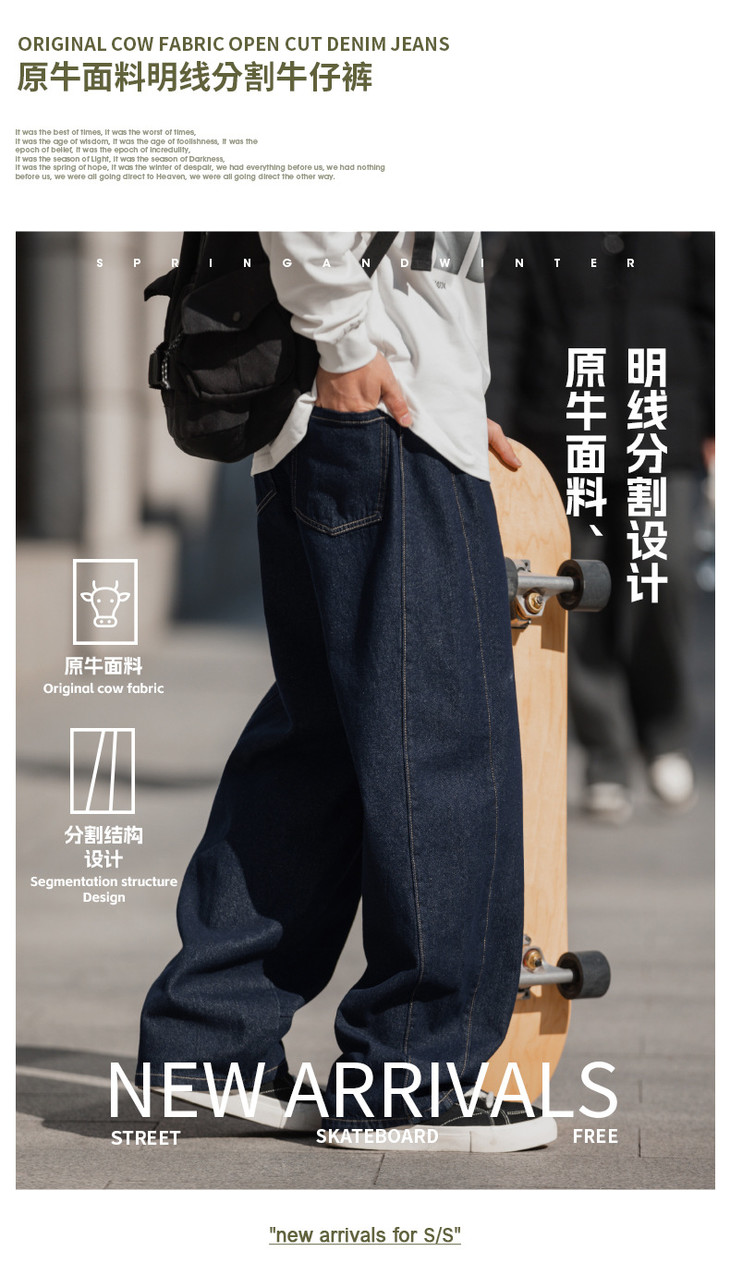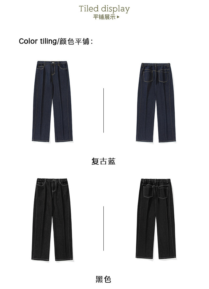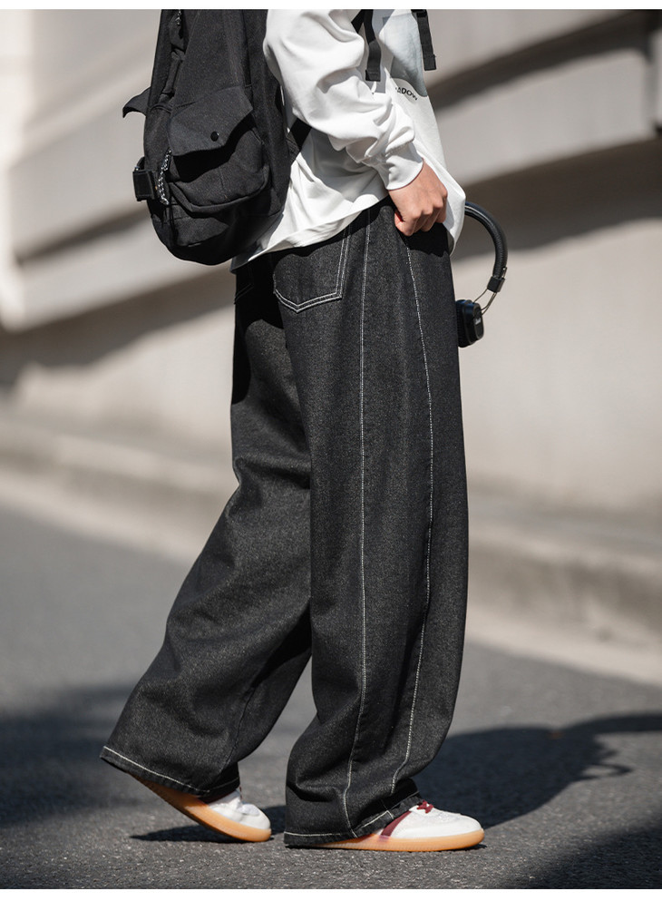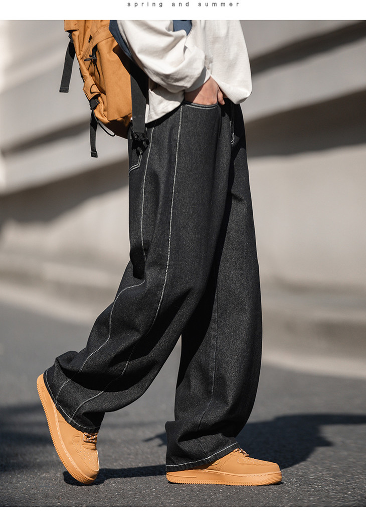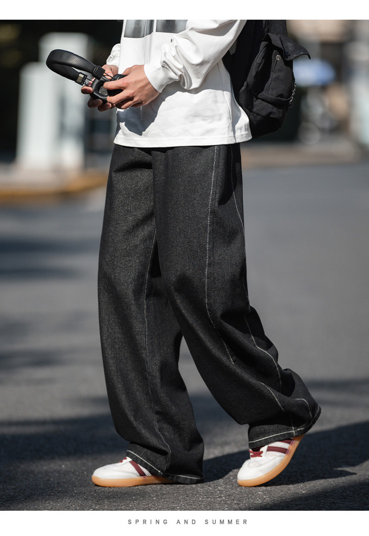 【复古原牛明线设计牛仔裤】男2025新款美式休闲长裤分割廓形裤子