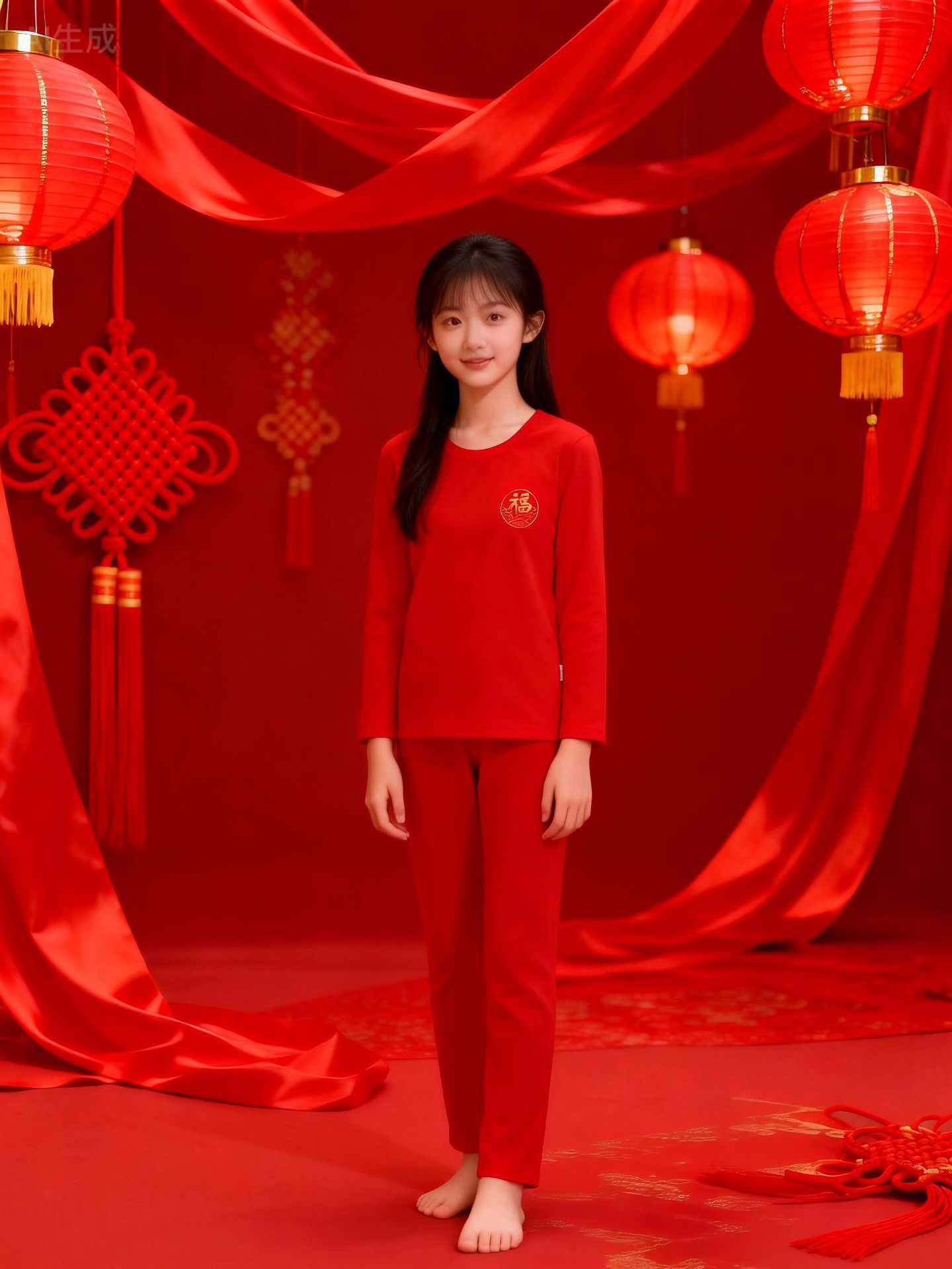 【YW】无忧购【鸿运当‘红’】儿童内衣套装本命年大红色新年男女中大童秋衣秋裤家居服睡衣(截单后3-5天发货)