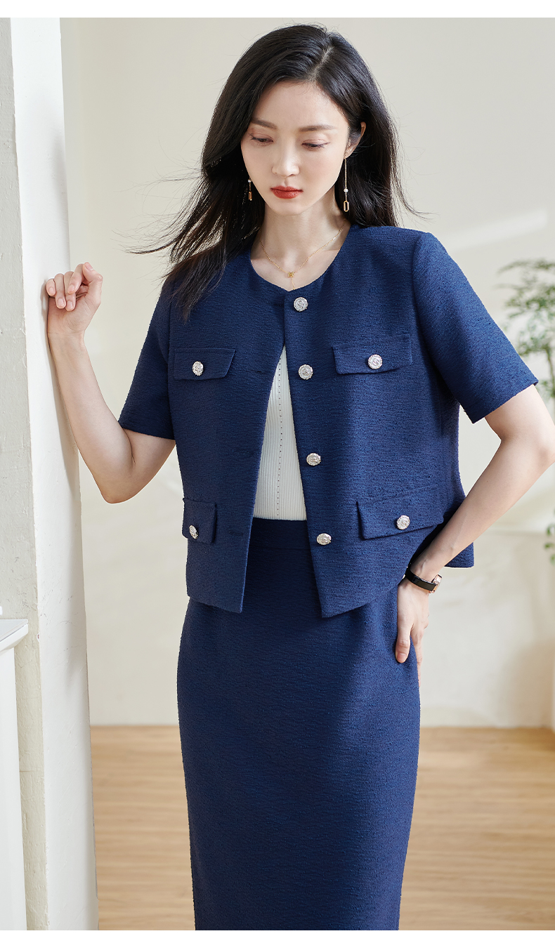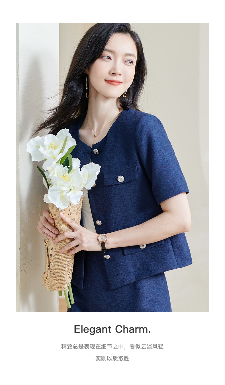 米思阳2025夏季新款小香风通勤气质短外套肌理花纱白纽扣上衣0602