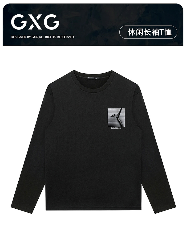 GXG男装【100%棉】25秋季时尚创意简约百搭圆领舒适男式长袖T恤K&C