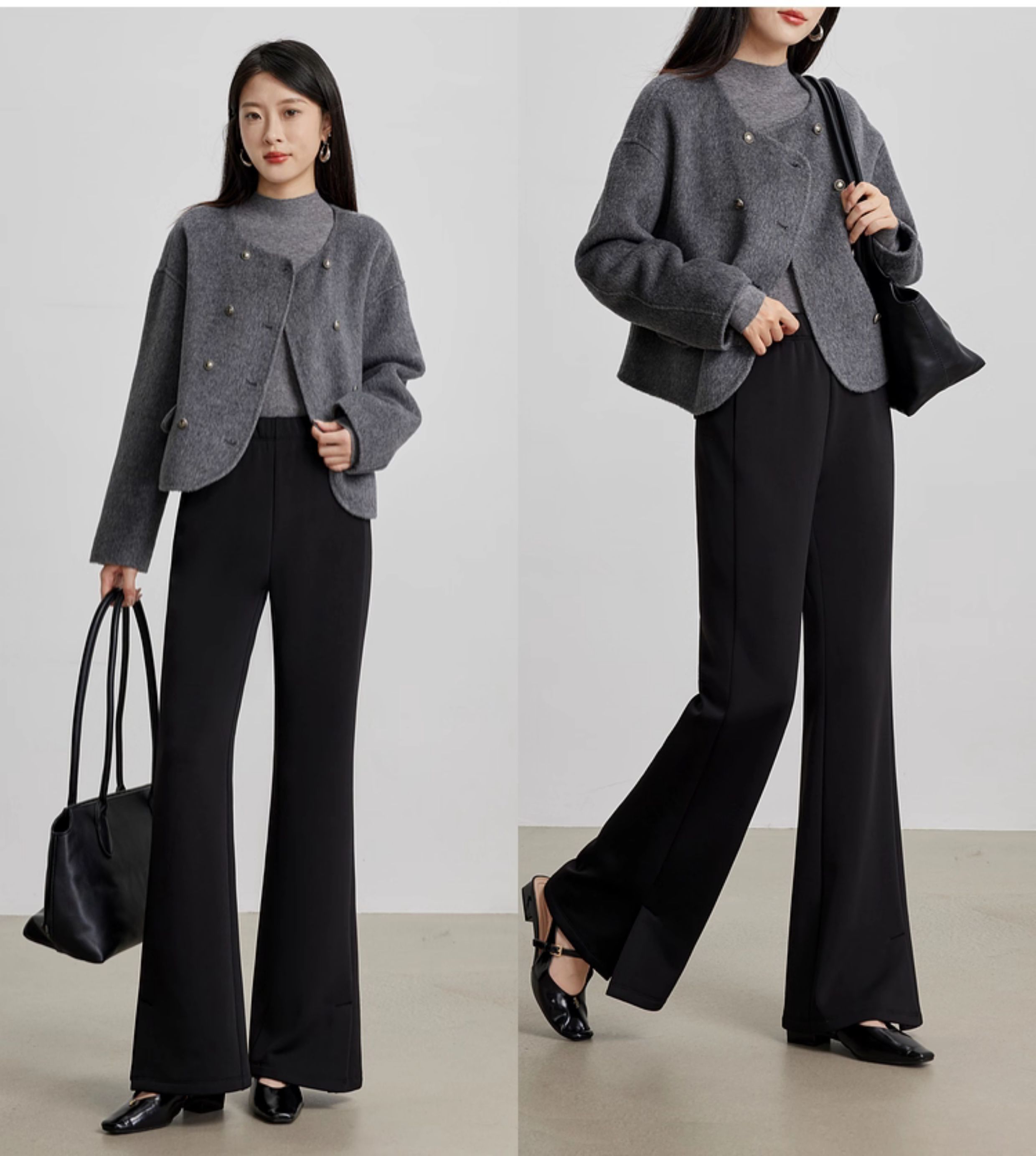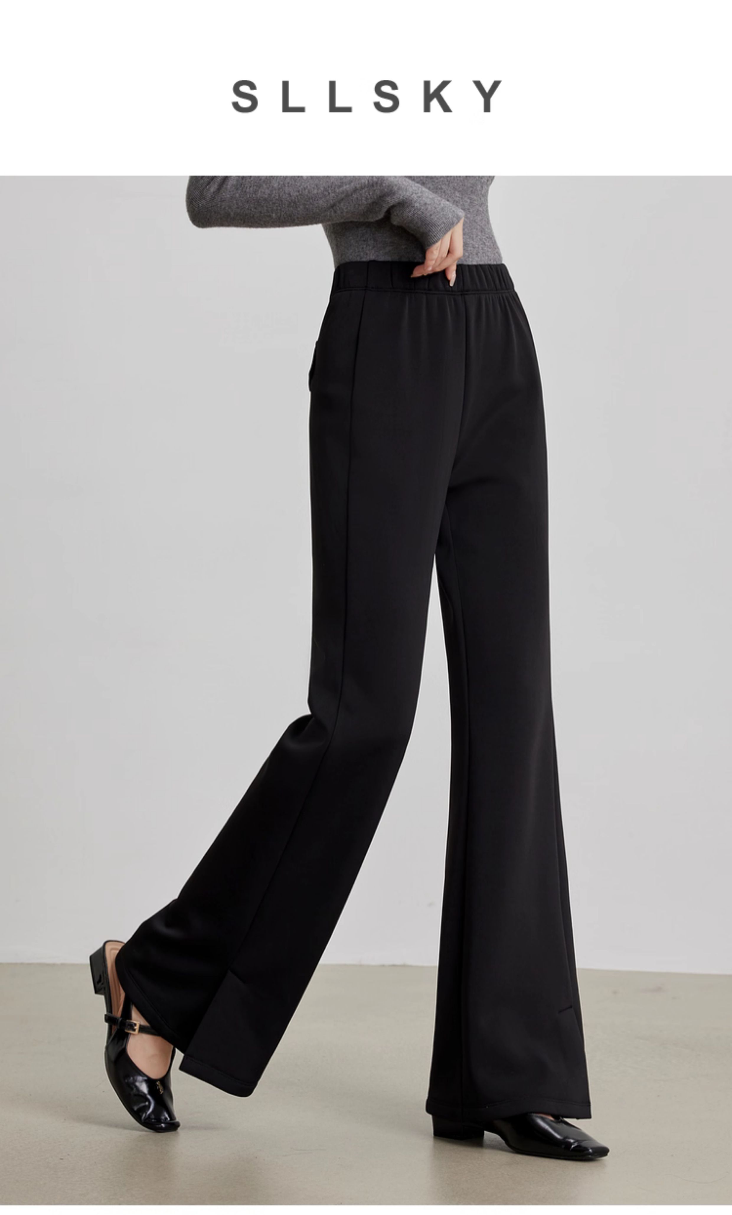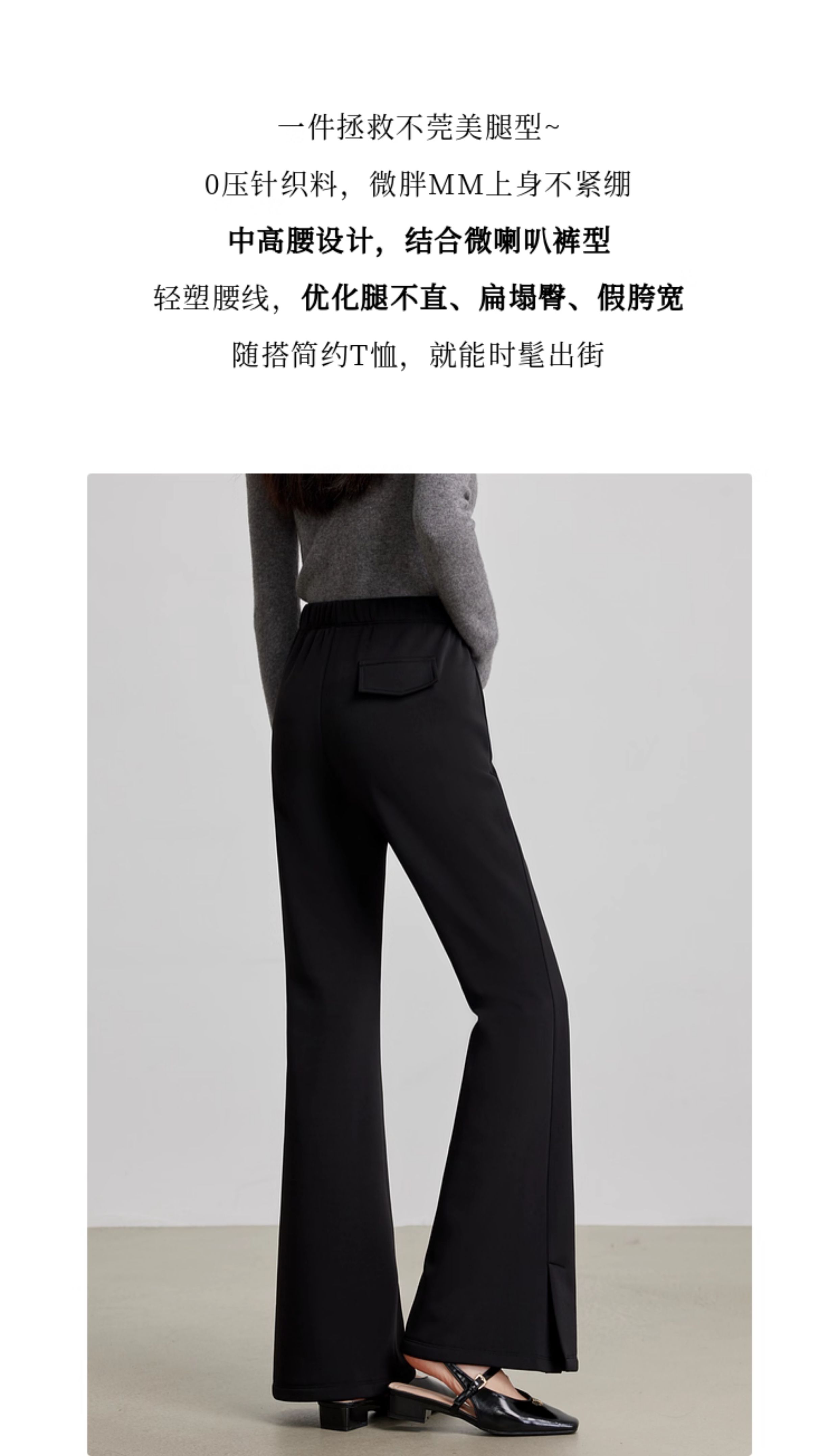 【10/23新品】熙世界通勤职场黑色喇叭裤女2025秋季新款高腰休闲西装裤微喇裤子