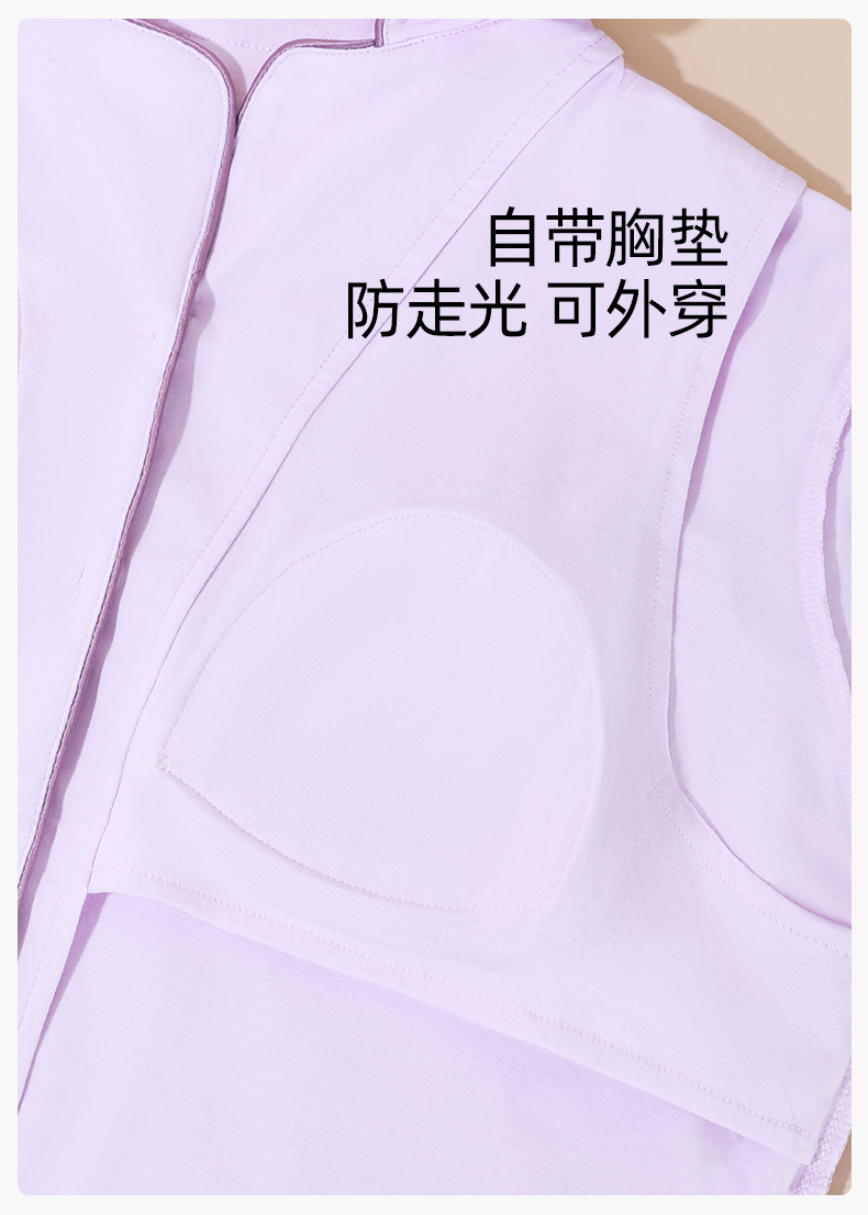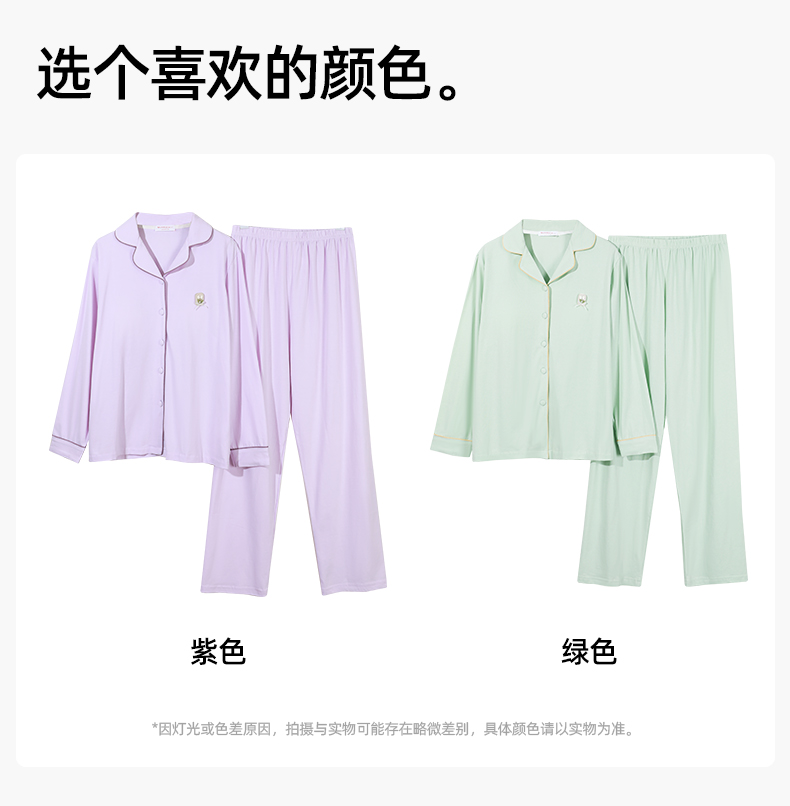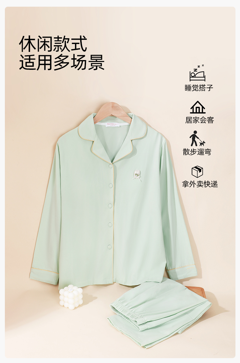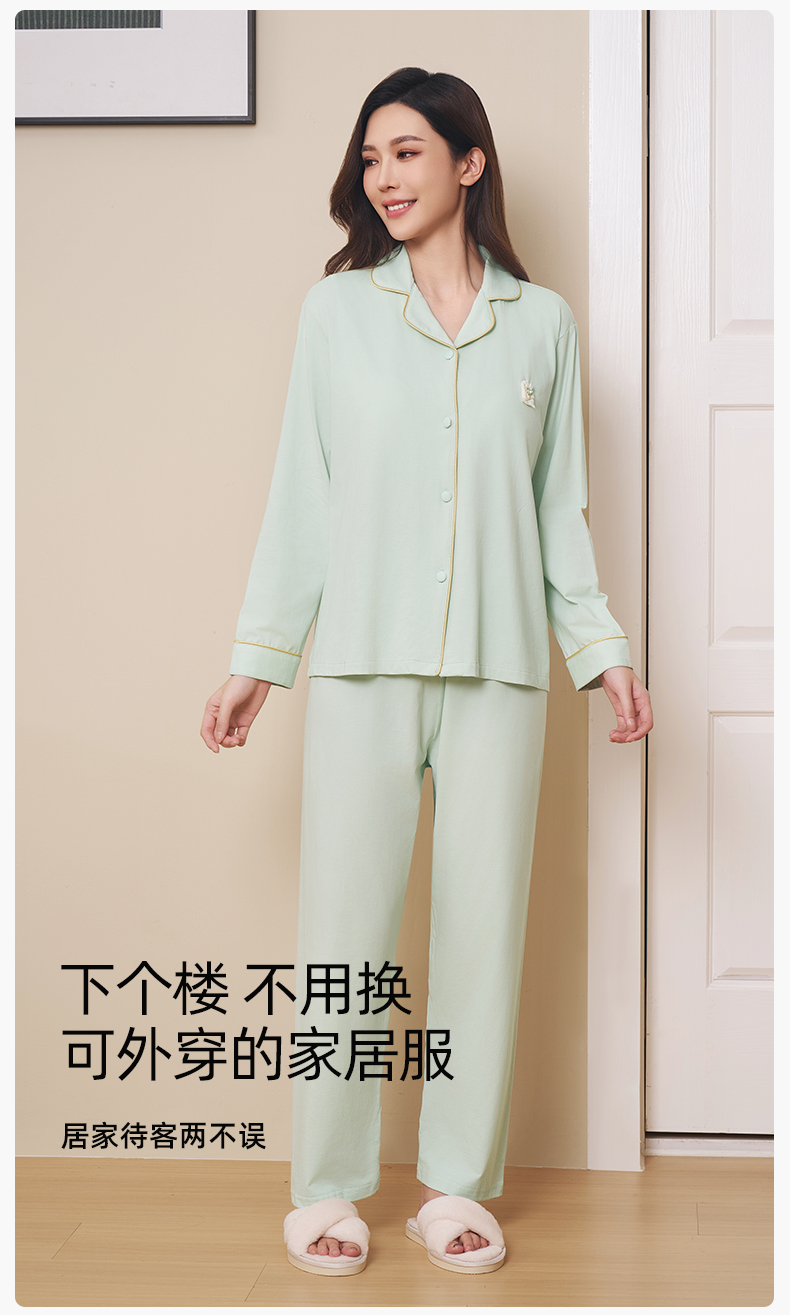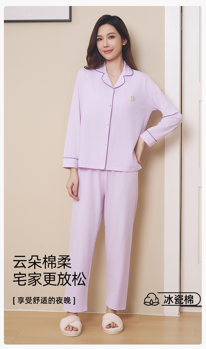 【带胸垫】熳洁儿 冰瓷棉女士家居服开衫长袖长裤套装免穿文胸商场同款24703207
