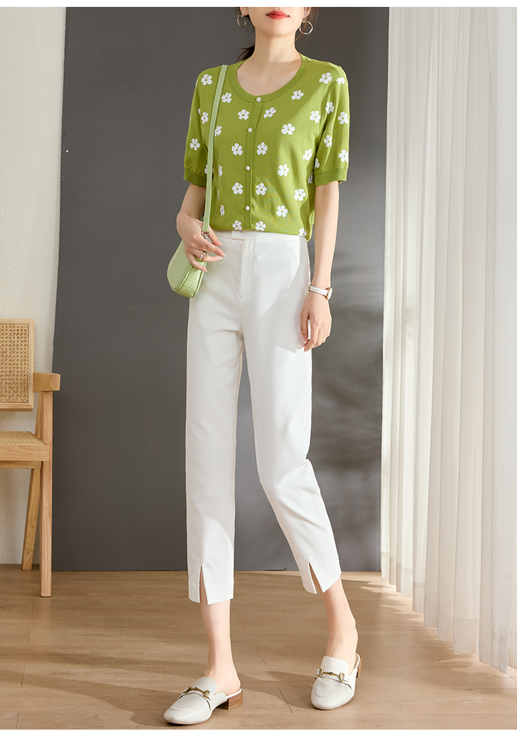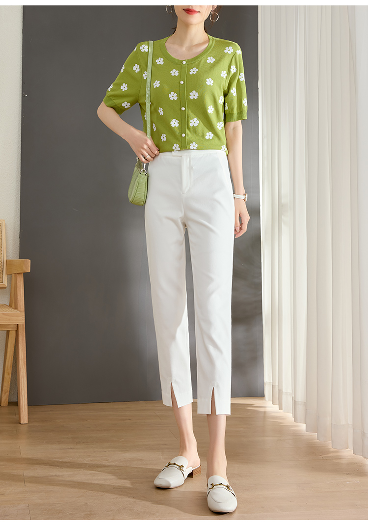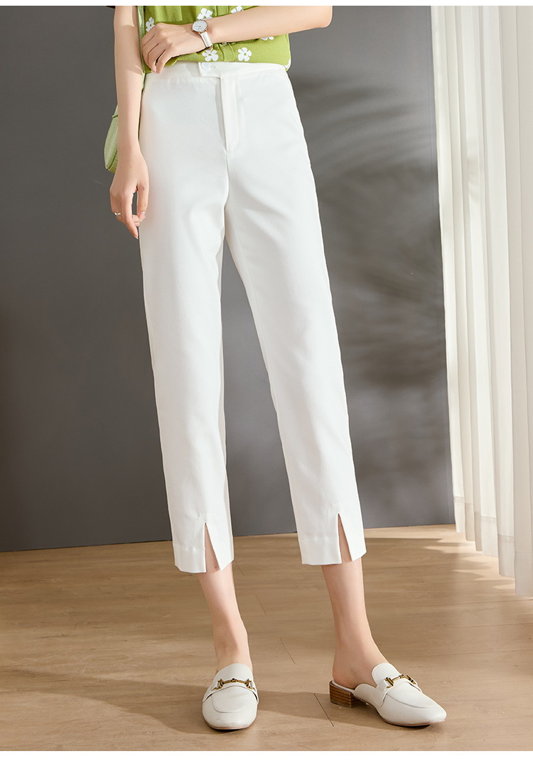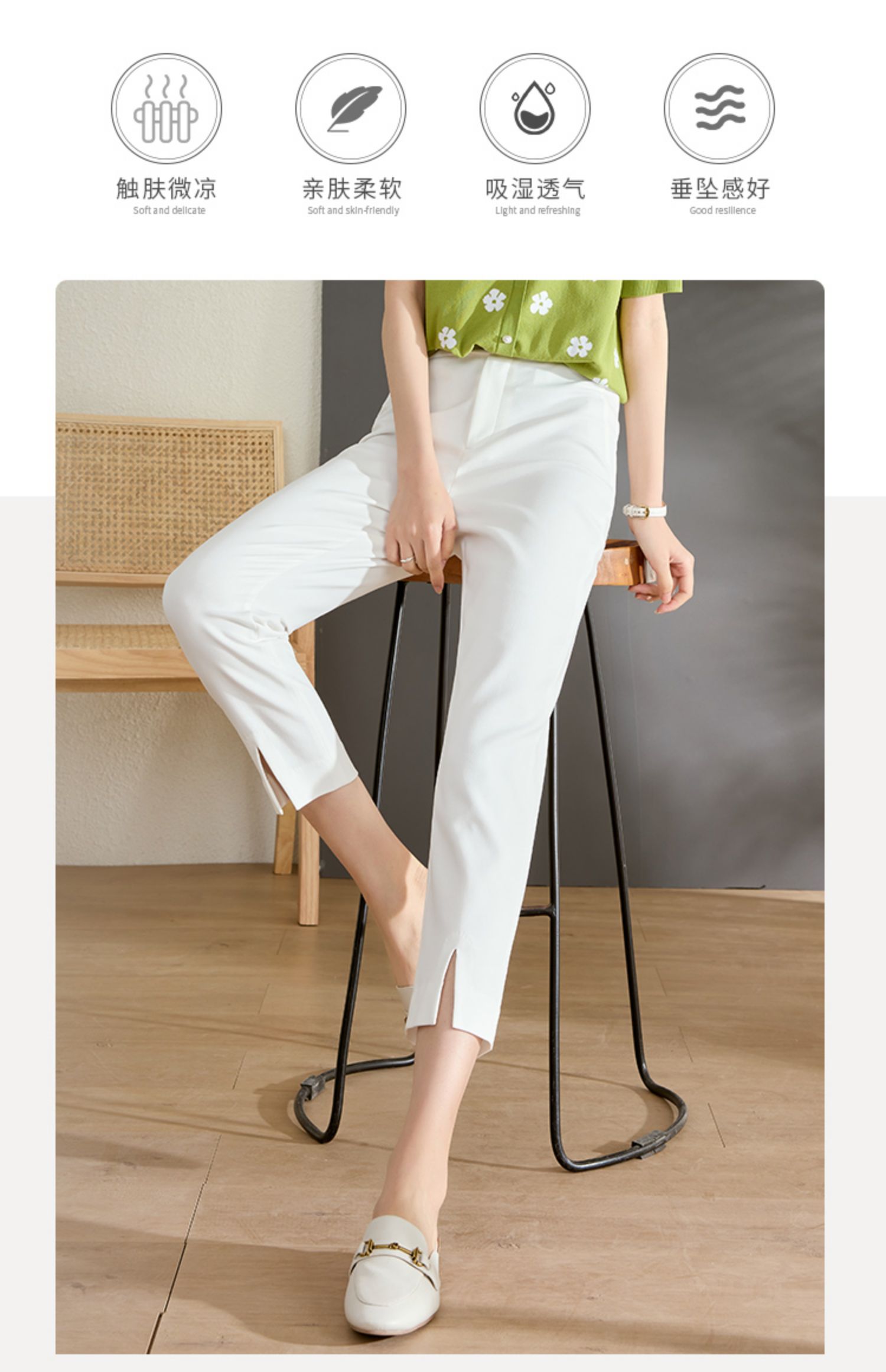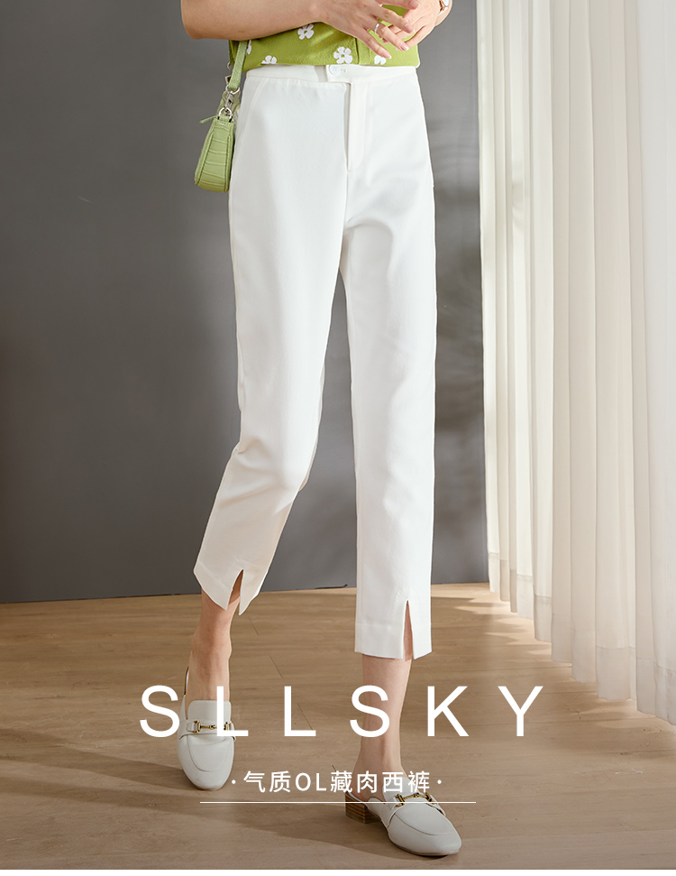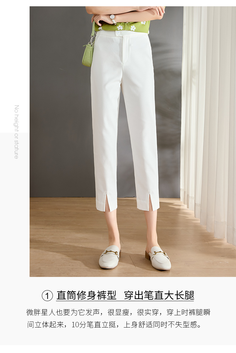 【69元福袋,不支持退换】熙世界气质白色休闲裤女八分小个子夏薄款时尚开叉OL风直筒西裤