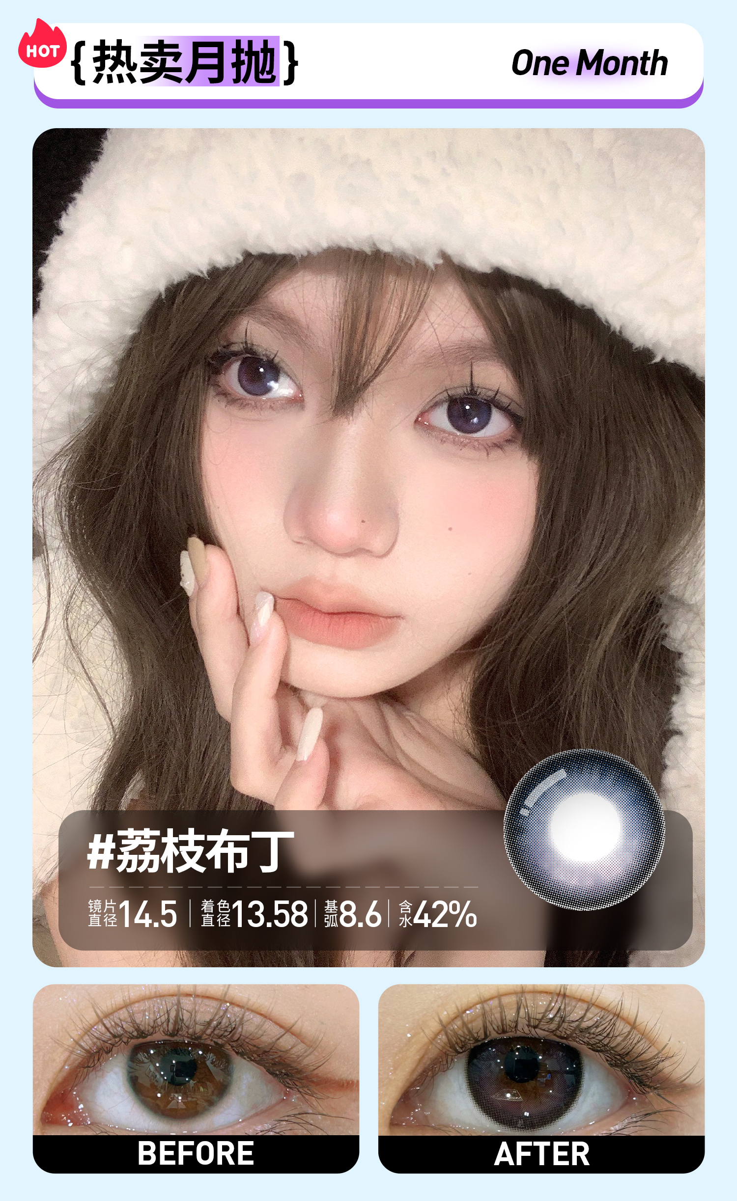 荔枝布丁14.5【绝版花色】欧巴兰月抛美瞳2片装(售罄不补货) 商品图0