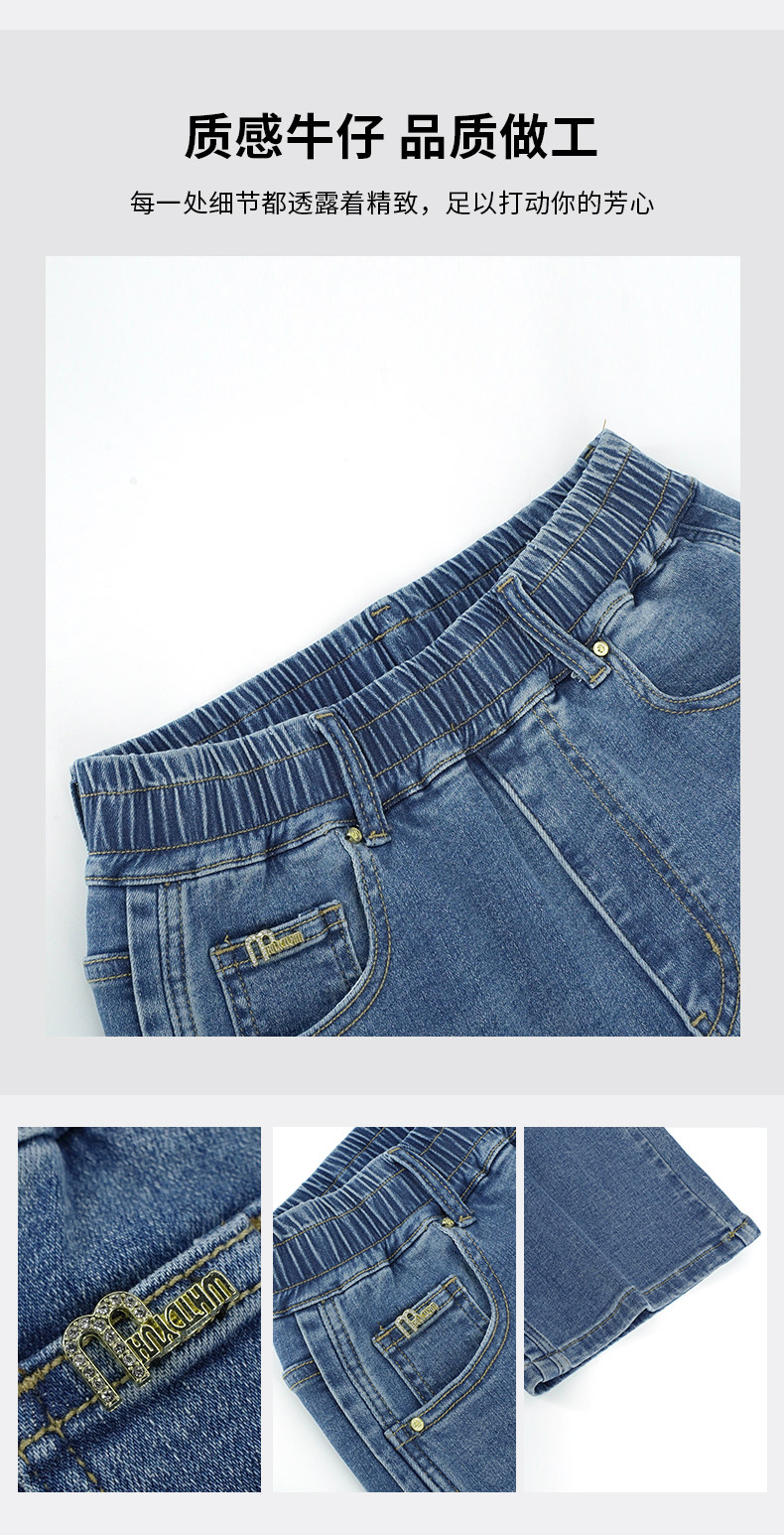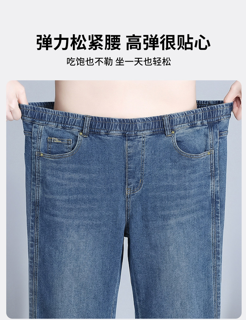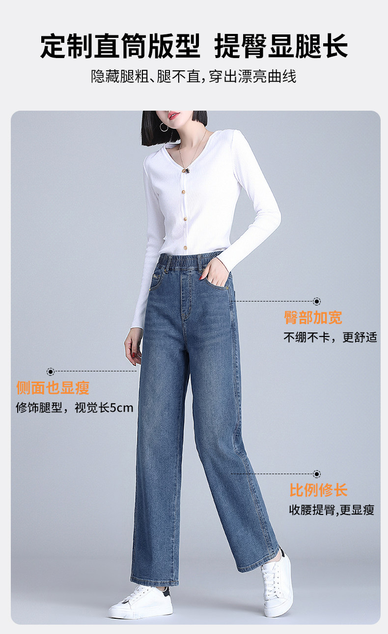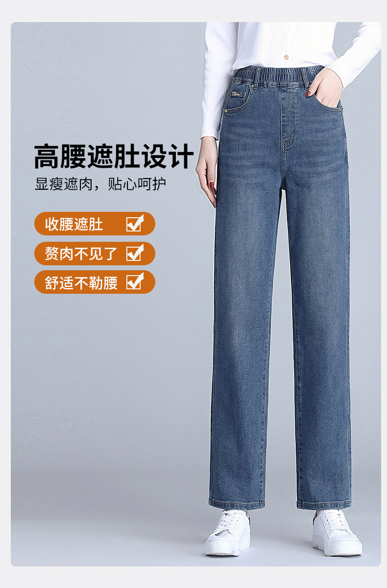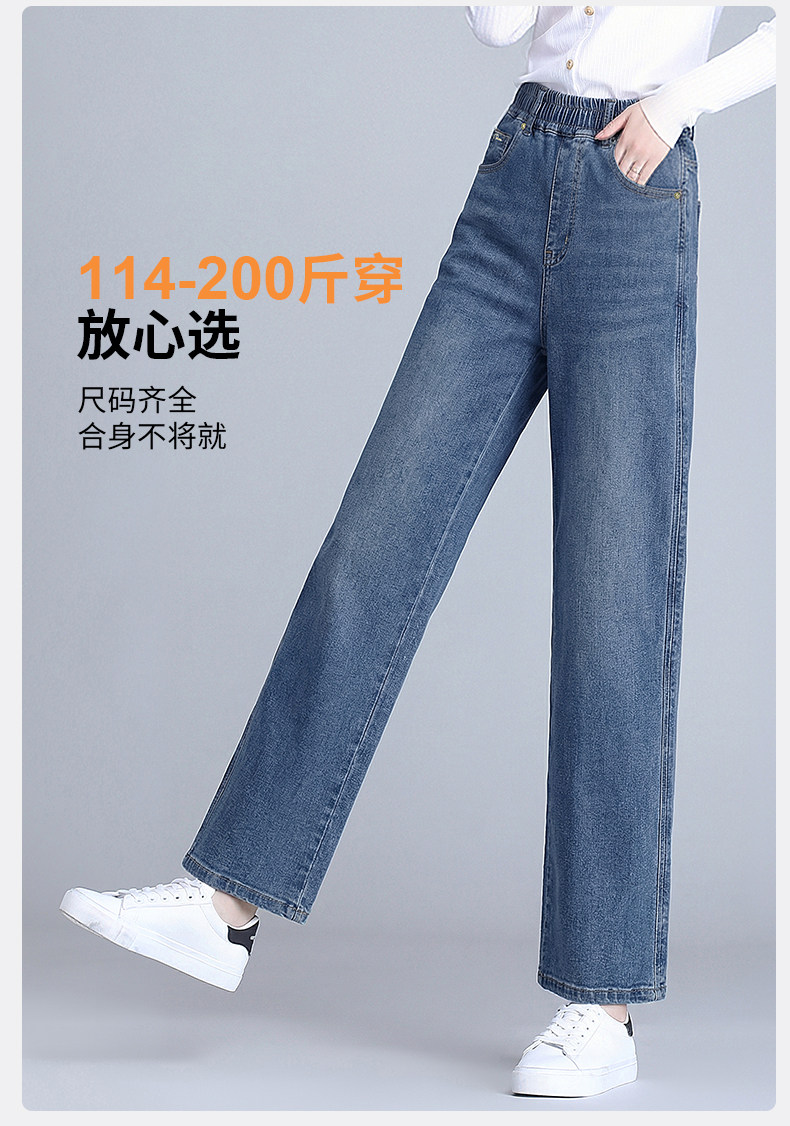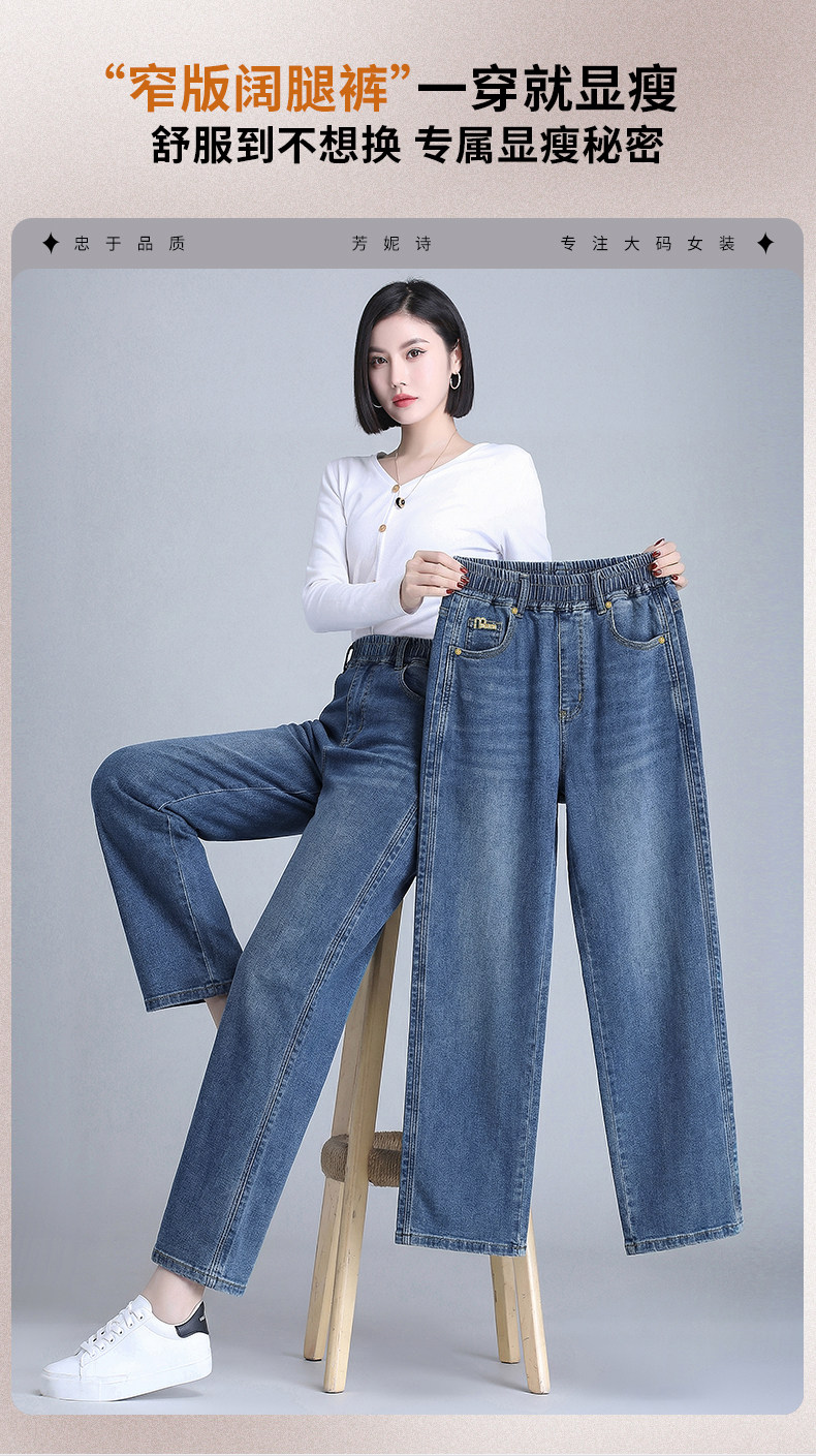 2026新款春季窄版阔腿牛仔裤女士大码胖mm弹力松紧腰宽松直筒裤子