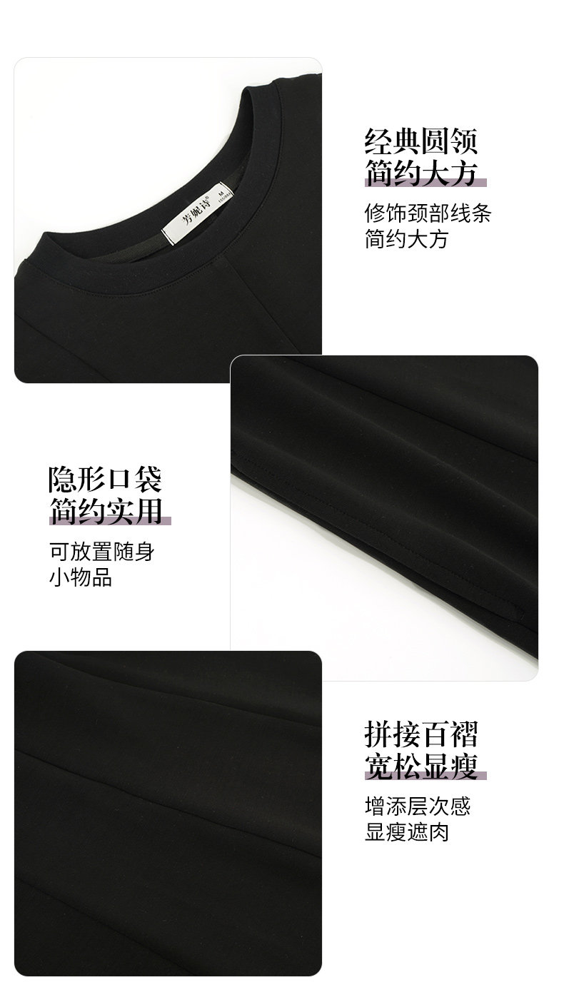 2026新款春装黑色长袖t恤女大码中长款打底衫宽松显瘦遮屁股上衣