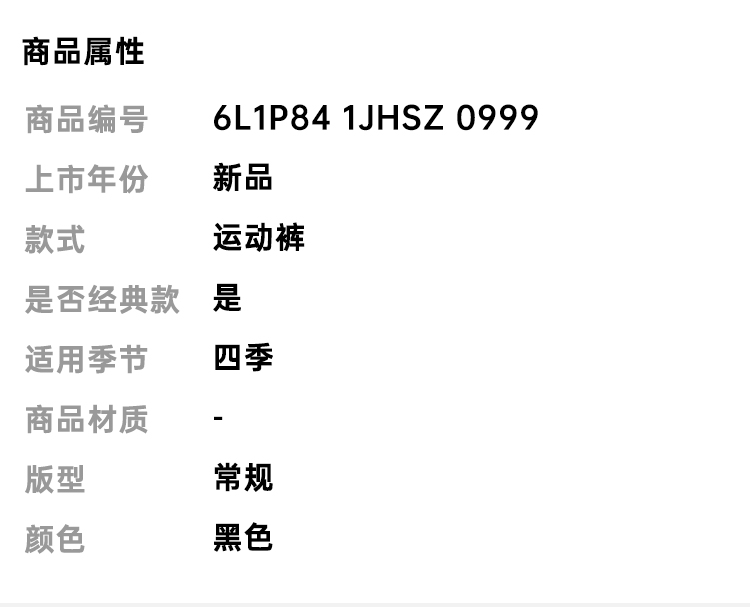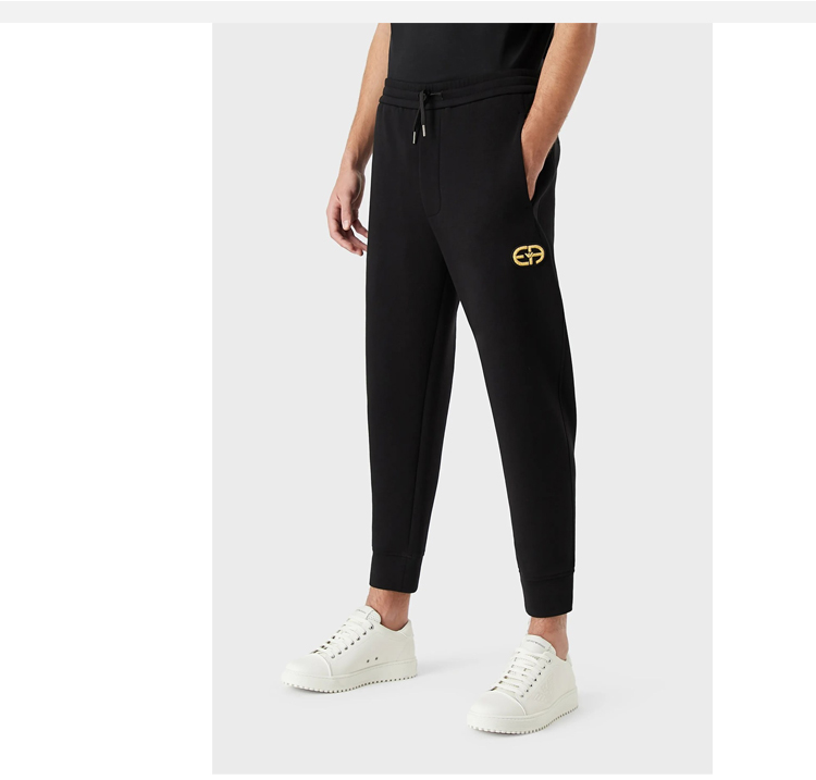 EMPORIO ARMANI 阿玛尼 男士棉质刺绣徽标抽绳休闲运动裤 黑色 6L1P84 1JHSZ 0999