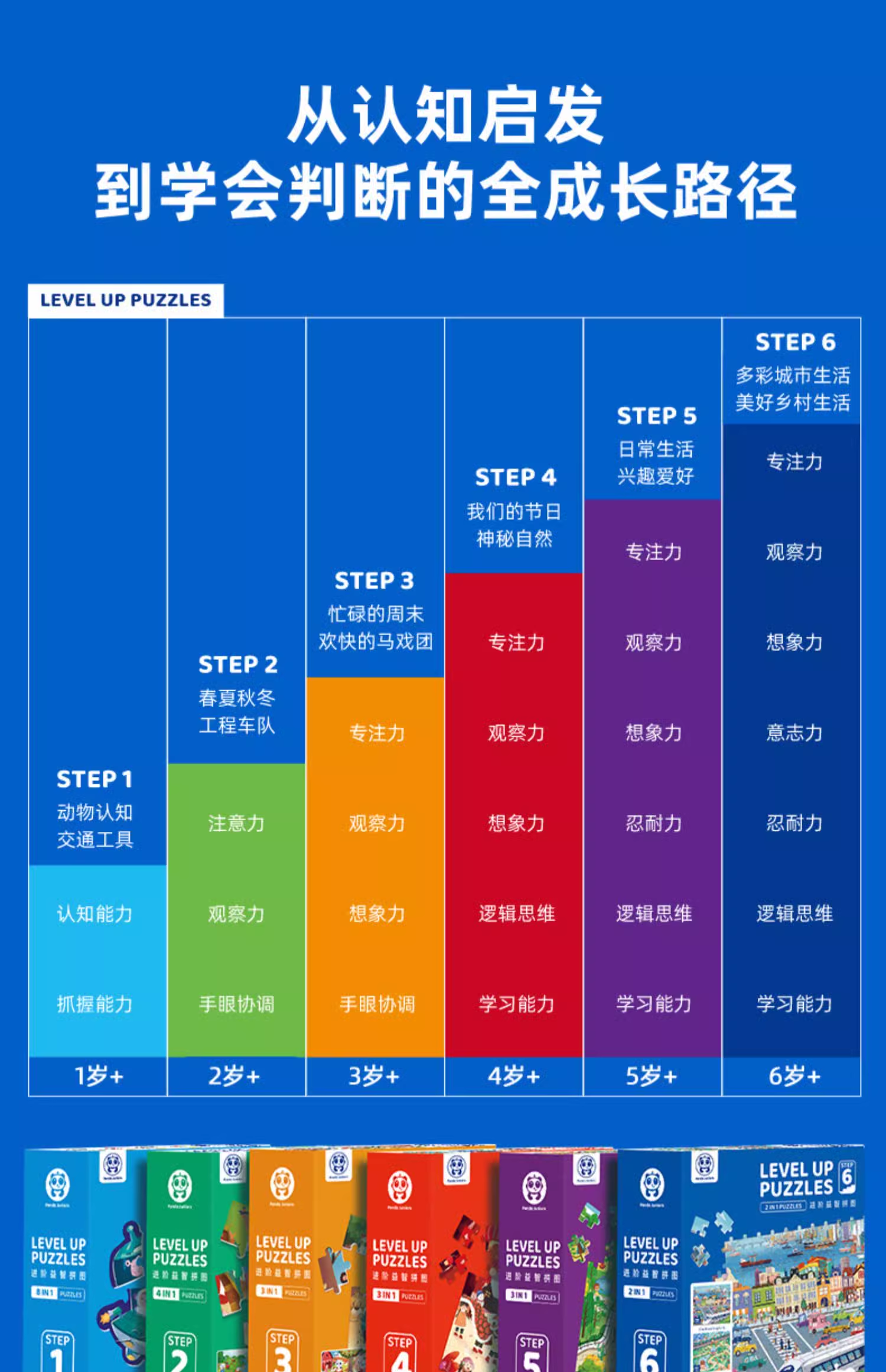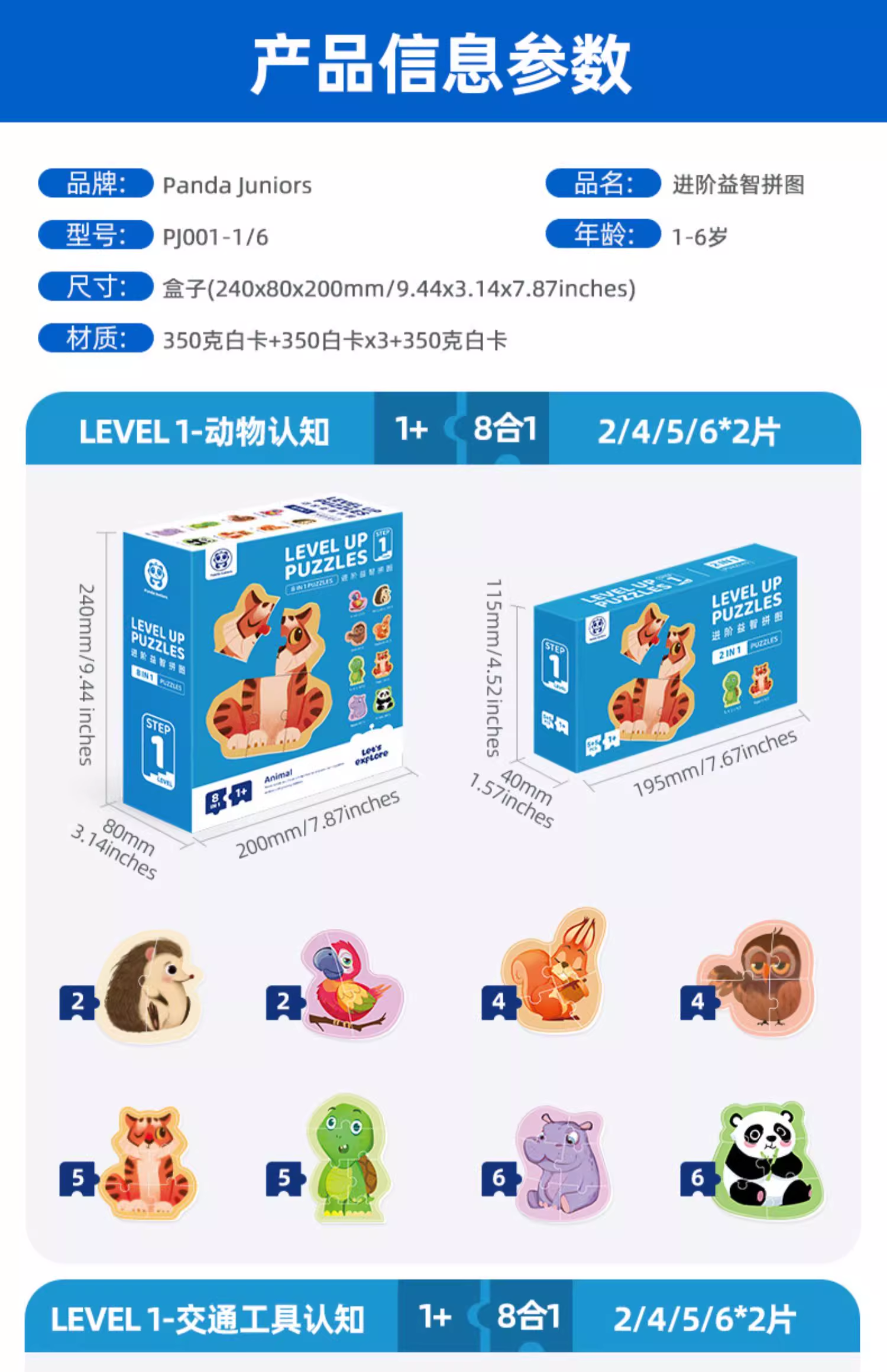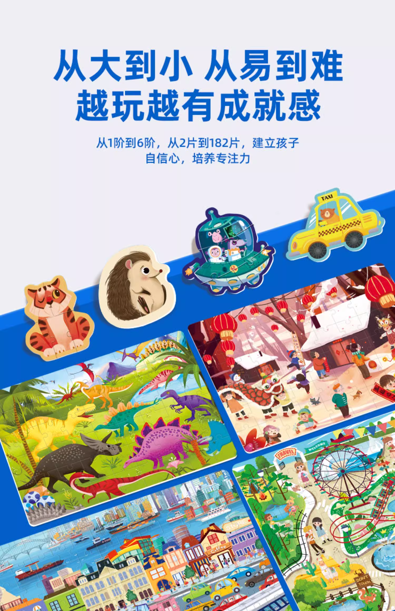 【未光拾色】 儿童益智大块进阶拼图益智拼图1-6阶幼儿玩具 1岁到8岁
