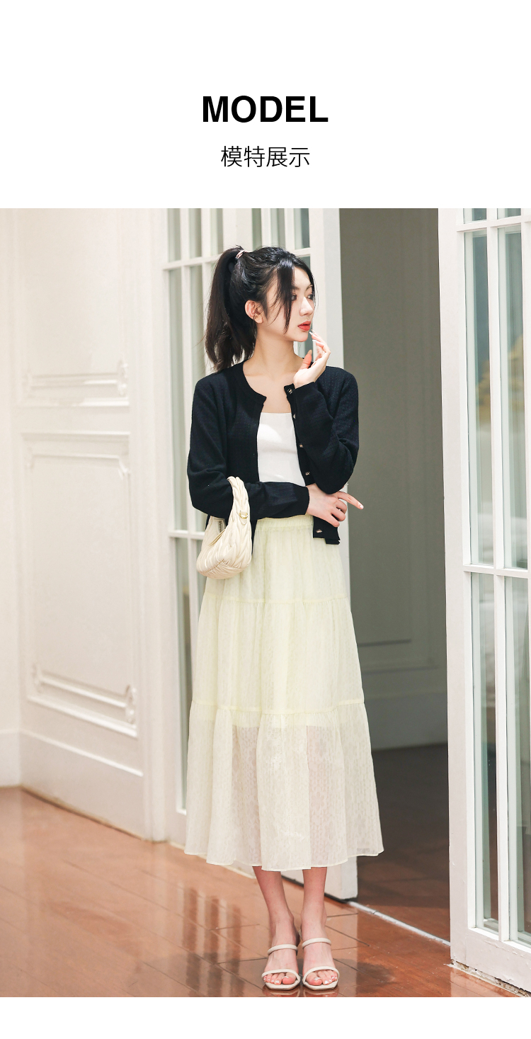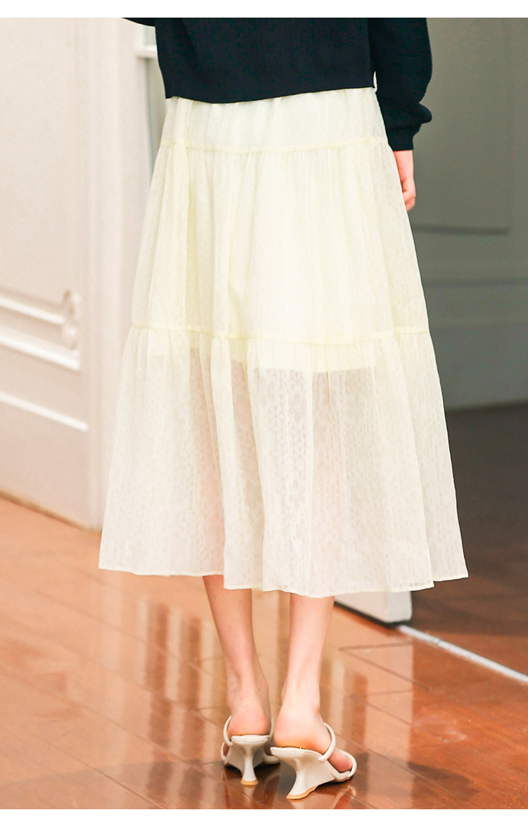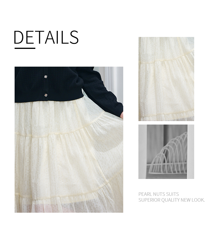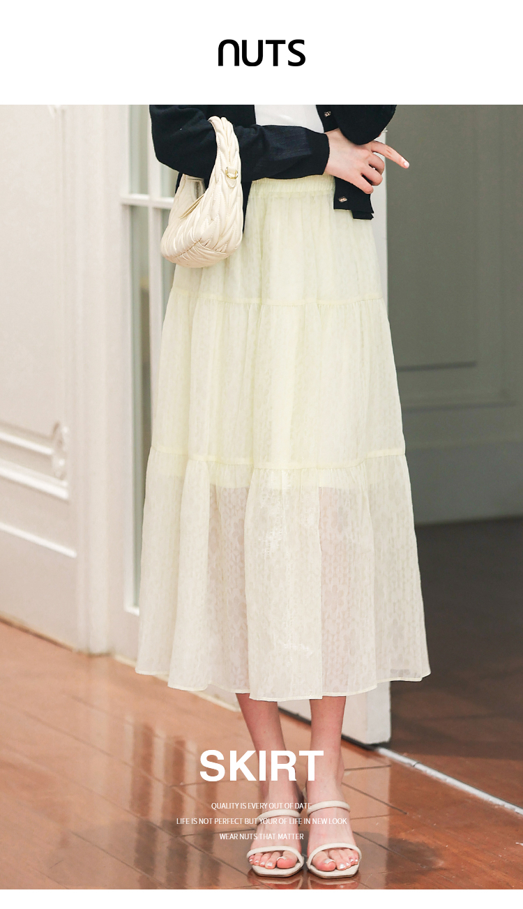 NUTS春秋季新款高腰网纱半身裙女中长款A字裙子4310605A1