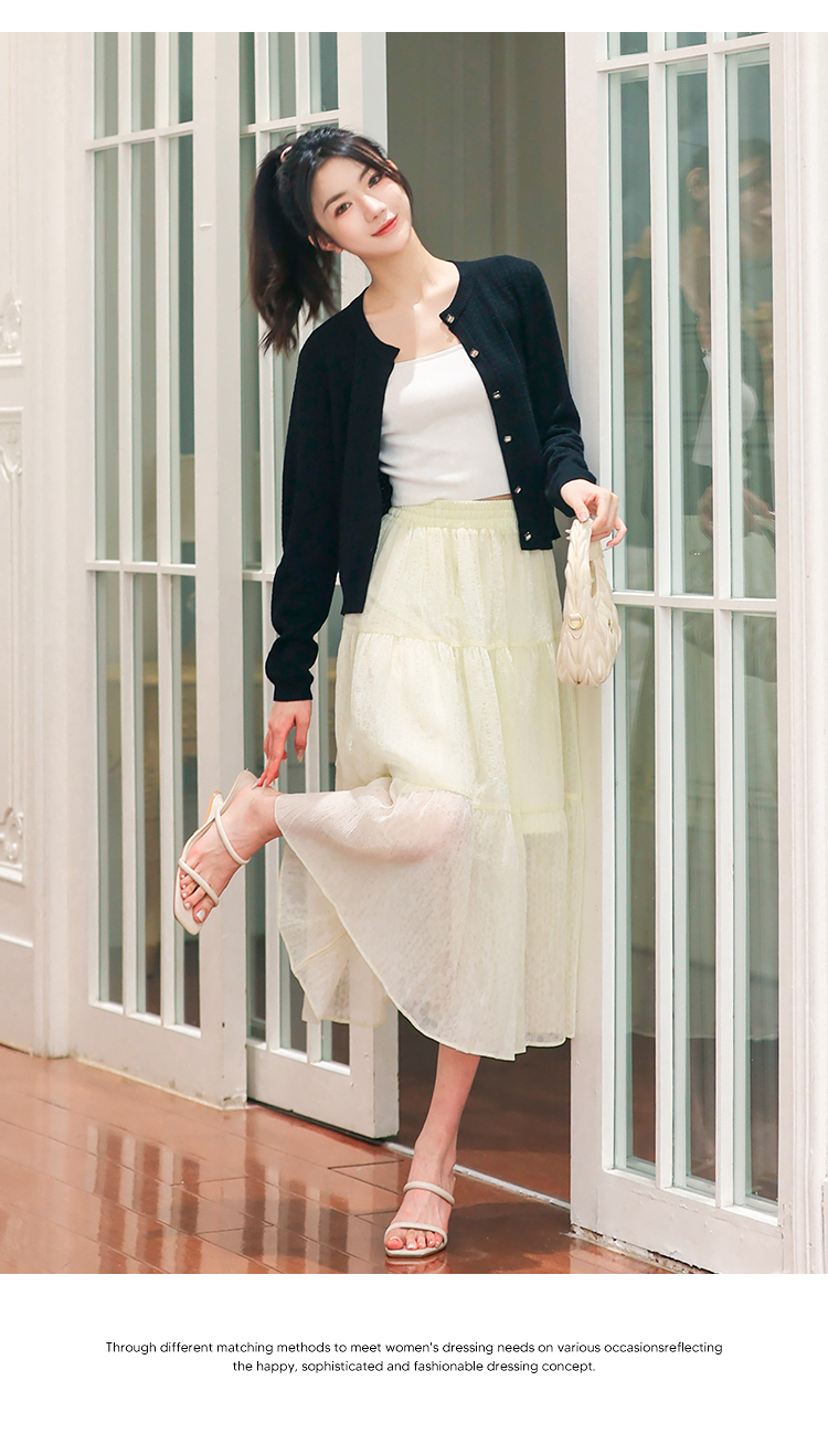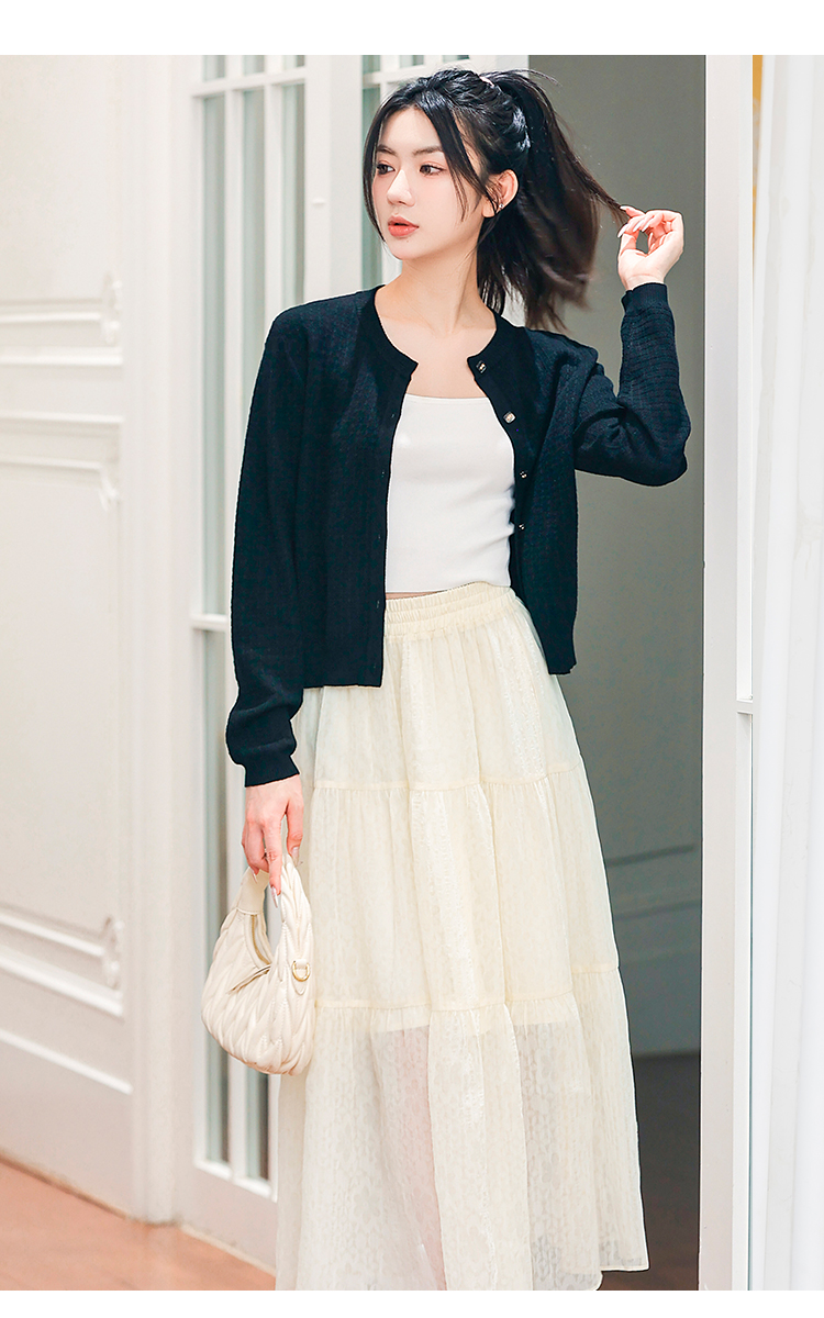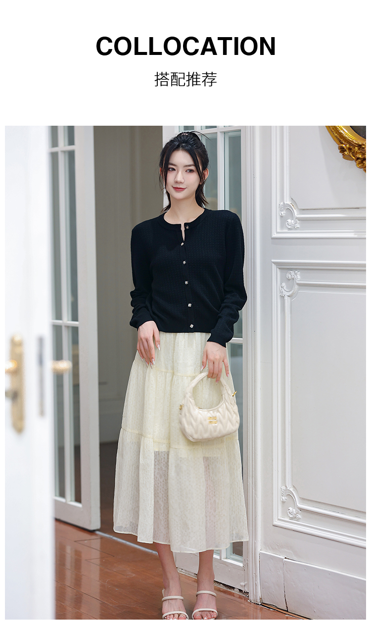 NUTS春秋季新款高腰网纱半身裙女中长款A字裙子4310605A1