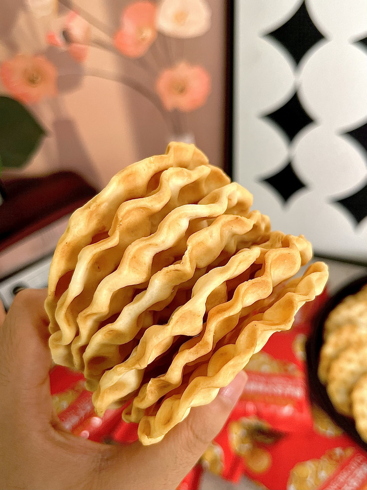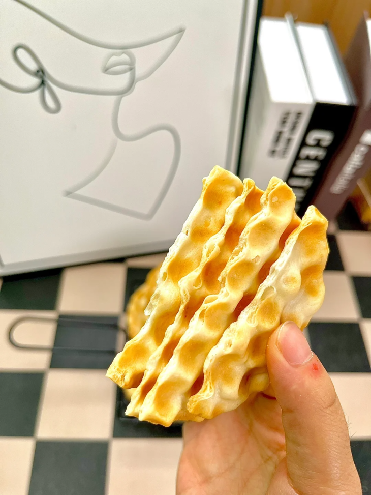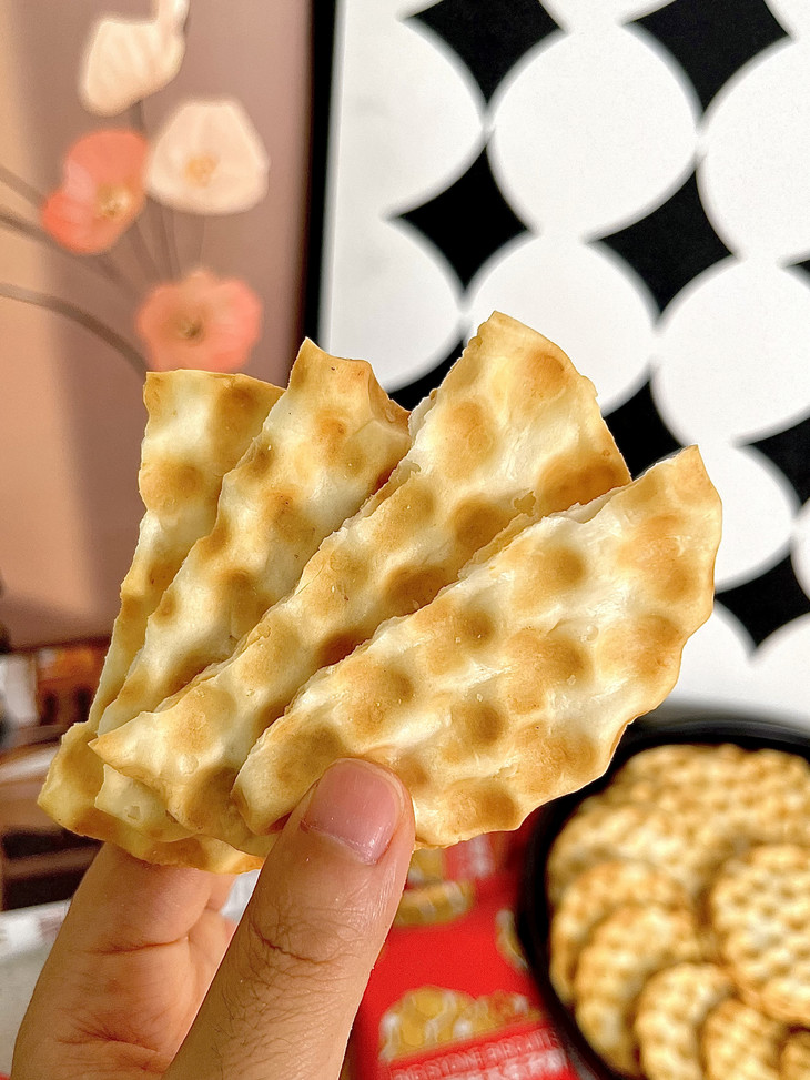 饼胚上坑坑洼洼的形状正是石头的痕迹, 表面坑坑洼洼,凹凸不平,质地酥脆 表面色泽洁白中杂以金黄,外地朋友觉得很稀奇,本地民众见惯不怪,那就是吃了一辈子的“石子饼”么。
