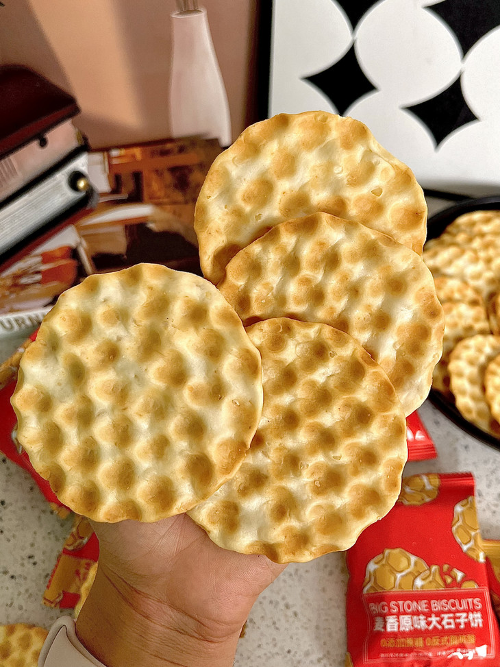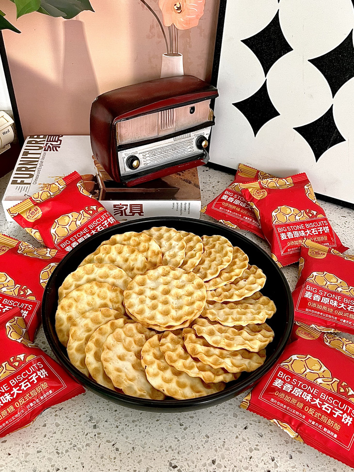 给大家介绍下石子饼的制作工艺: “石子饼”是陕西关中地区一种别具风味的食品。 因为制作时是把饼胚放在烧热了的石子上面烙制的,故而得名。 石子饼制作过程: 面粉加入适量清水,加入精盐、食用碱、菜油、蛋液、黄油,乳粉等,饧面发酵之后,反复揉匀揉透,摘成小剂,用擀面杖擀成约铜钱厚的圆形薄饼坯。炉内燃火,铁鏊子置其上,在鏊子里均匀地铺上鹅卵石子,待石头烧热后,取出一部分,将饼坯摊放在石子上后,再把取出的部分石子盖在上面,上焙下烙,数分钟至饼色金黄即熟。 从制作方法上看,“石子饼”具有明显的古代石烹遗风,《古史考》云:“神农叫时民食谷,释米加烧石上而食之”。亦即将石块烧热,谷物直接放在石上而制熟。这是巧妙利用了石块导热慢、散热也慢、且布热比较均匀的特点,从而达到控制火候的目的。 所以不管是家里大人小孩吃着健康,也不上火!