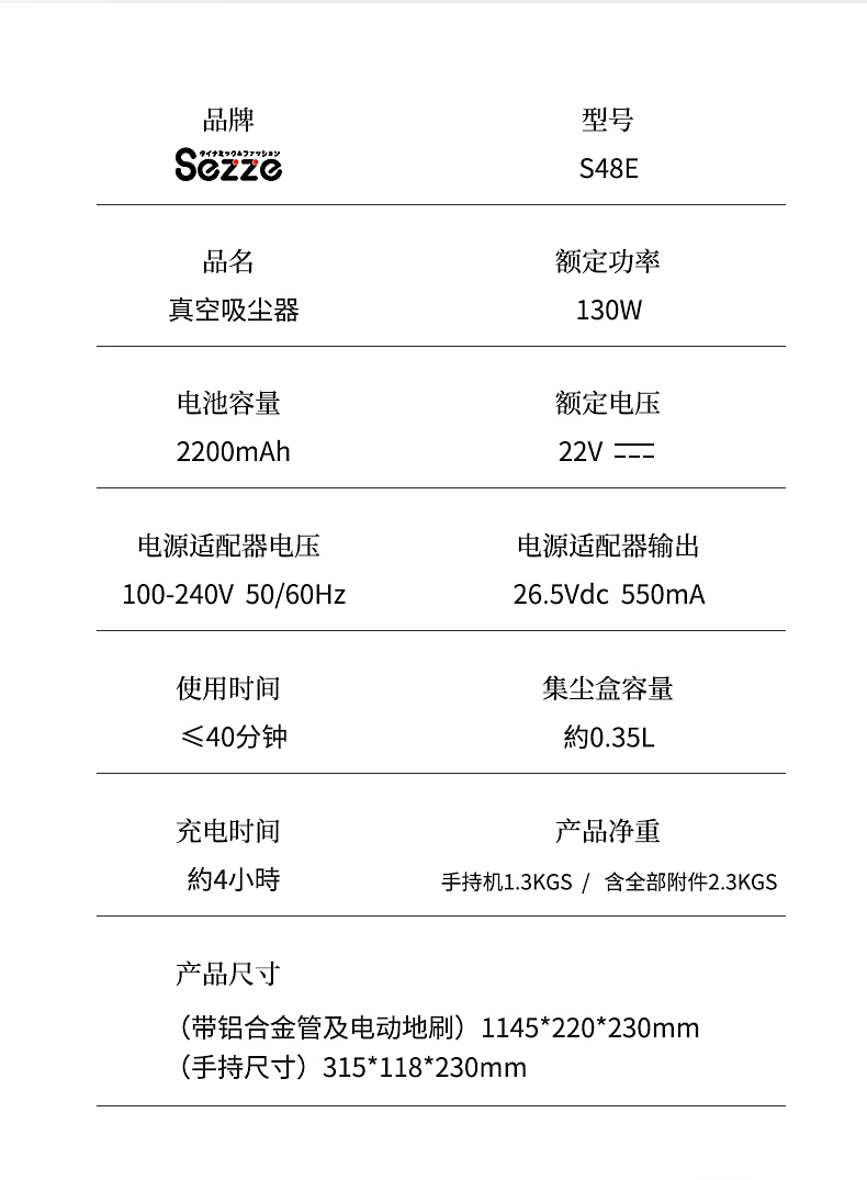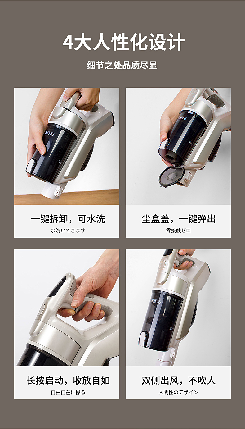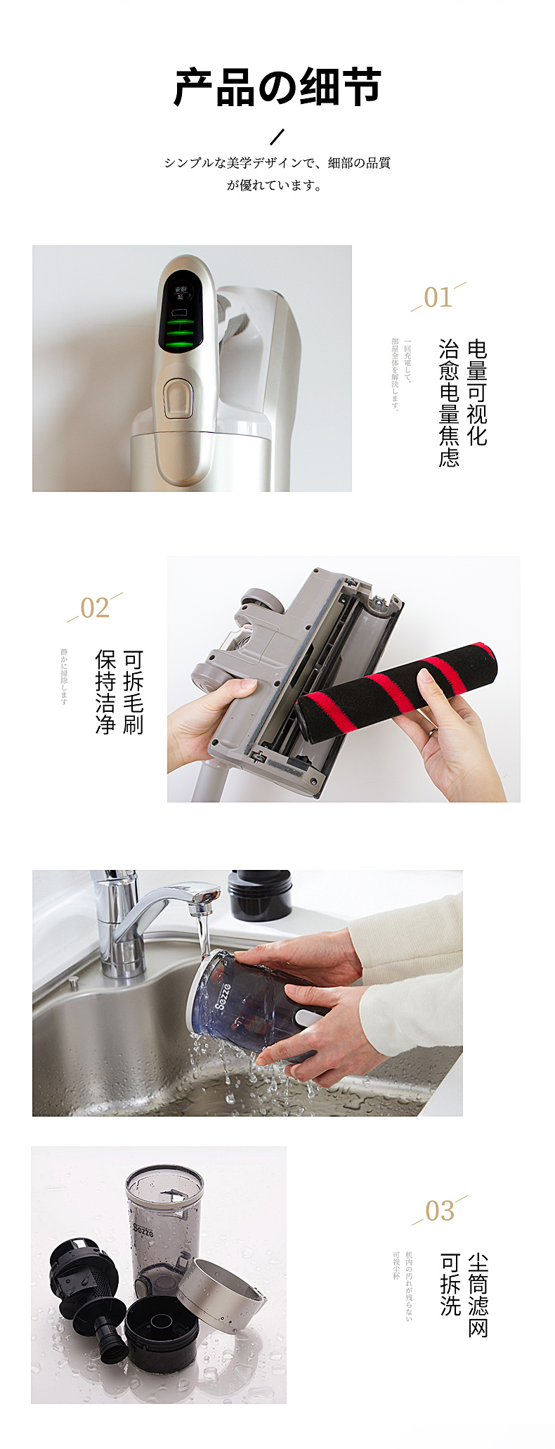 日本西哲无线吸尘器S48E大吸力家用小型手持式床上用除螨吸尘一机多用