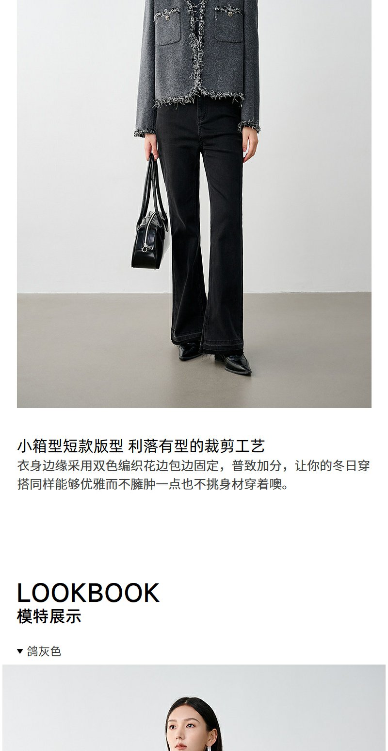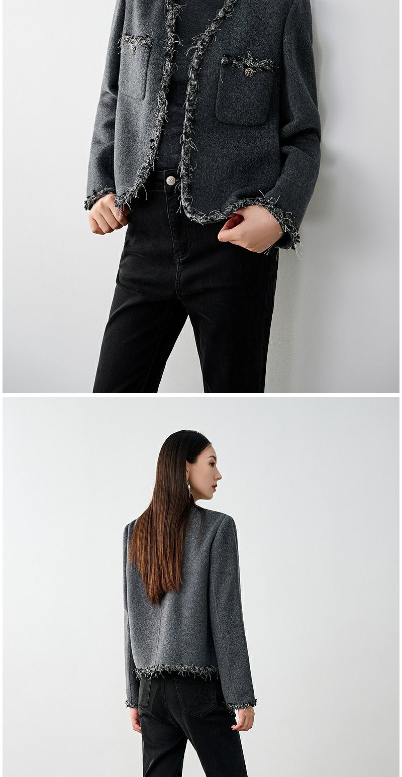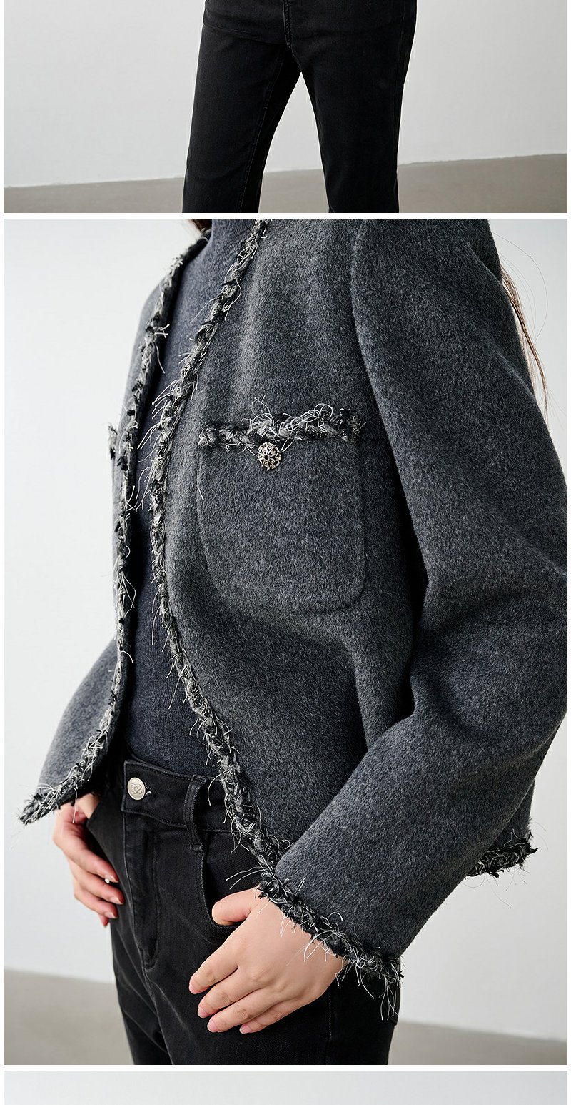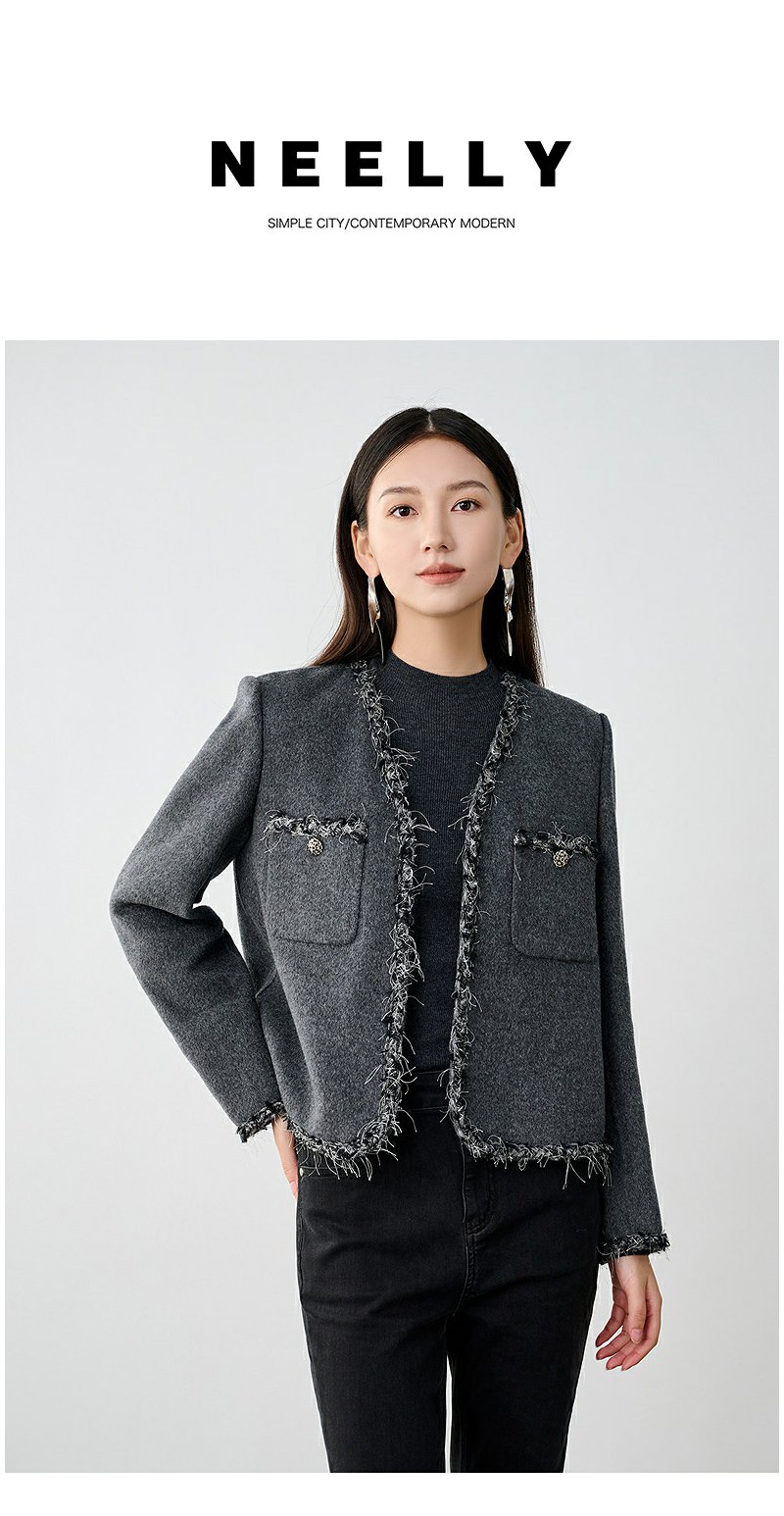 NEELLY纳俪商场同款冬新款小香风绵羊毛通勤短款灰色双面呢大衣女N24104N03307