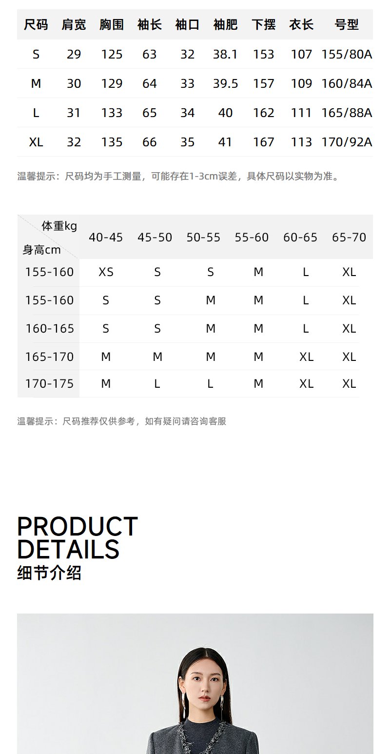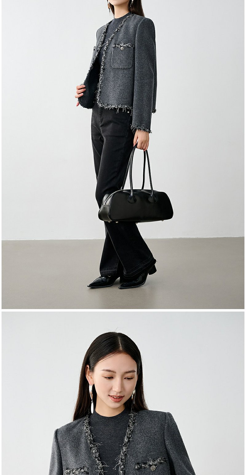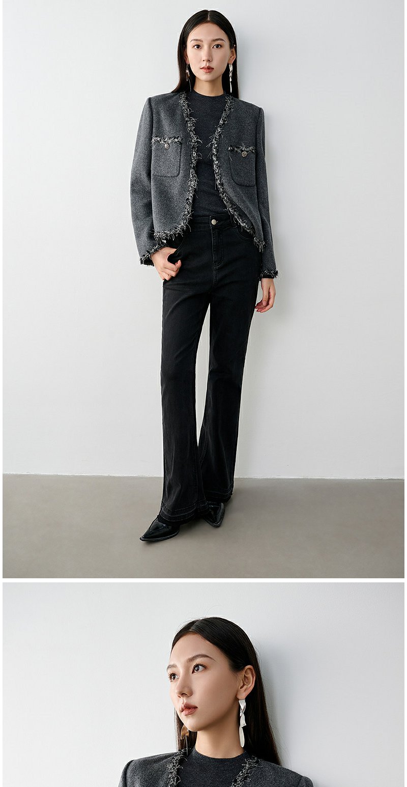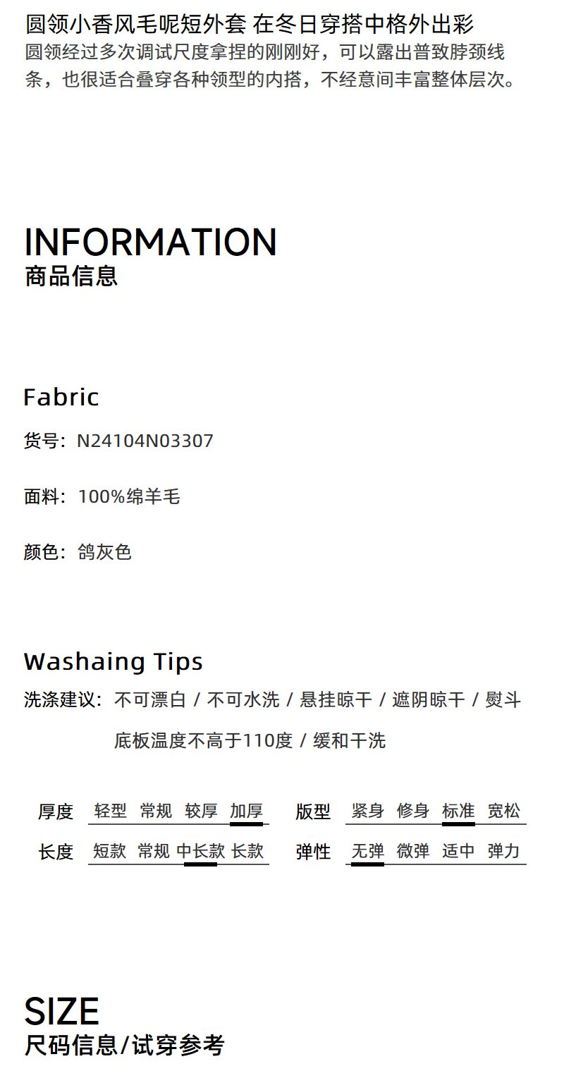 NEELLY纳俪商场同款冬新款小香风绵羊毛通勤短款灰色双面呢大衣女N24104N03307