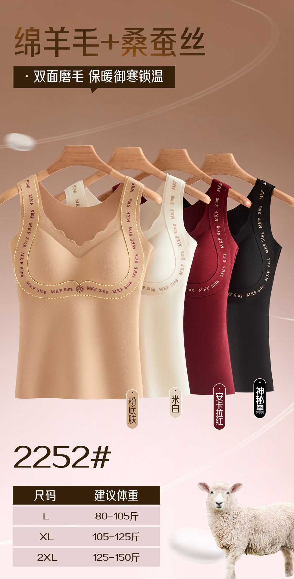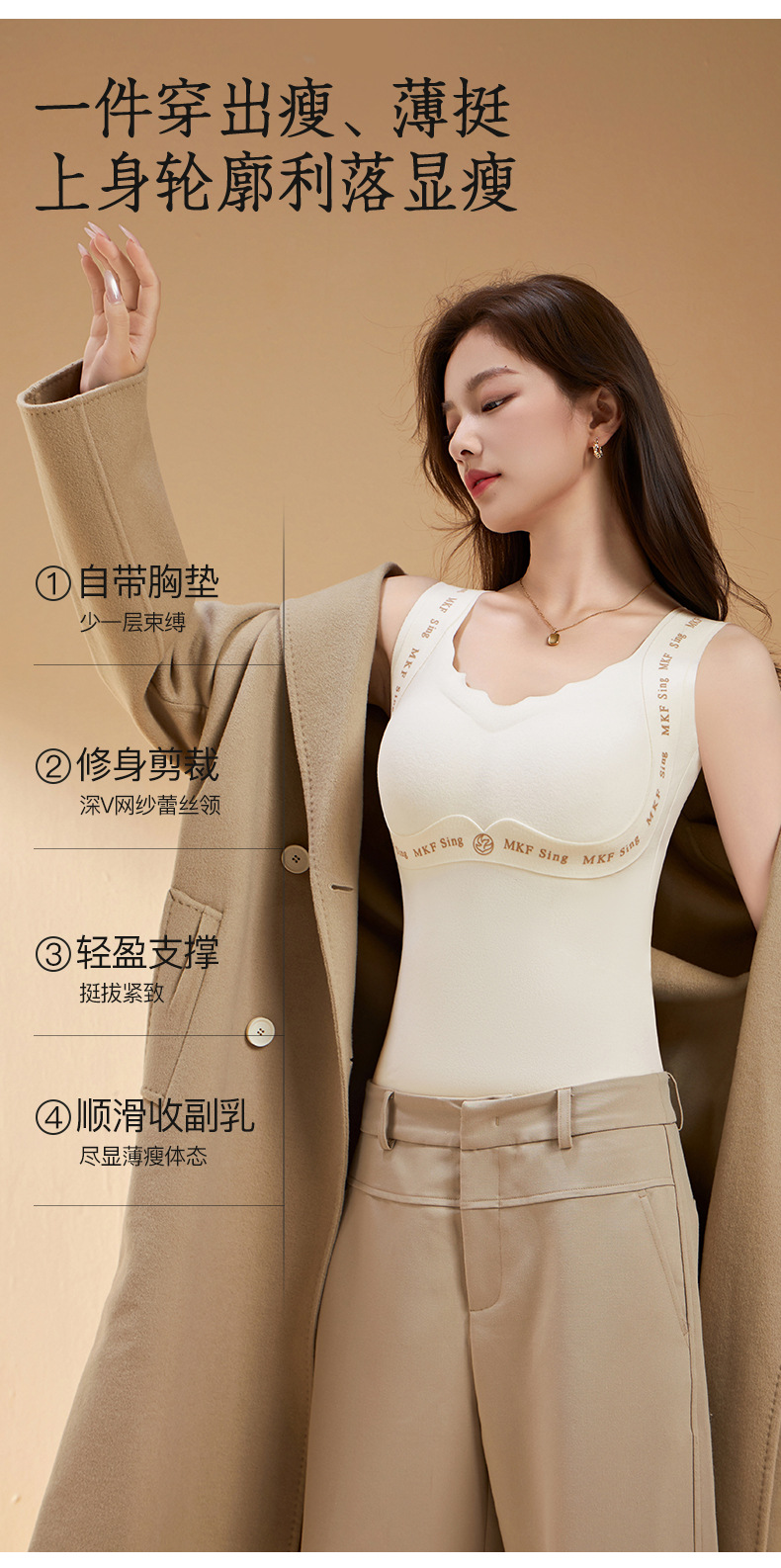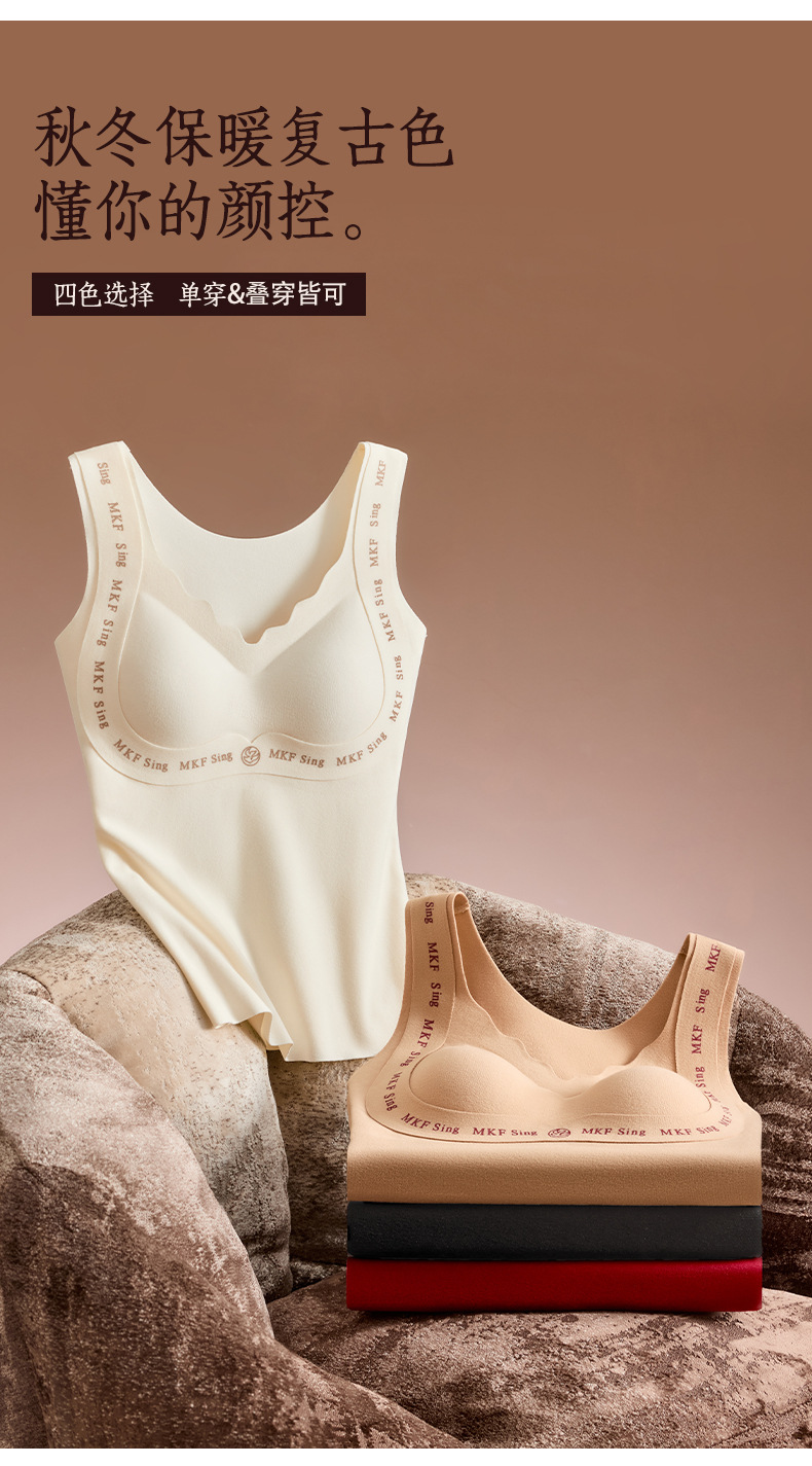 买一送一【美型显瘦 润肤保暖】秋冬新款羊绒提拉保暖背心 自带bra 提拉聚拢 羊绒保暖 无痕版型 一件显瘦