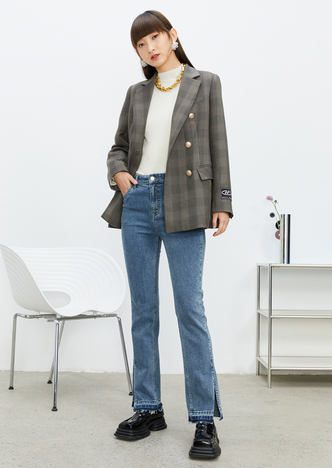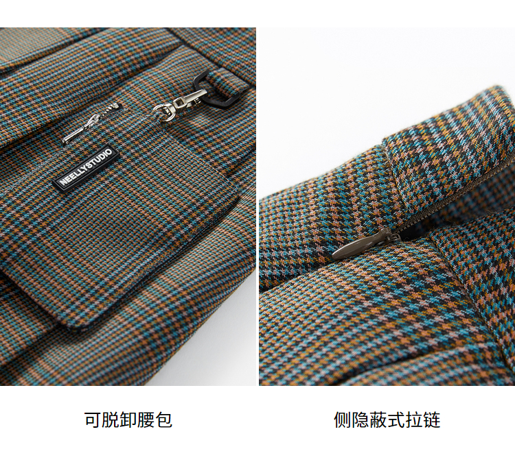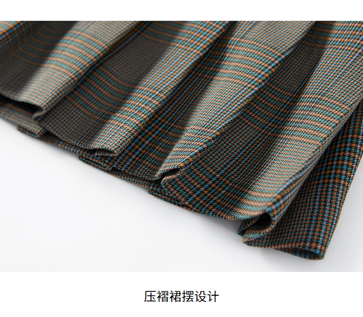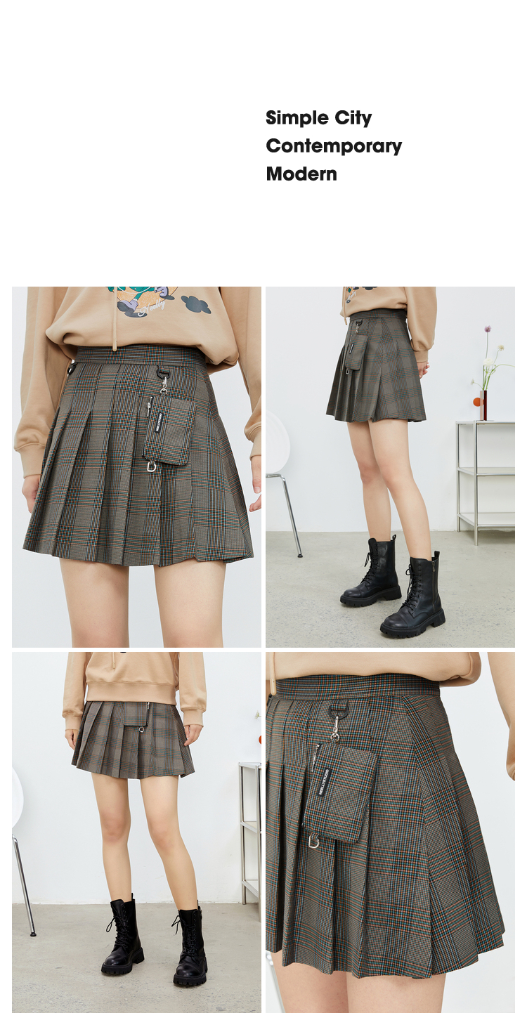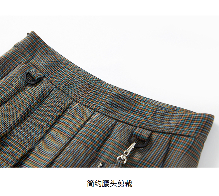 NEELLY纳俪百褶裙女春季新款小个子高腰格子半身裙A字短裙时尚N22011E01017
