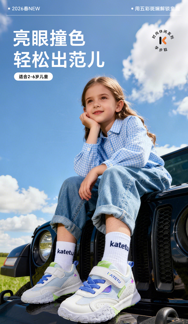 卡特兔儿童运动鞋2026年春季新品小白鞋防滑耐磨透气儿童篮球鞋