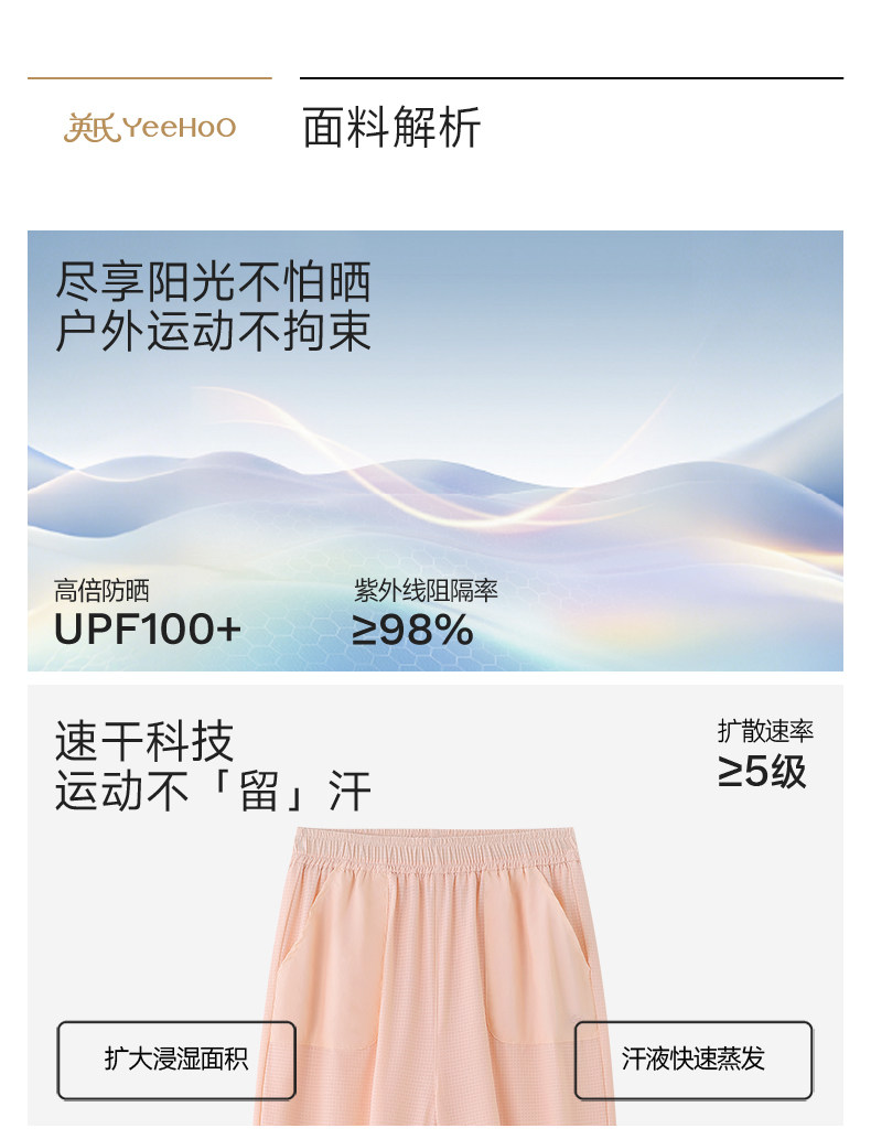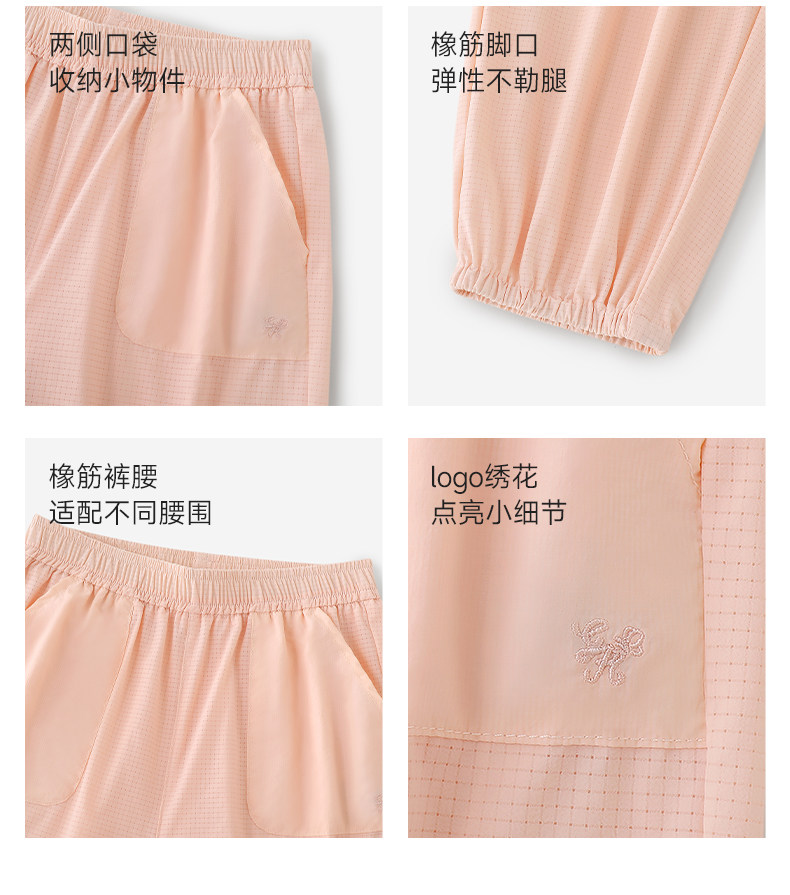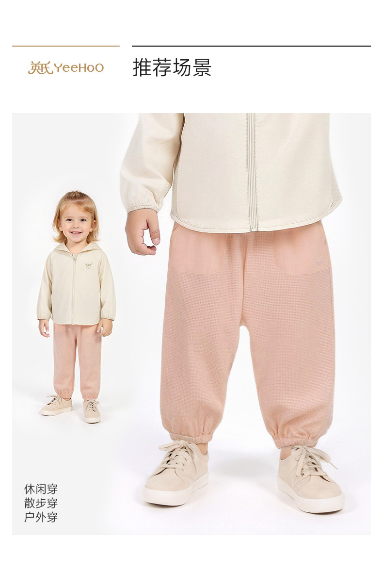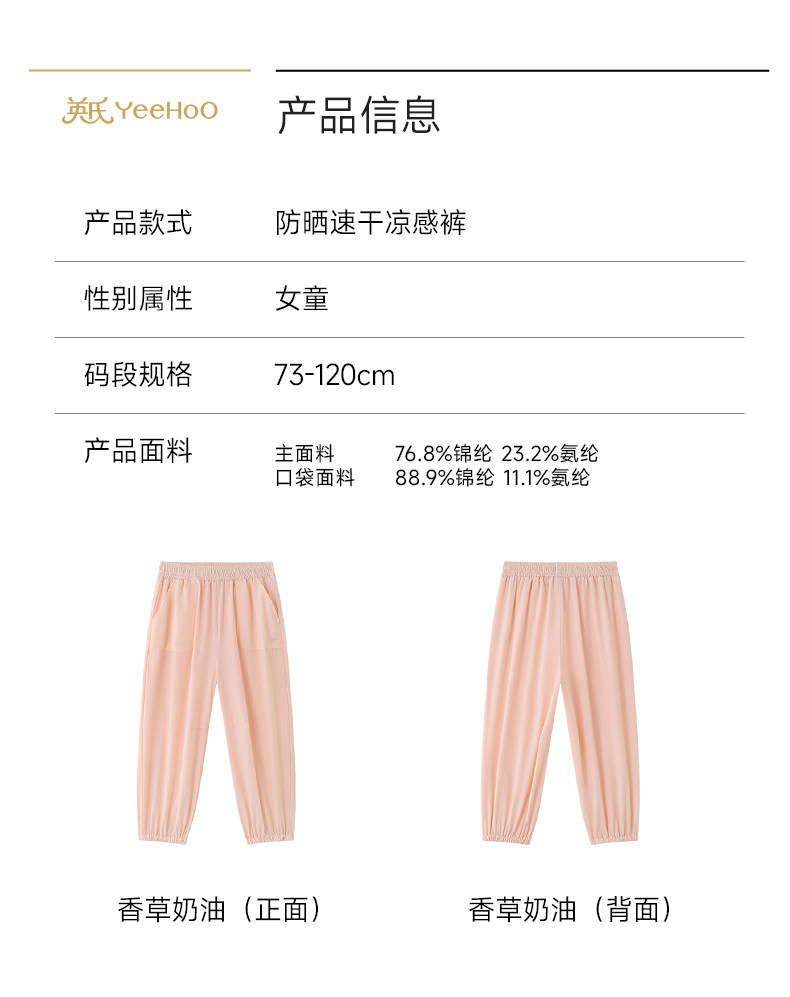 英氏儿童裤子女童女宝夏季速干休闲凉感防晒束脚长裤YRKCJ2S051A