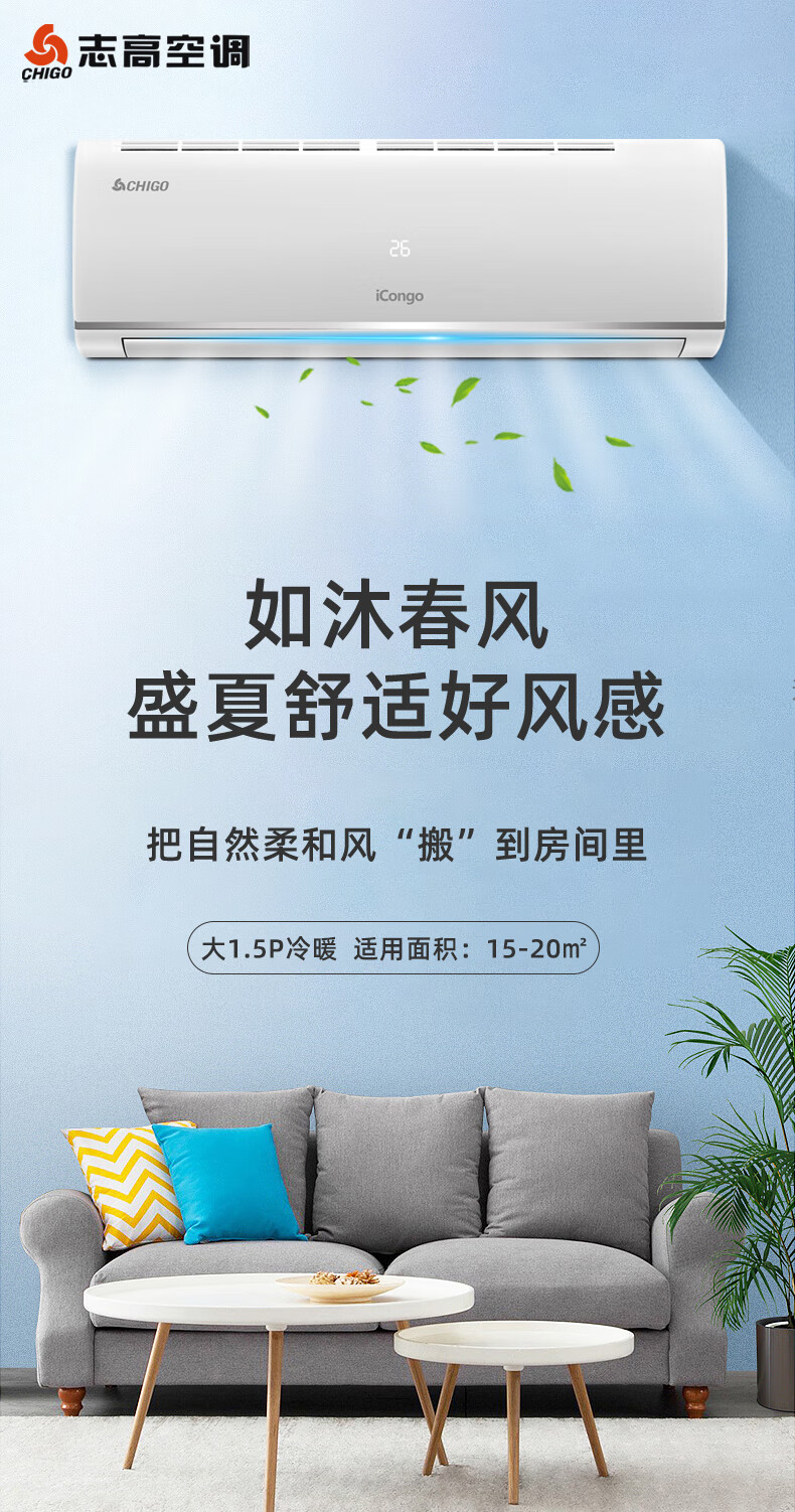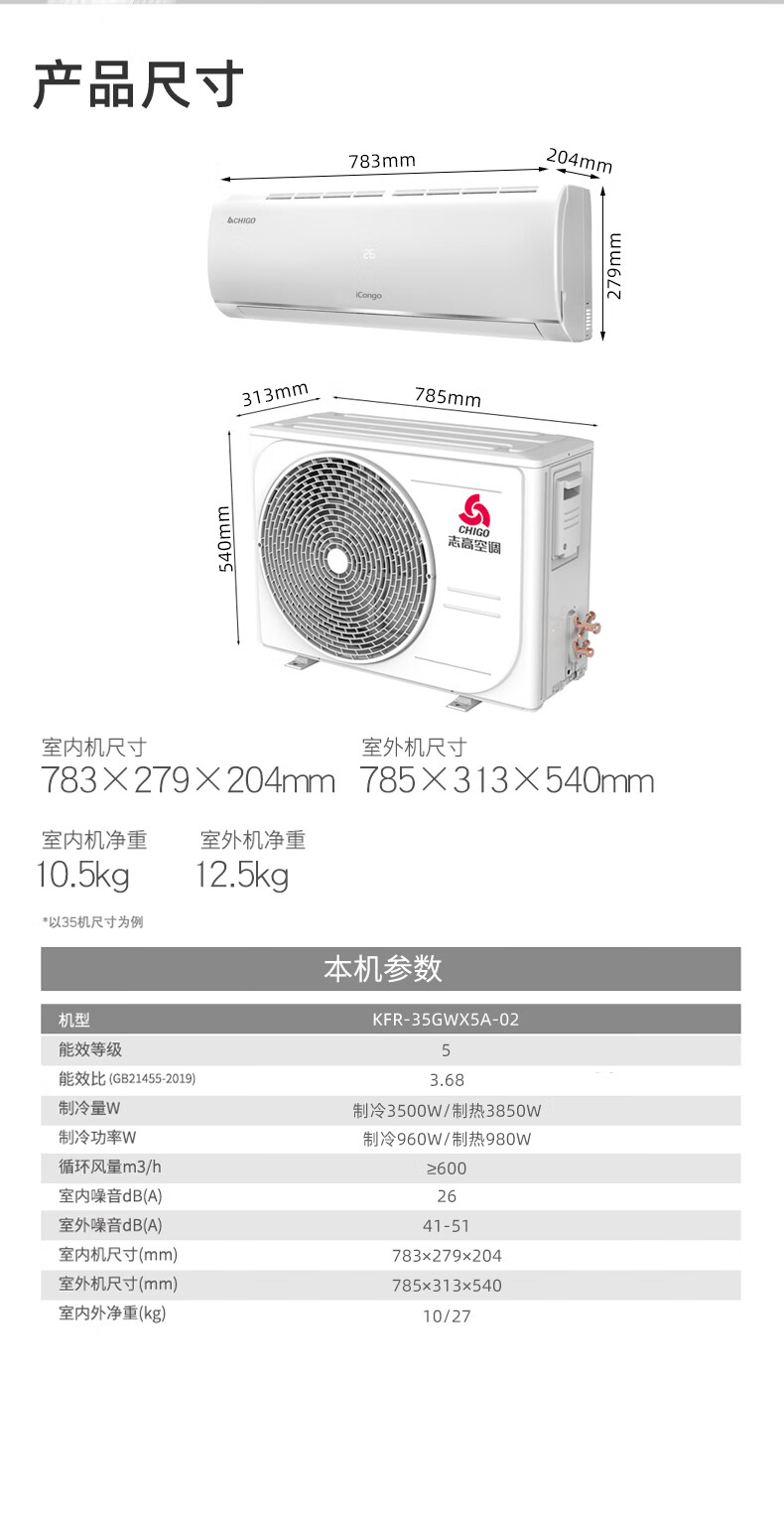 志高(CHIGO)KFR-25GW/KFR-35GW X5A-02 空调挂机5级定频冷暖定频家用卧室壁挂式节能轻音