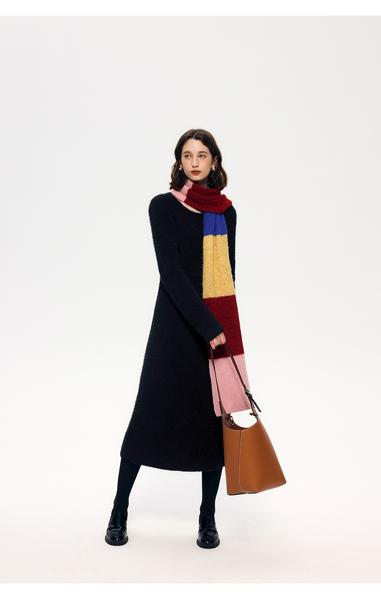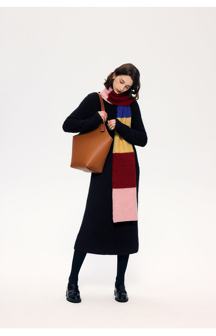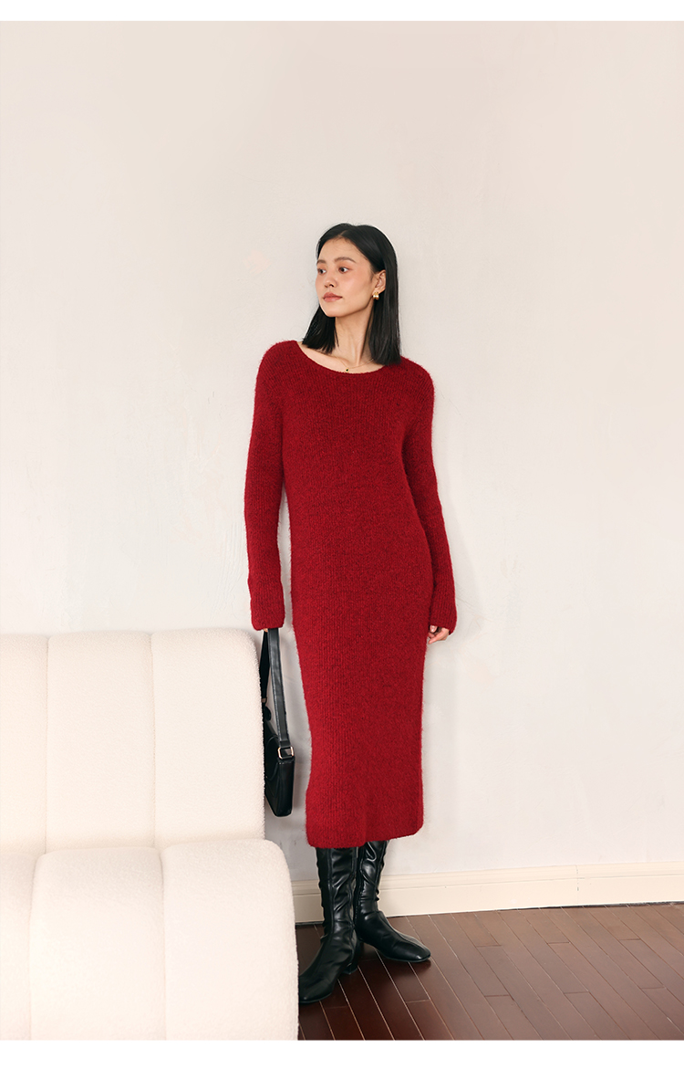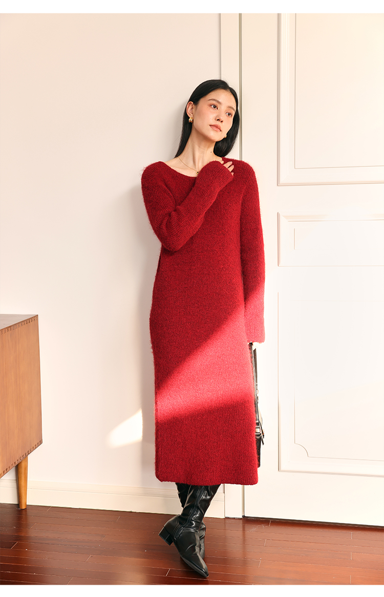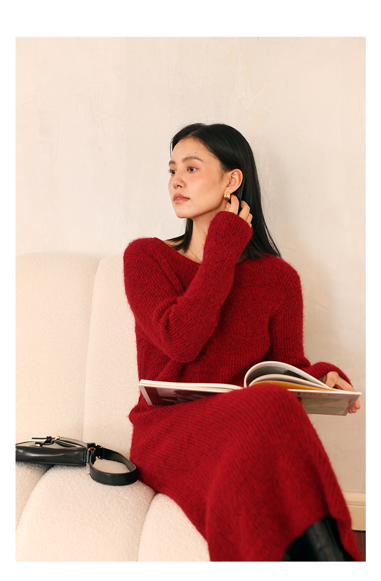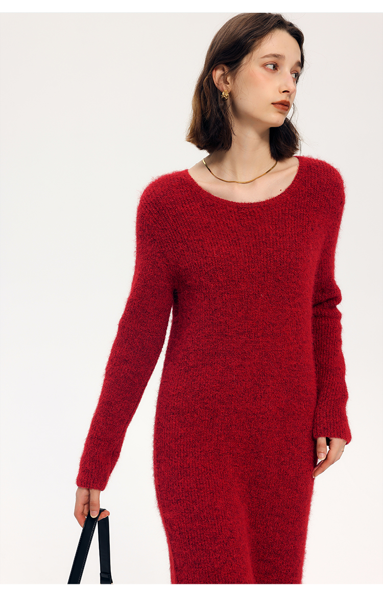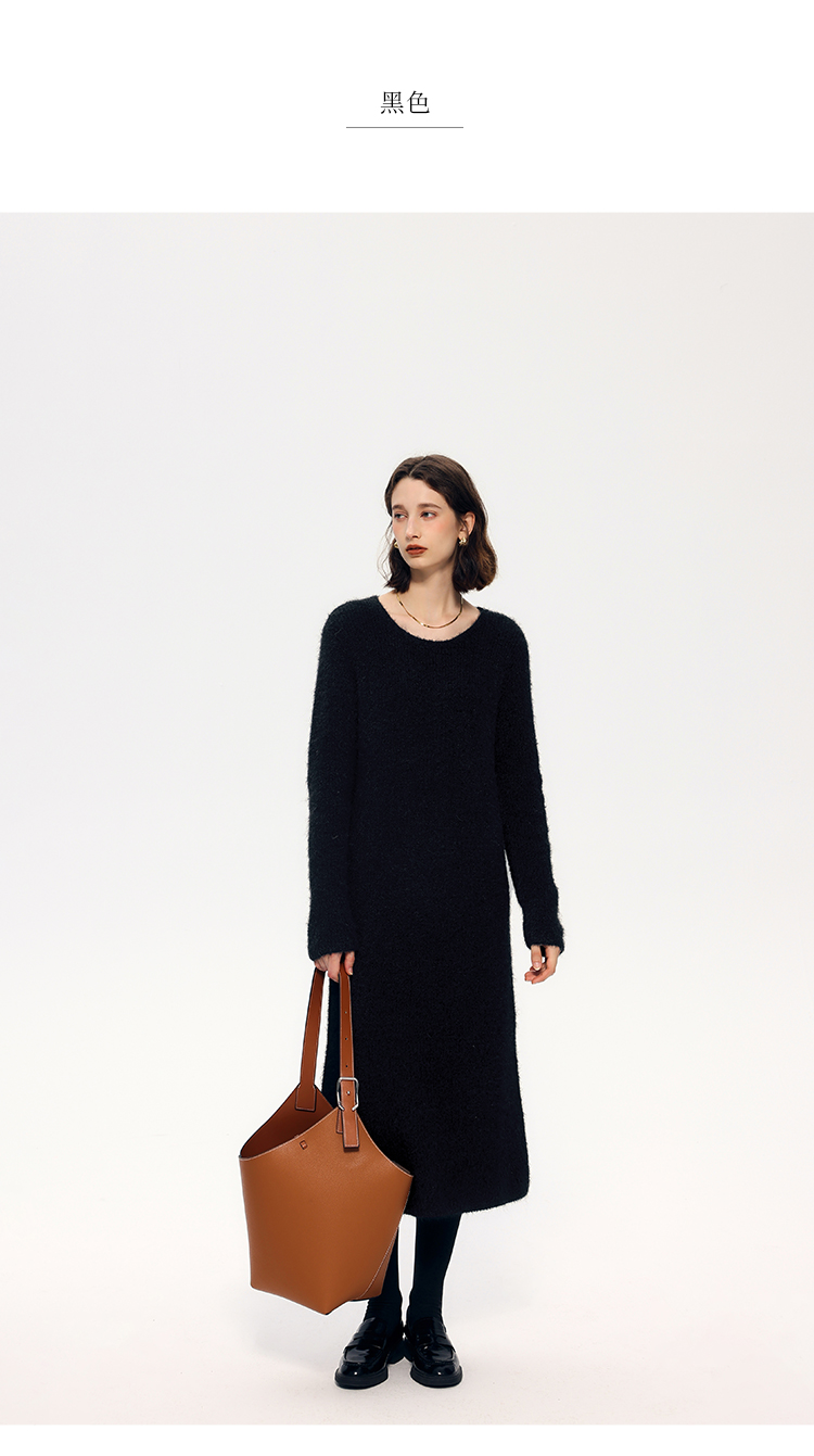 HeyDress针织连衣裙法式复古圆领宽松慵懒感气质裙子