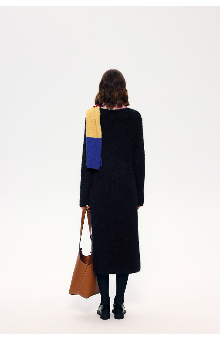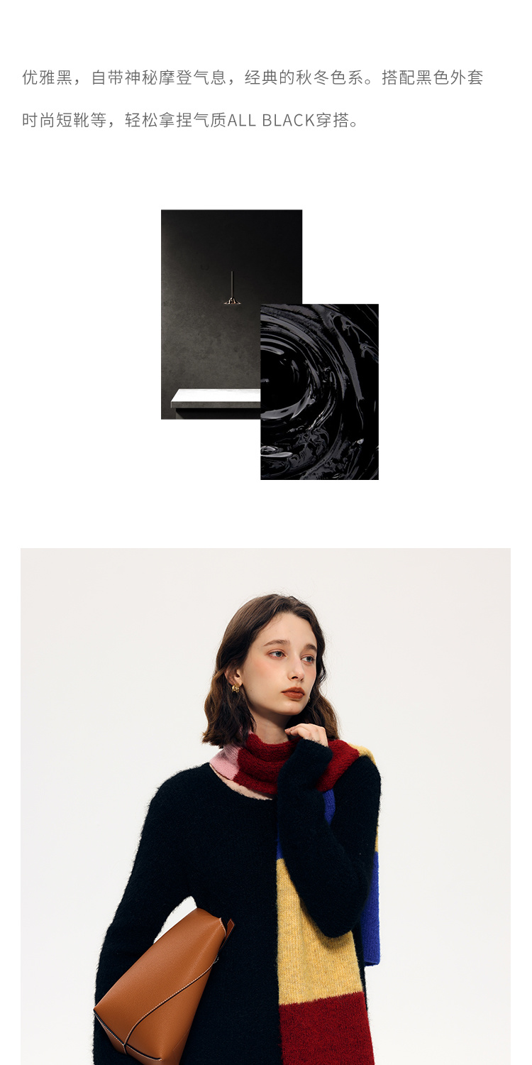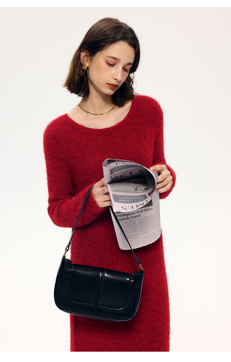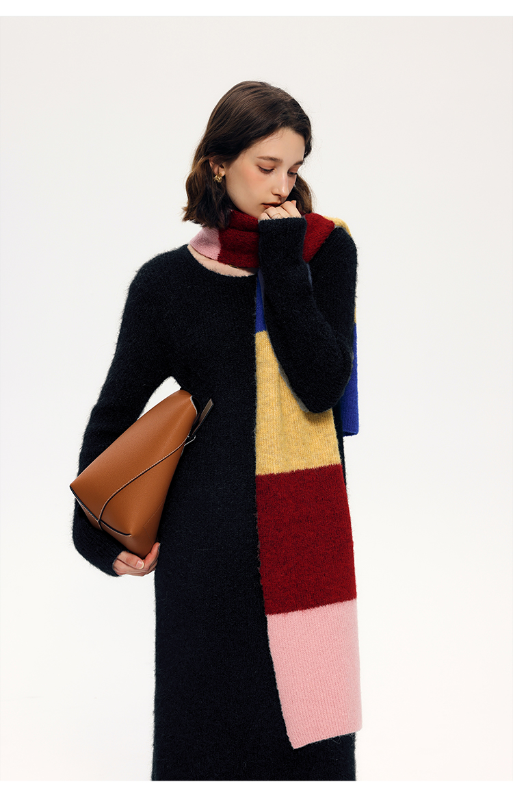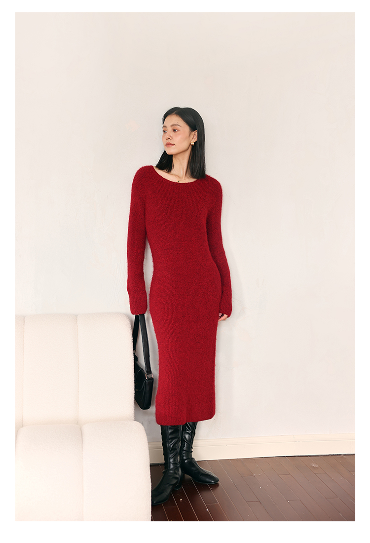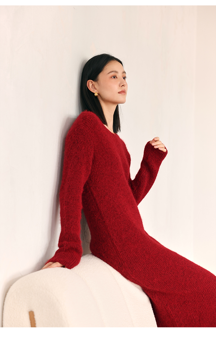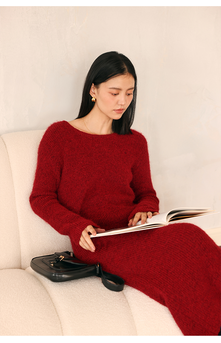 HeyDress针织连衣裙法式复古圆领宽松慵懒感气质裙子