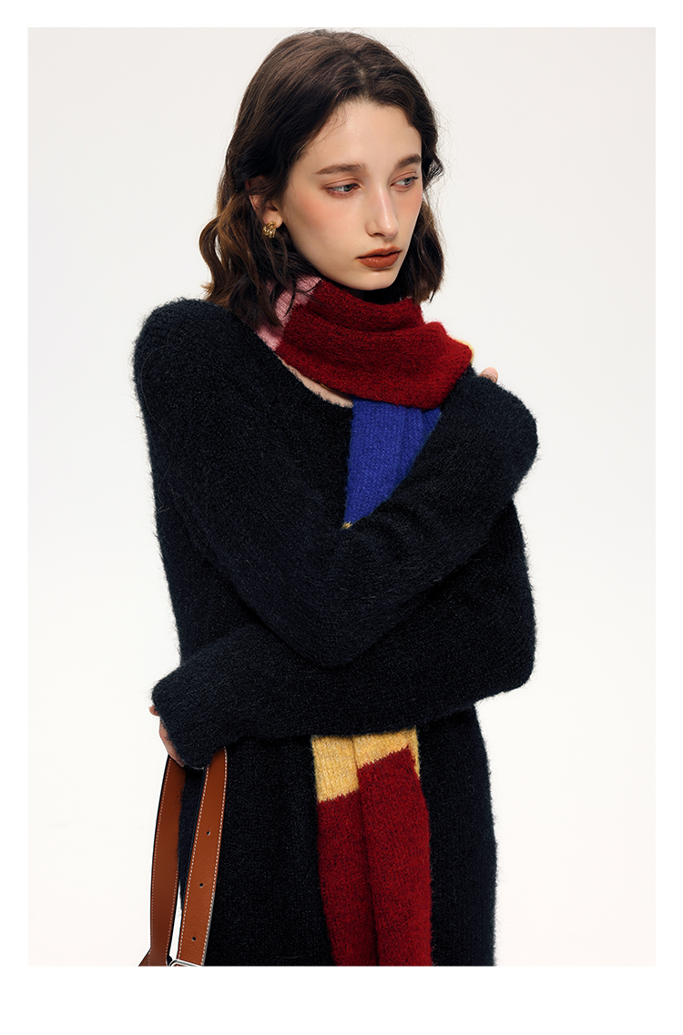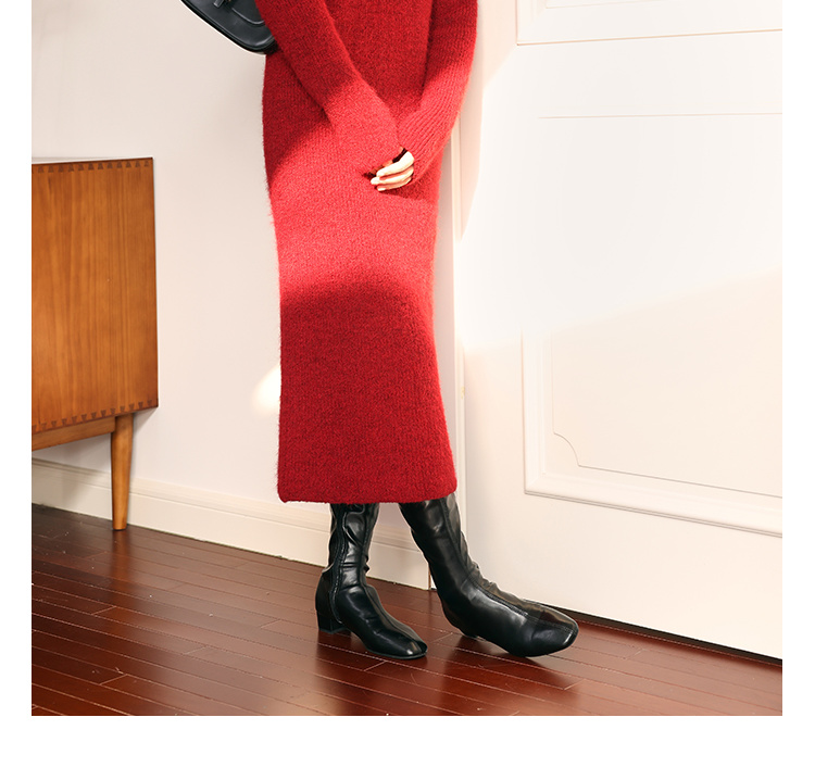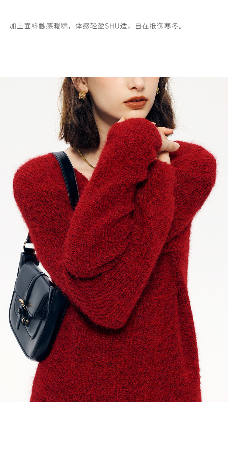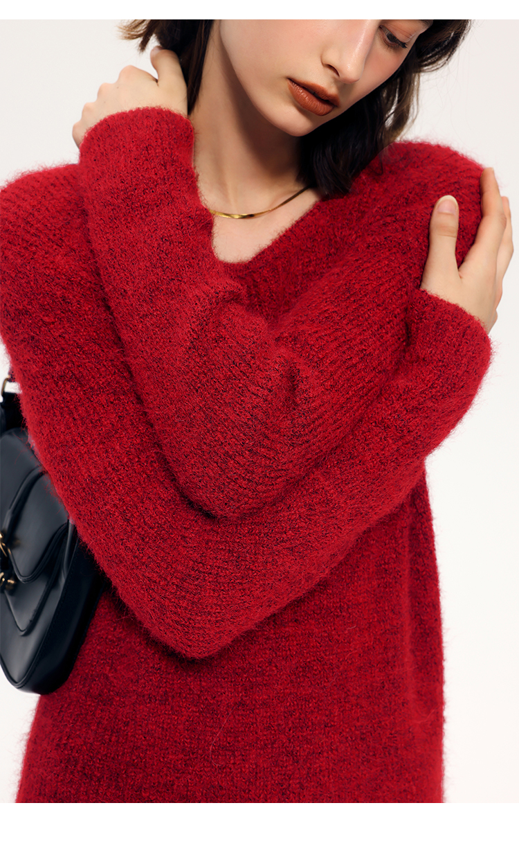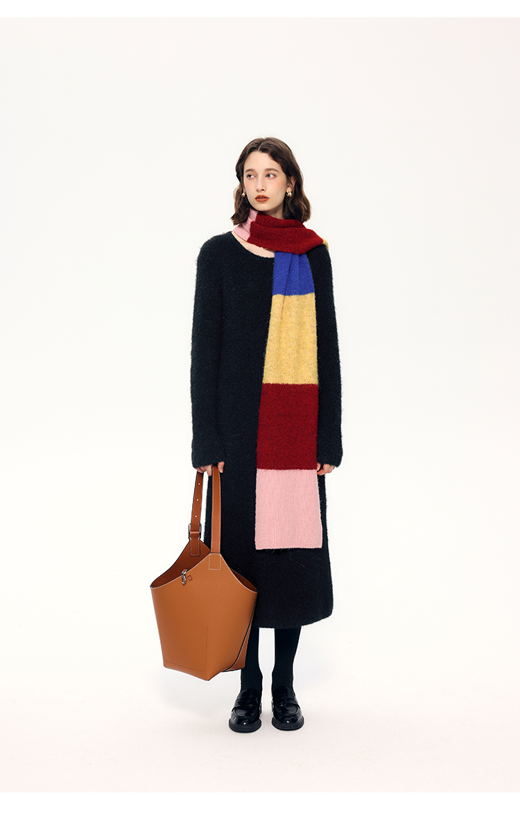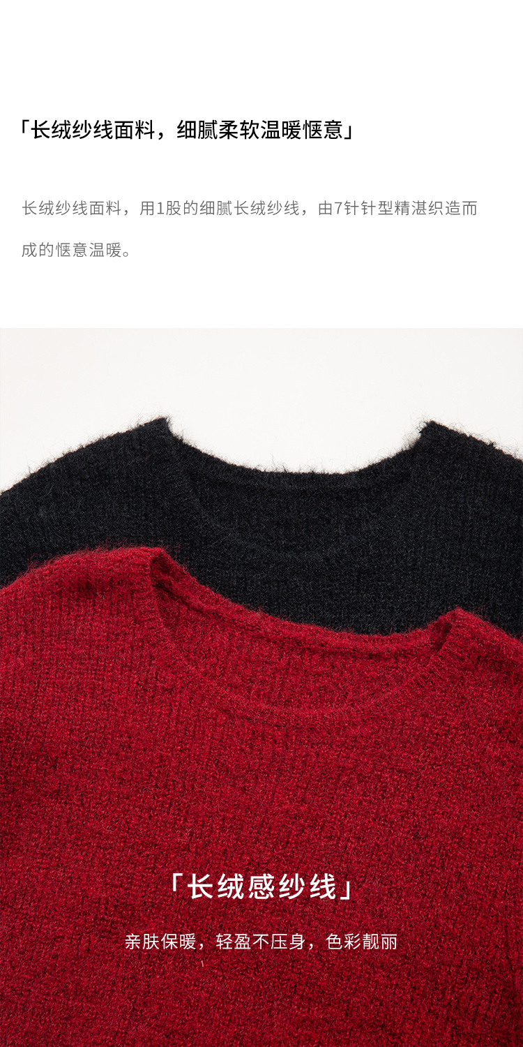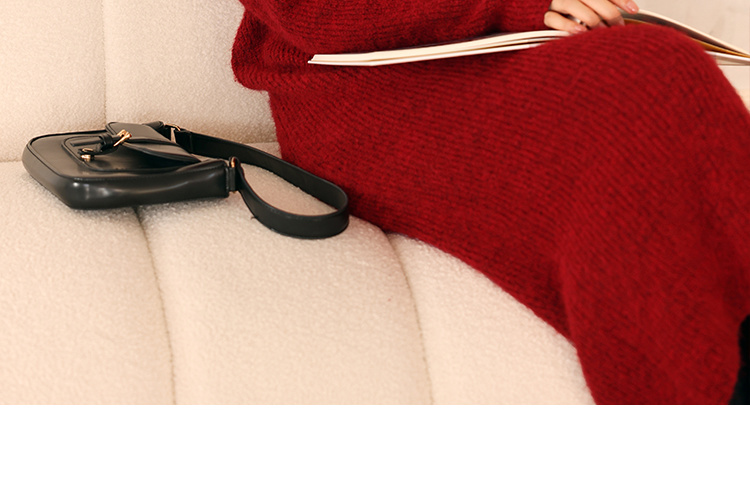 HeyDress针织连衣裙法式复古圆领宽松慵懒感气质裙子
