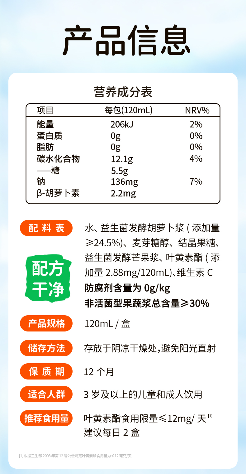 江中食疗有眼光益生菌发酵胡萝卜饮品【低糖】好喝的胡萝卜汁 低糖无添加 120ml*20瓶 2025年7月生产/保质期12个月