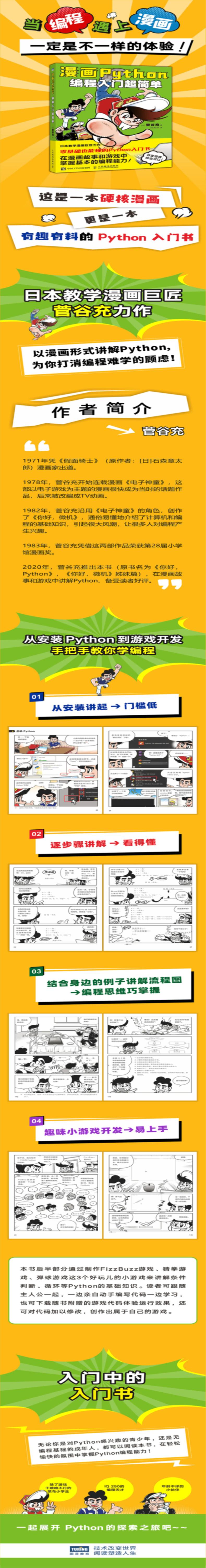 本书是日本教学漫画巨匠菅谷充的新作品,以漫画的形式展开,从什么是程序开始讲起,带领大家安装Python、认识变量、编写程序,并开发出一个又一个的好玩儿的游戏。FizzBuzz游戏、猜拳游戏、弹球游戏……当你亲手开发的游戏在计算机上运行起来,当你解决掉不经意间造成的程序bug,你将切实体会到编程的乐趣,并在此过程中掌握扎实的Python编程能力。