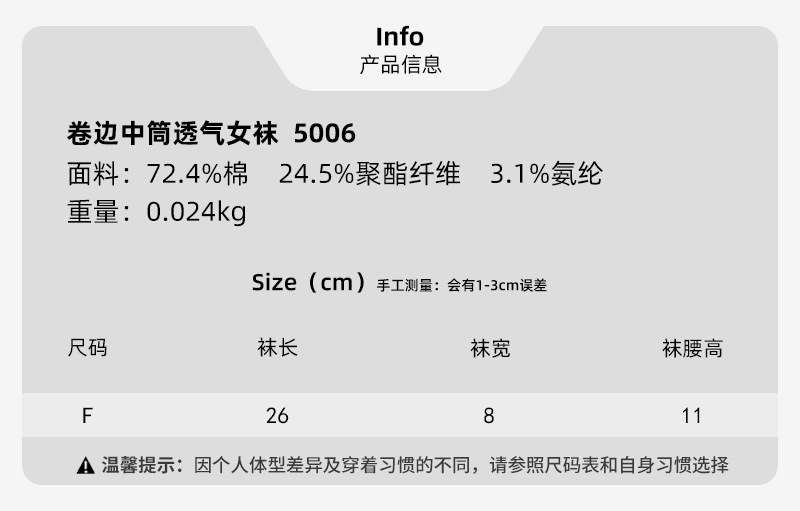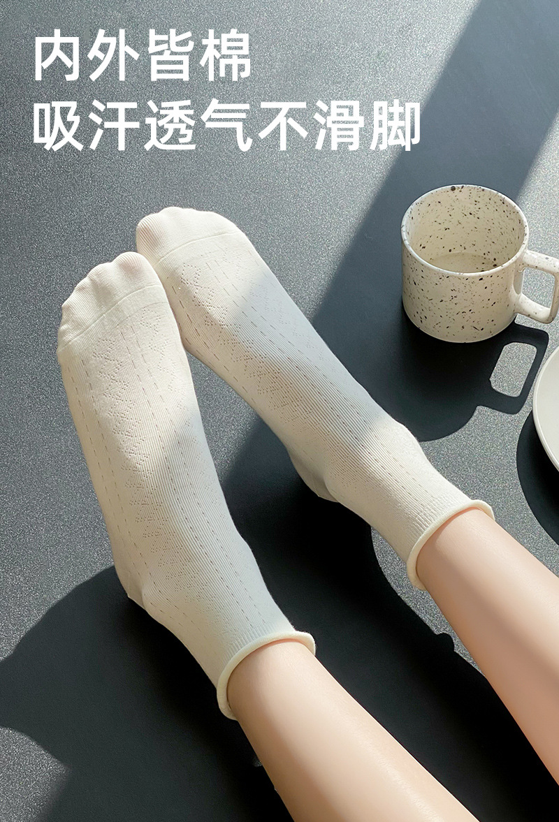 【小卷边袜】春夏袜休闲中棉质长筒袜防臭吸汗棉质双针薄款透气女袜