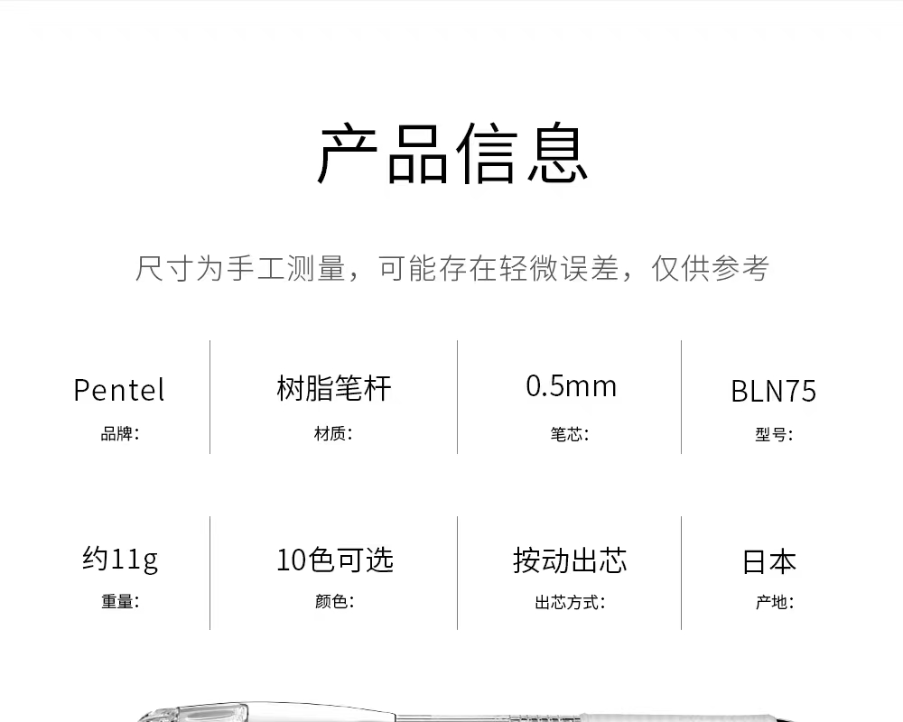 日本Pentel派通速干中性笔BLN75TL透明杆彩色水性笔0.5/0.7
