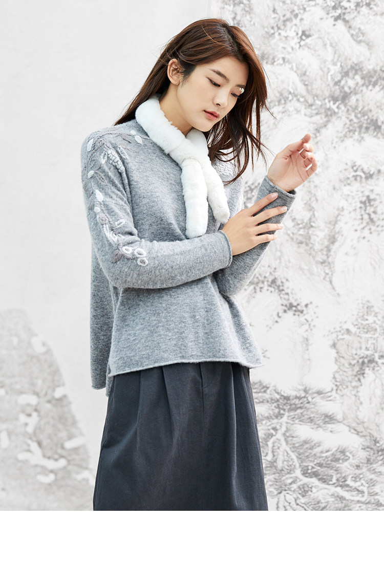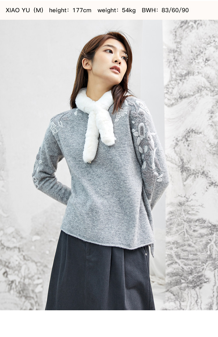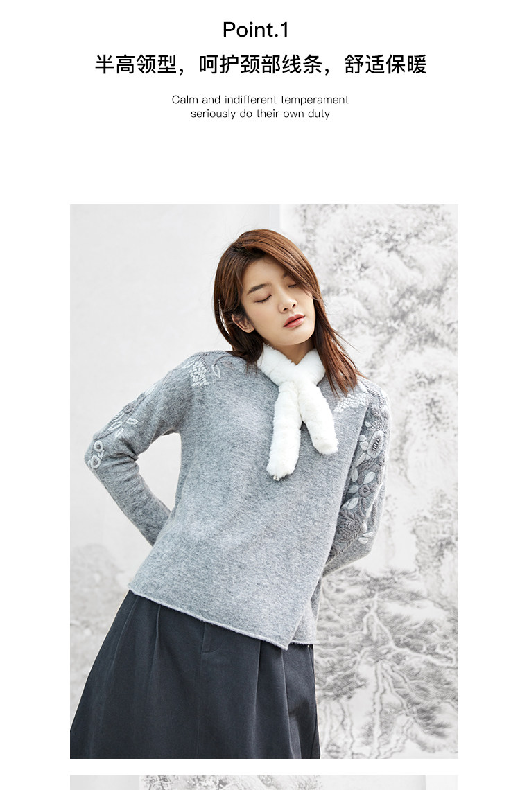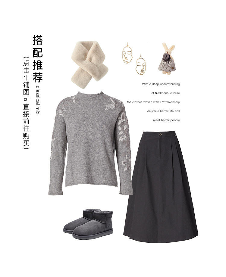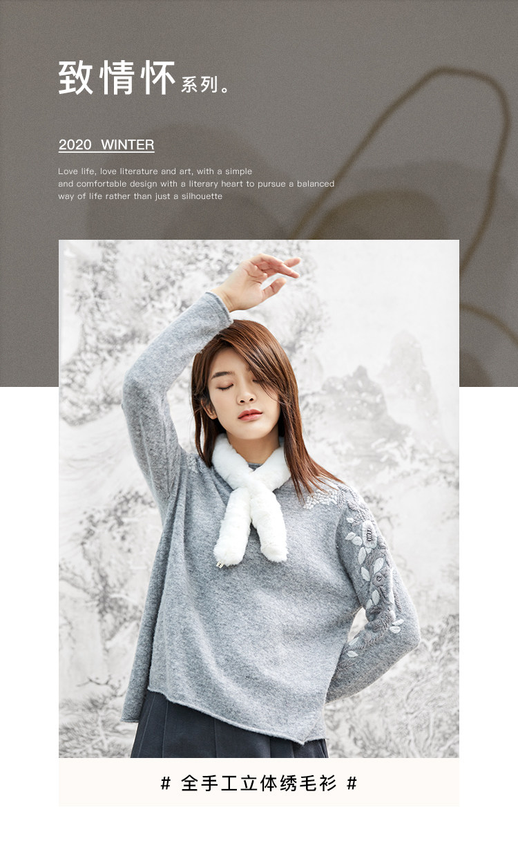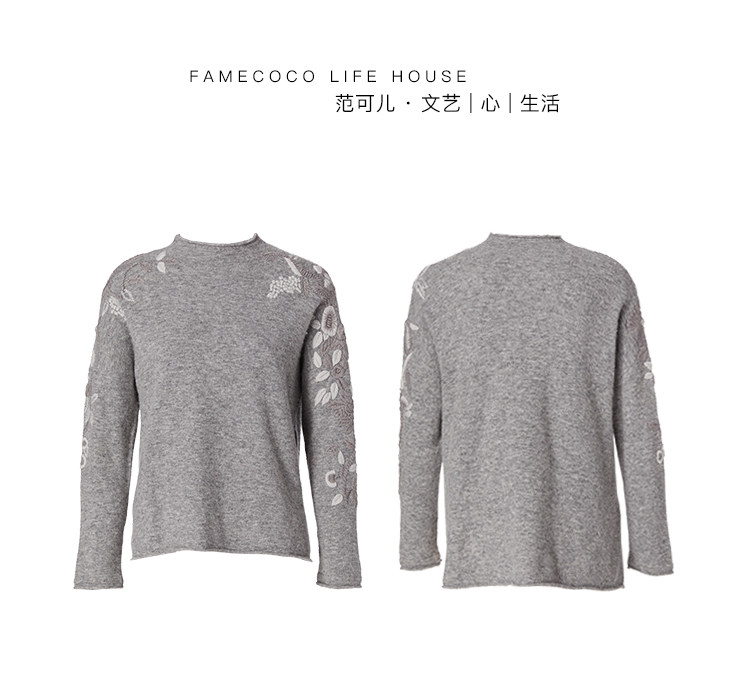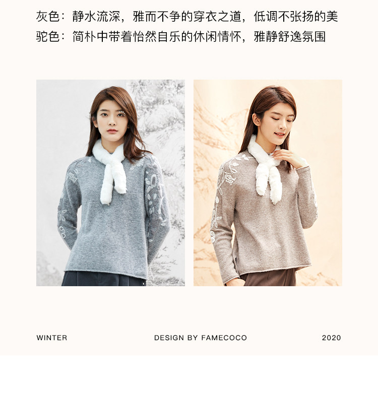 Famecoco范可儿毛衣女秋冬外穿宽松百搭套头针织衫上衣F208DB030