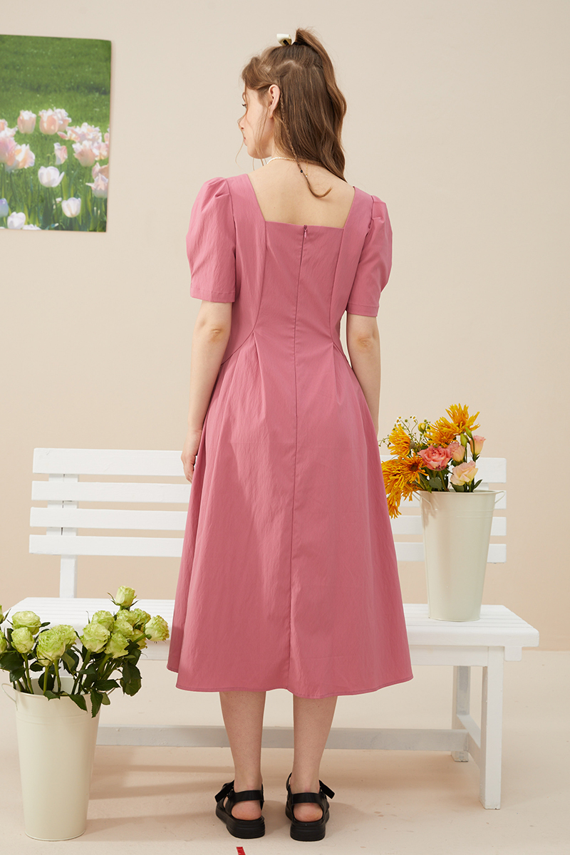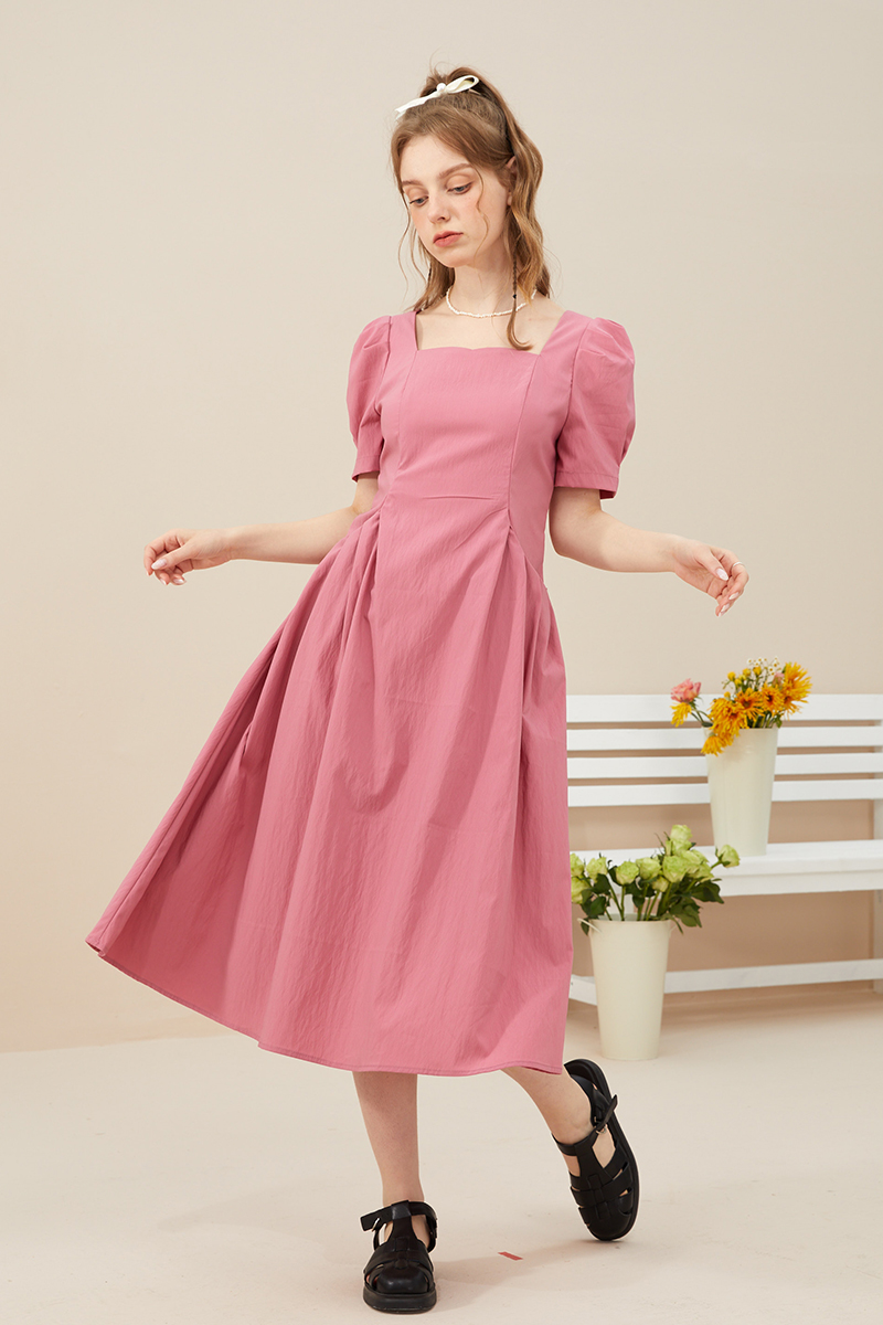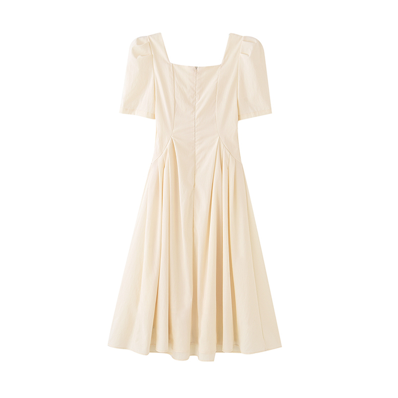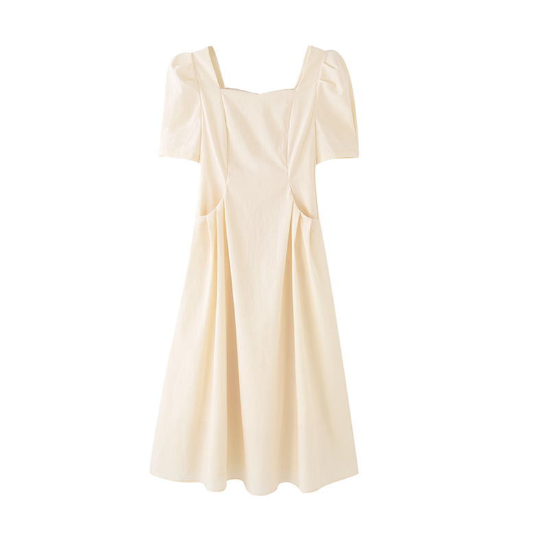 mc2方领连衣裙女收腰打褶口袋设计法式复古赫本风气质高级感长裙