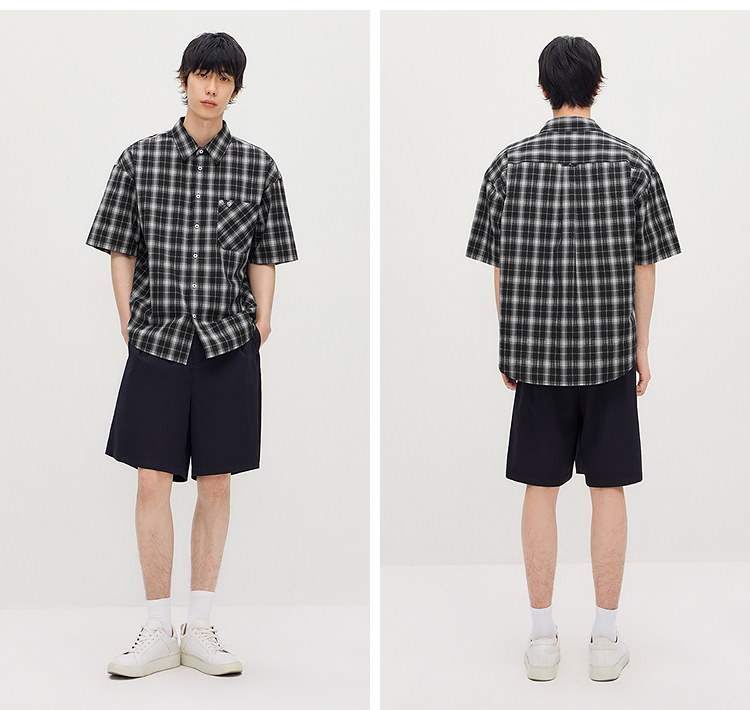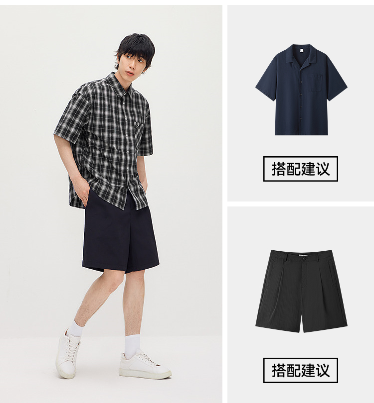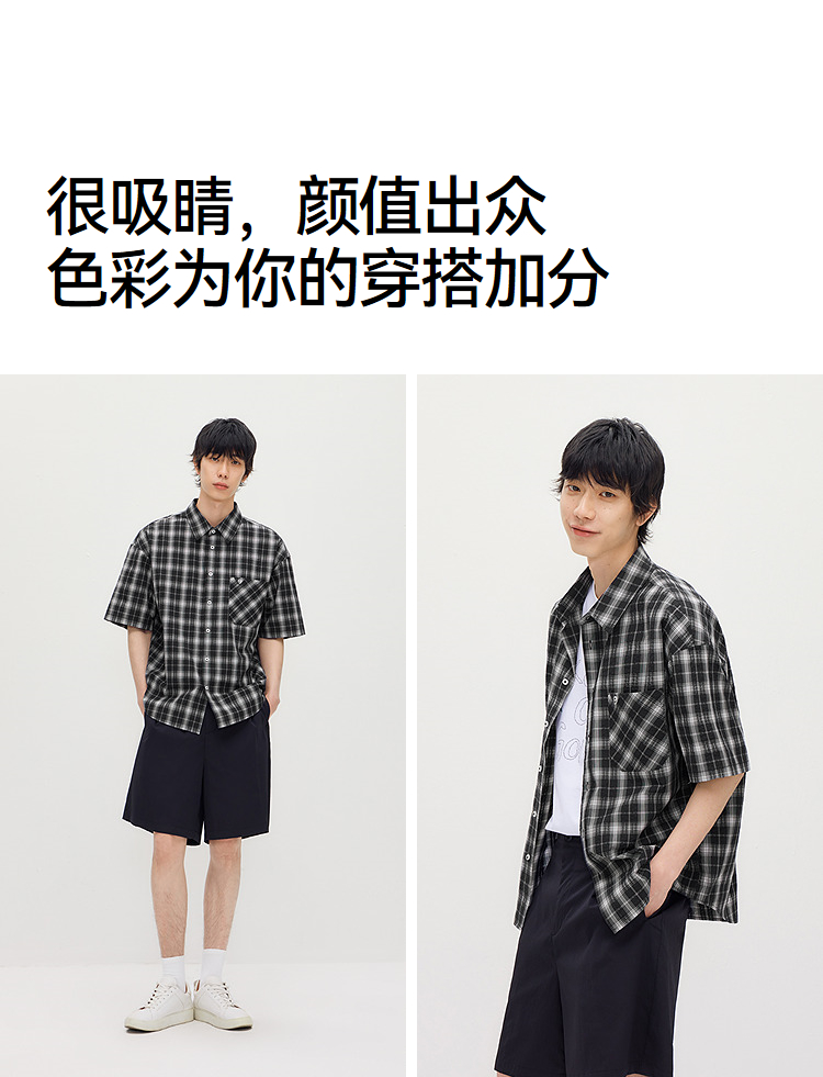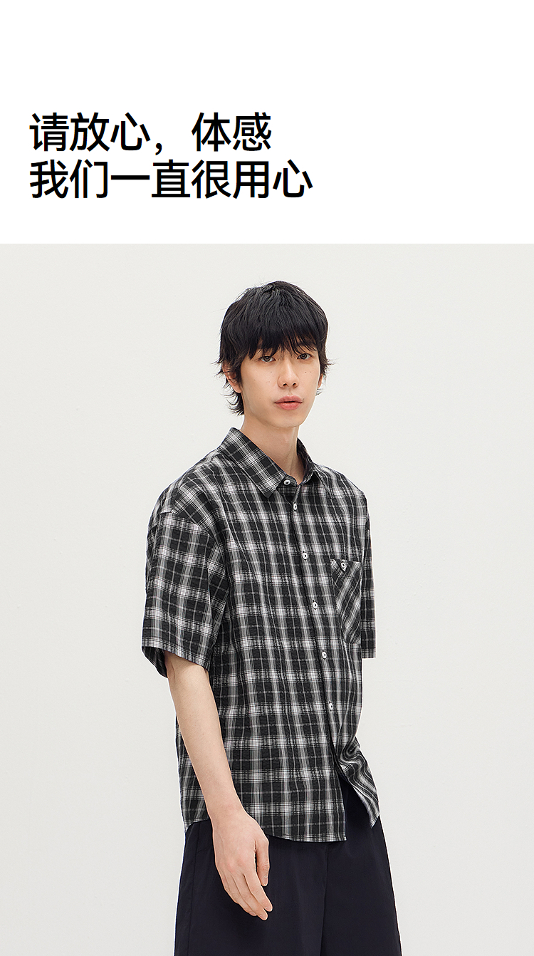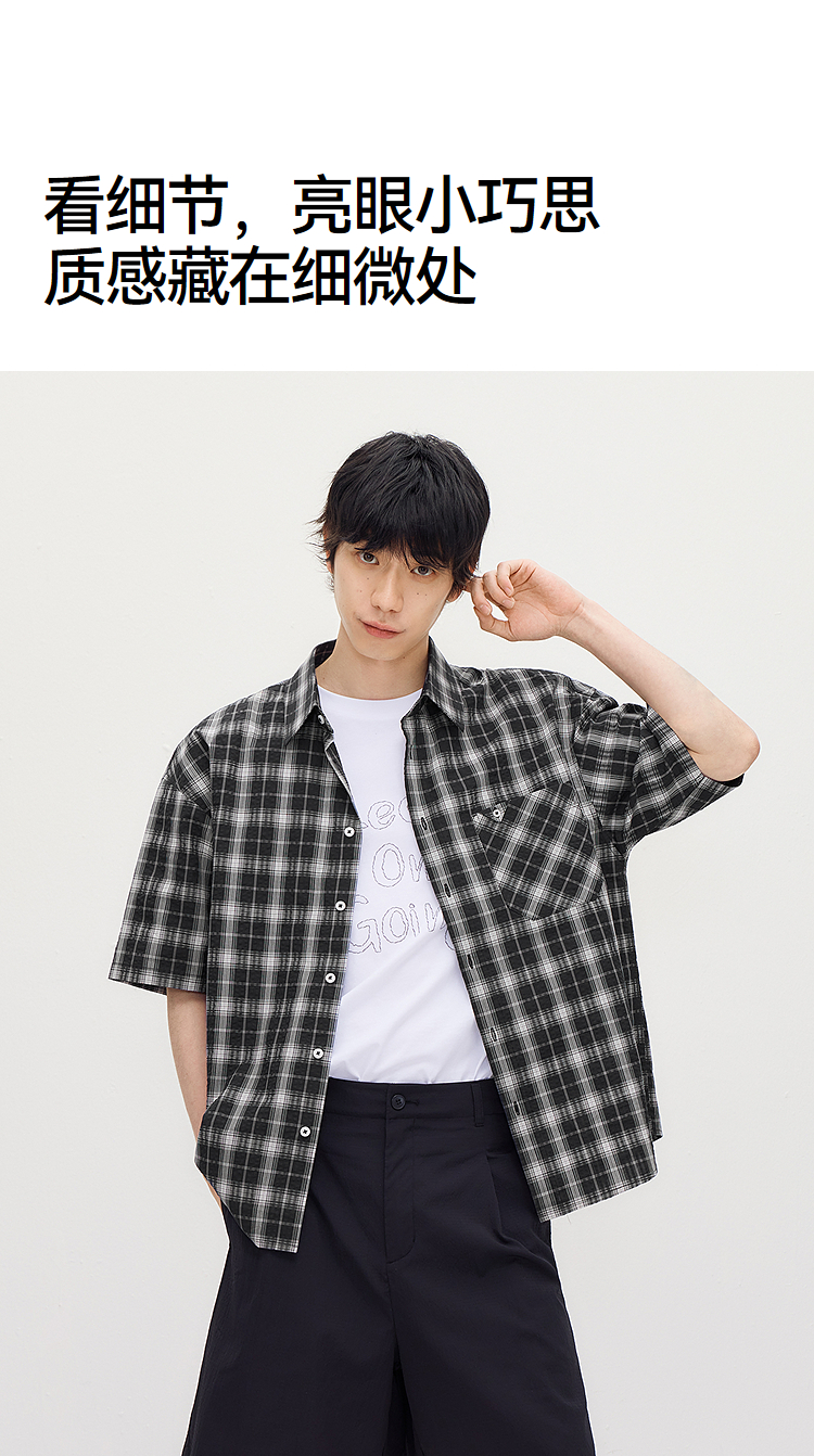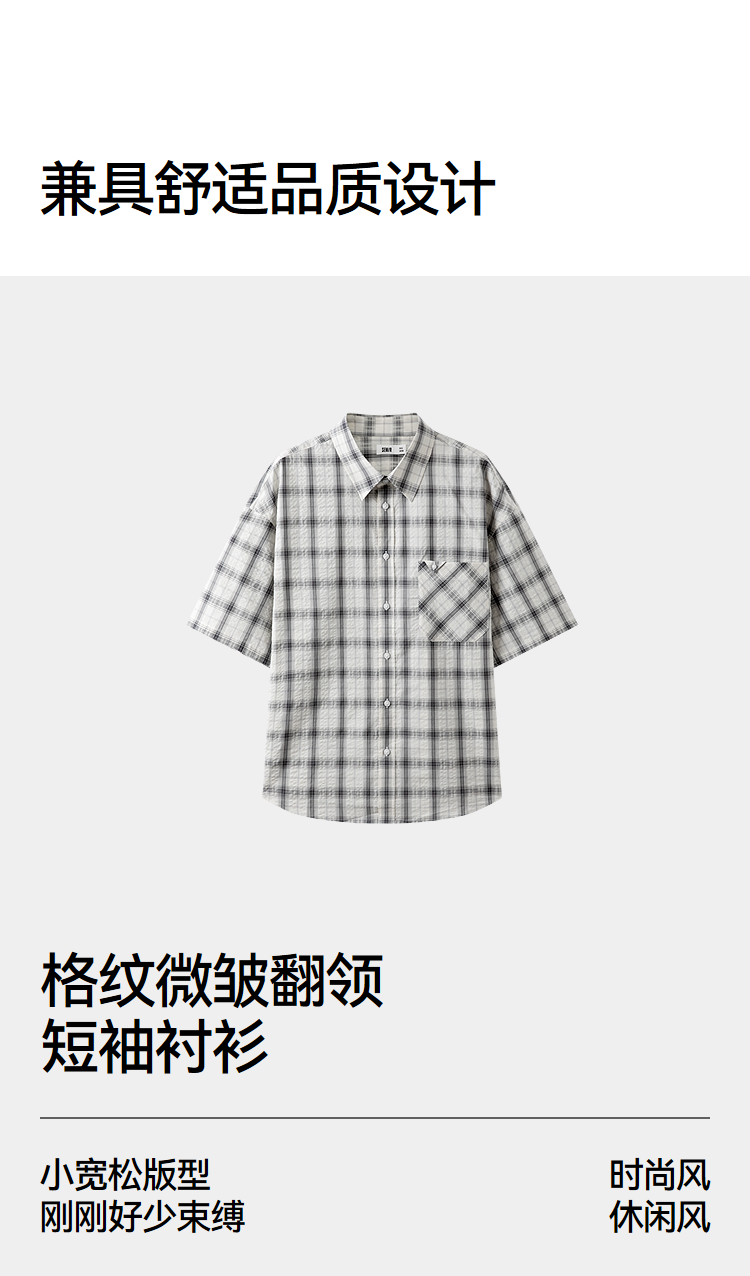 森马短袖衬衫男夏季纯棉格纹泡泡肌理上衣2026新款经典百搭衬衣