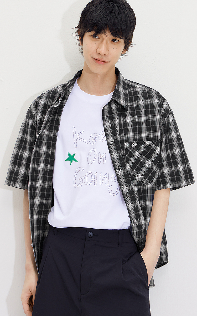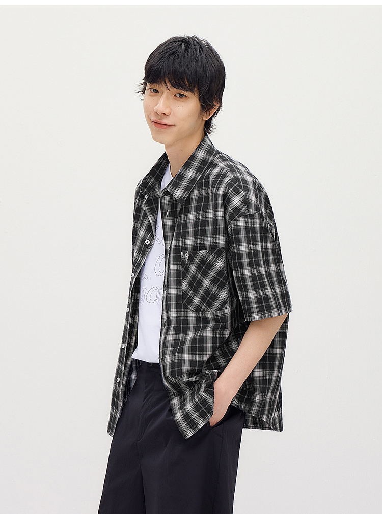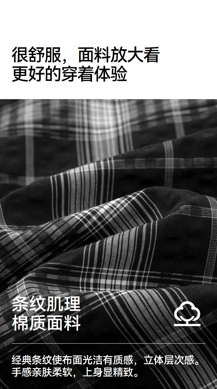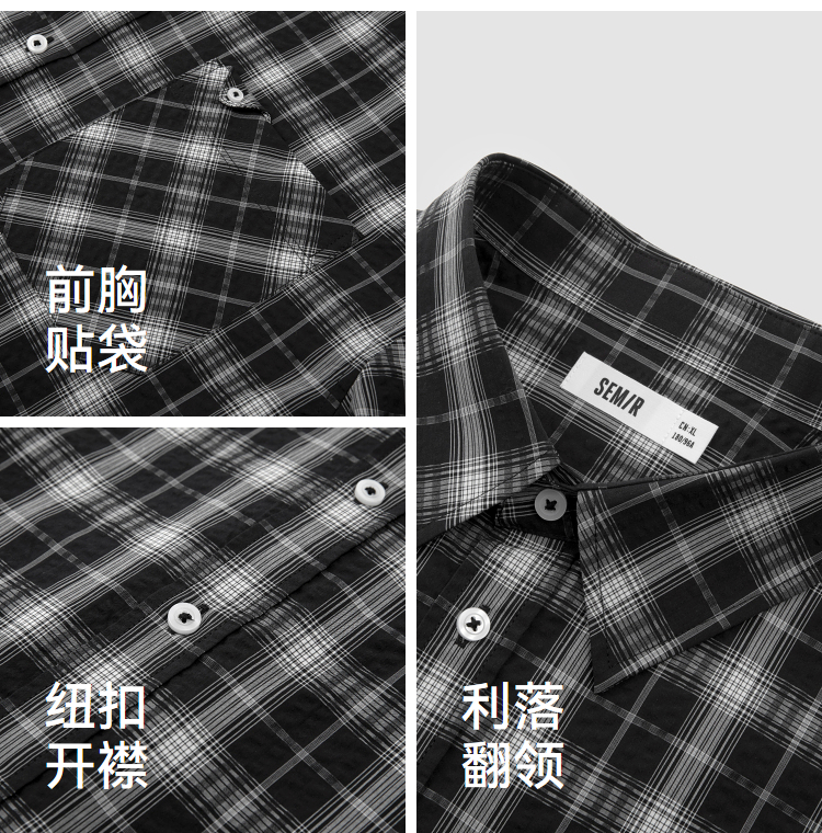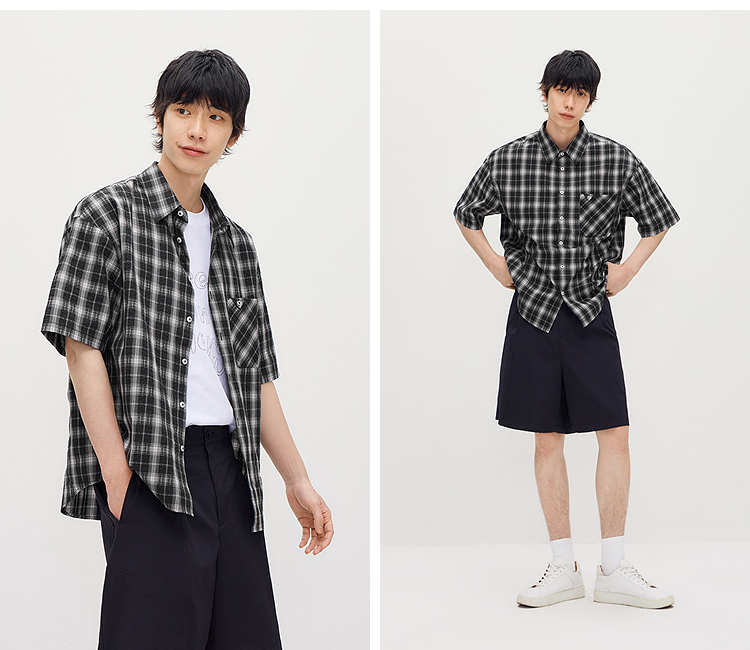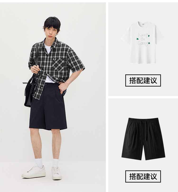 森马短袖衬衫男夏季纯棉格纹泡泡肌理上衣2026新款经典百搭衬衣