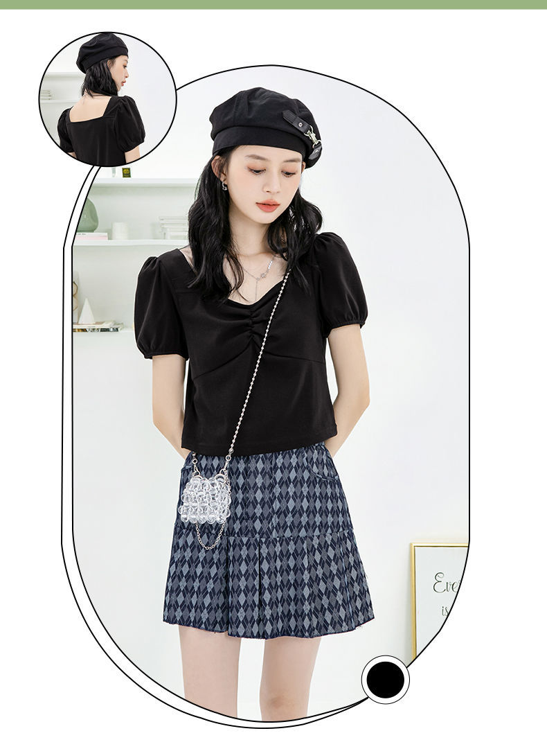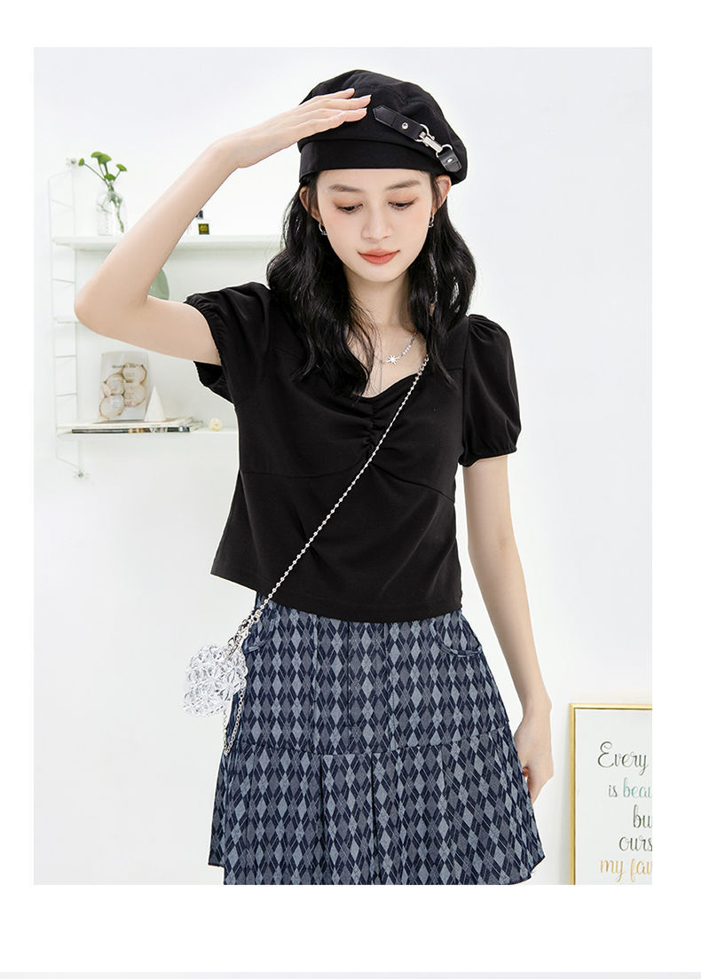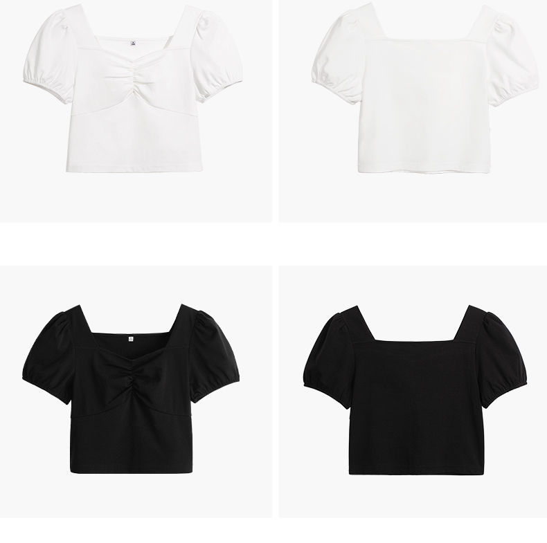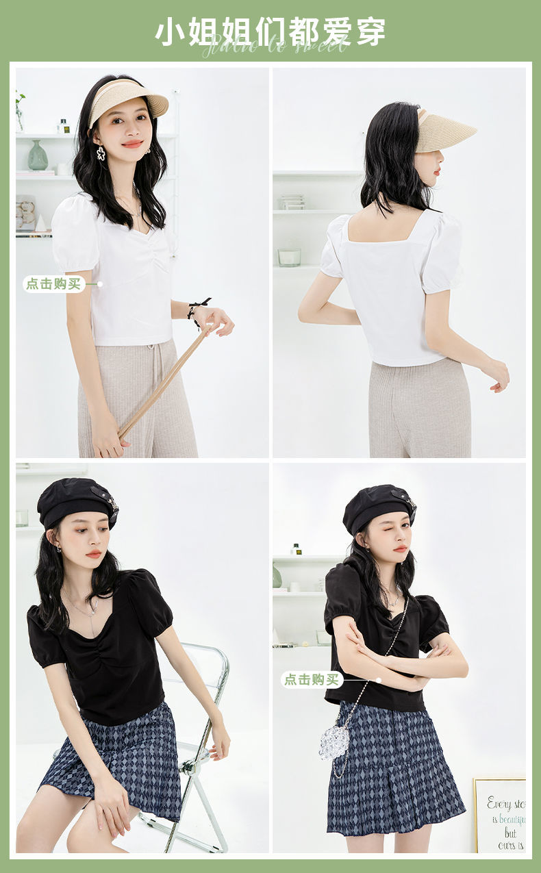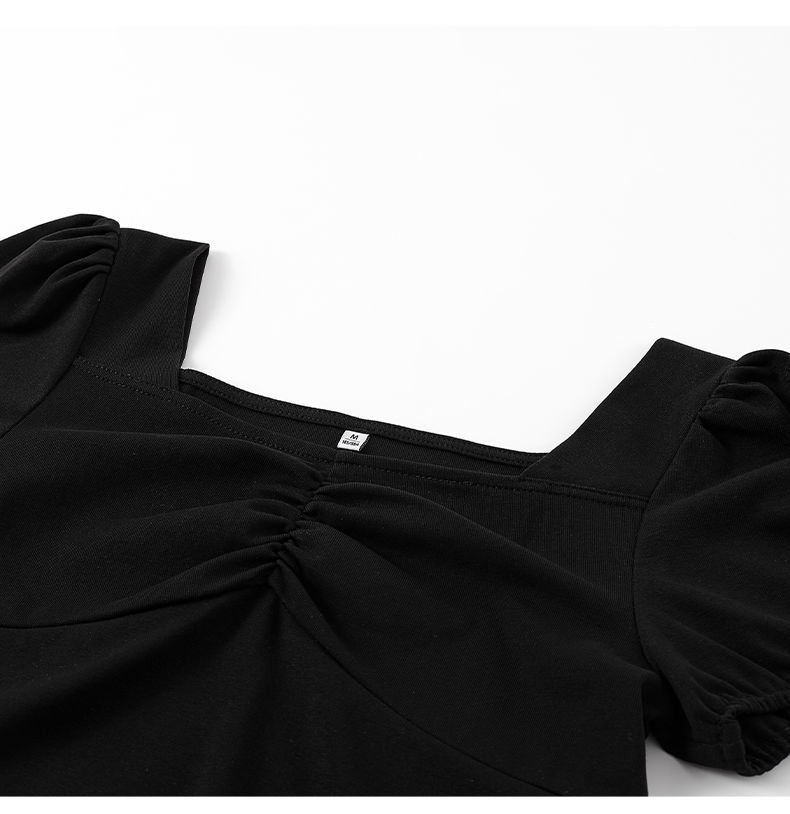 黛唯梵真维斯方领黑色T恤女别致小上衣ins早春2022年流行小衫短款上衣女