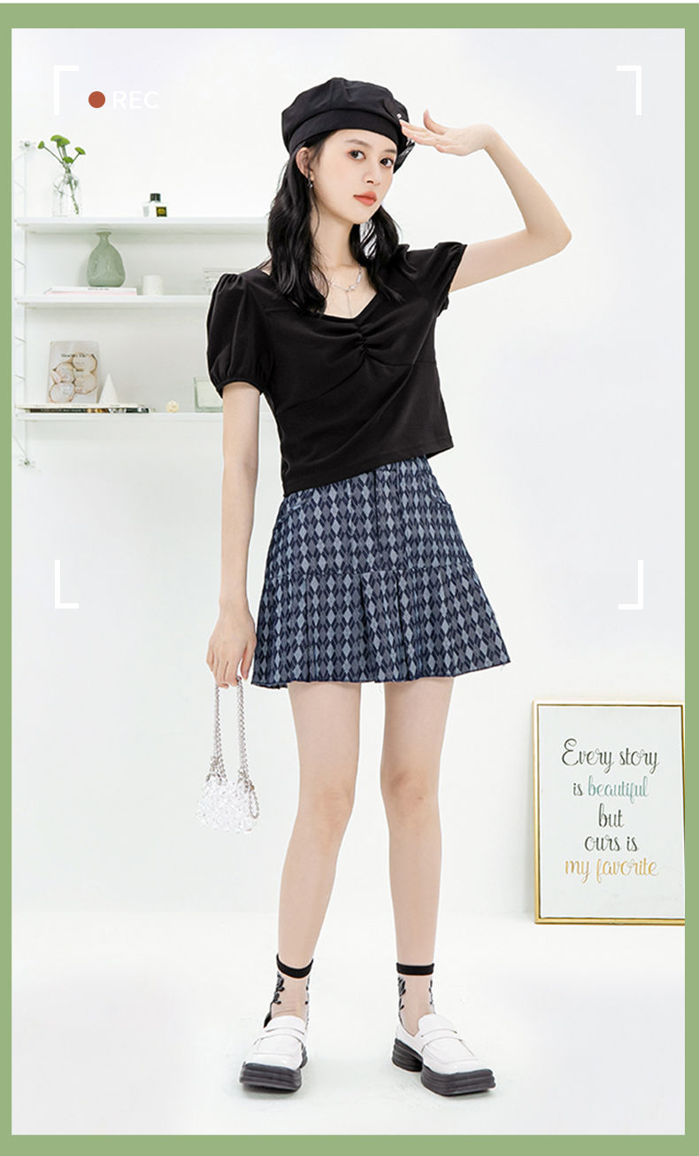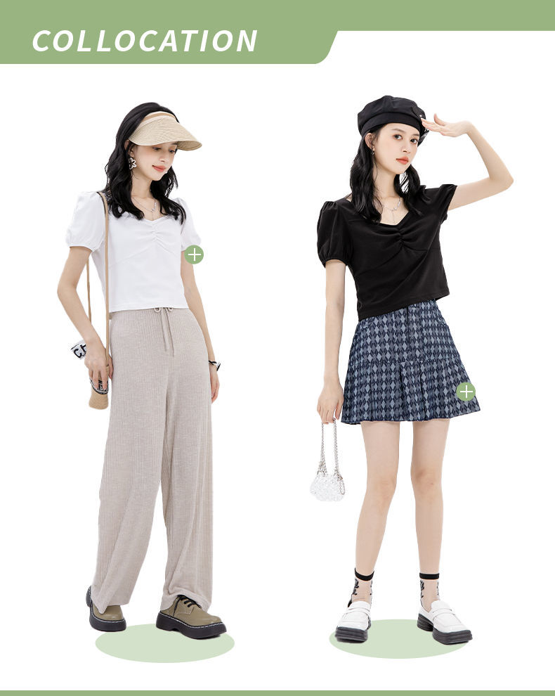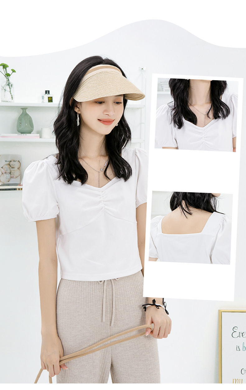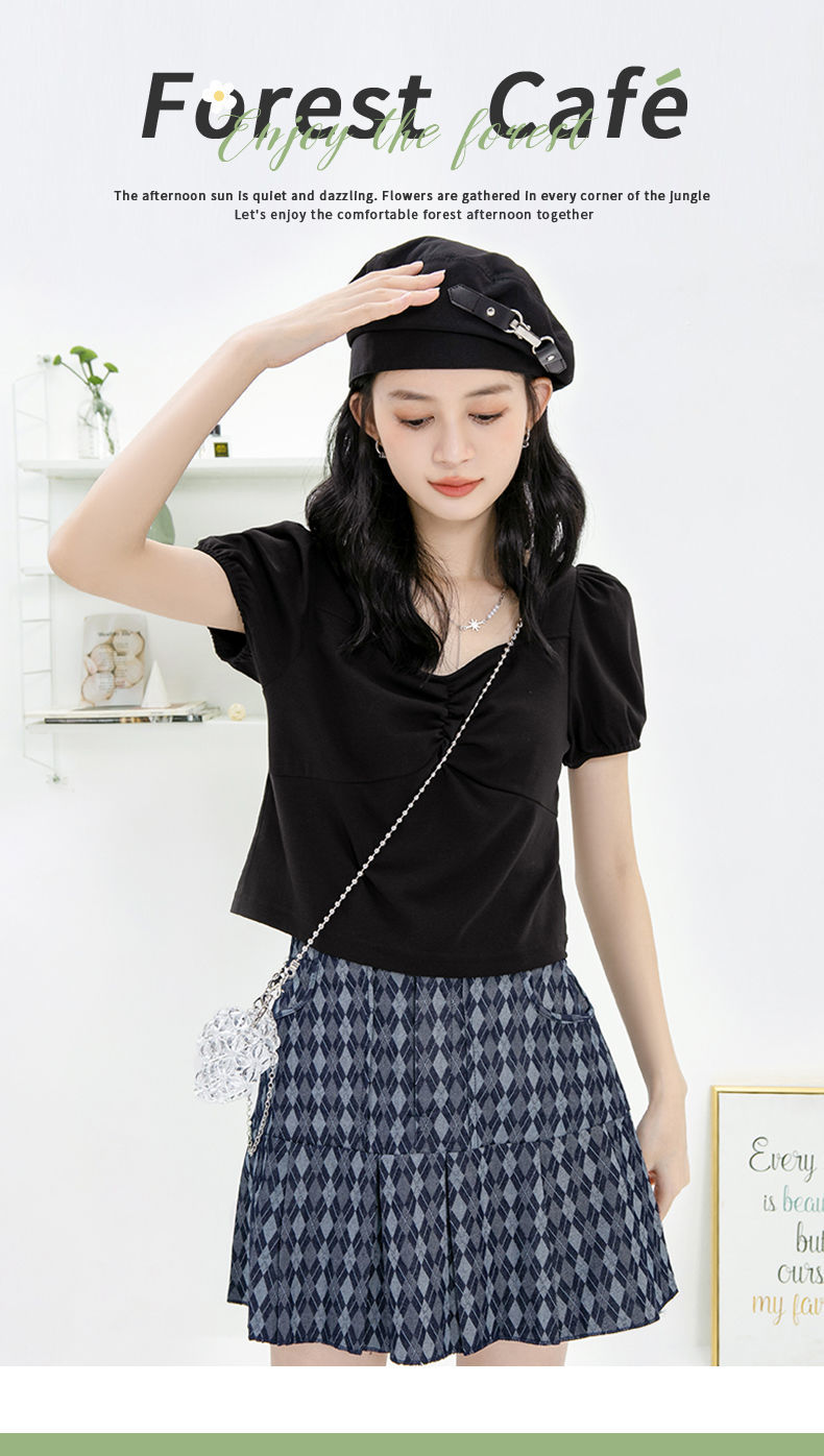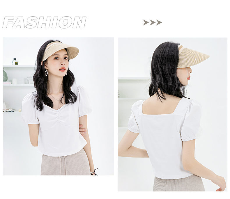 黛唯梵真维斯方领黑色T恤女别致小上衣ins早春2022年流行小衫短款上衣女