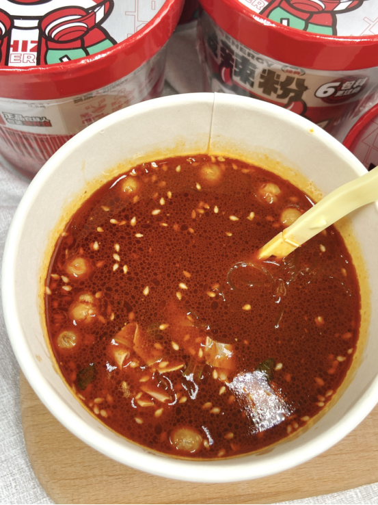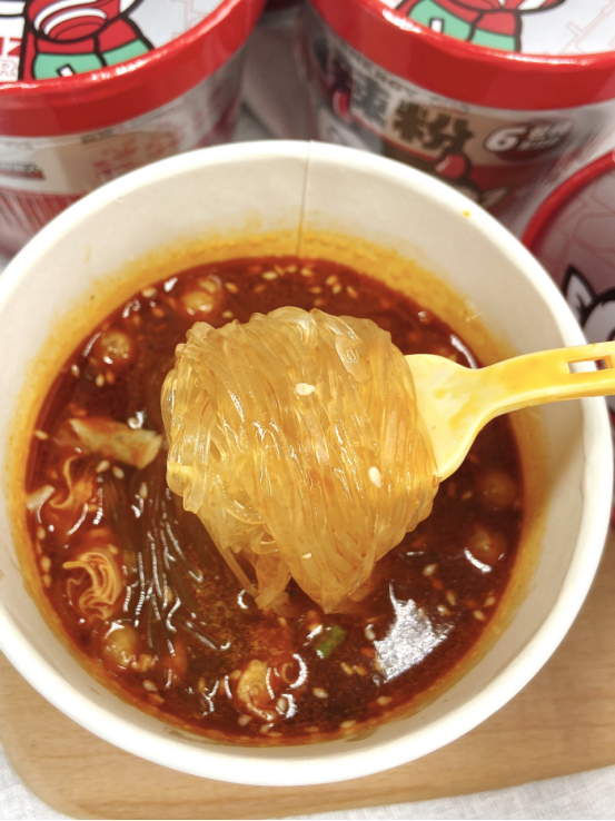 虽然同样是桶装“方便粉”,即泡即食,但味道,一点都不比在餐厅吃的酸辣粉差!
