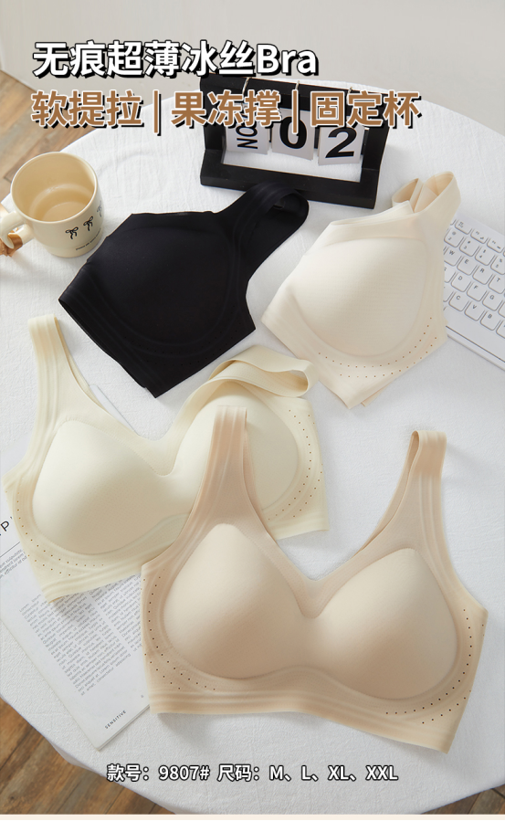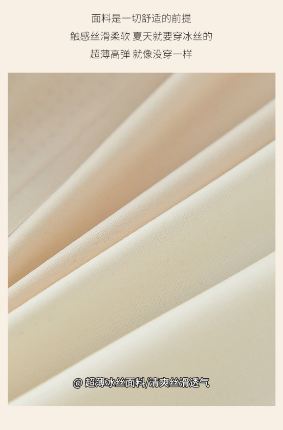 闷热的夏天也能感受到满满的透气感~ ✅ 冰丝凉感无痕面料 舒适度太赞啦! ✅ 上身秒降温 薄若无物 舒服到忘了它的存在! 给你更稳定的包裹感 质感摸起来舒服软乎乎~ 逆天颜值裸感隐形美背 上身完全不会勒呦!