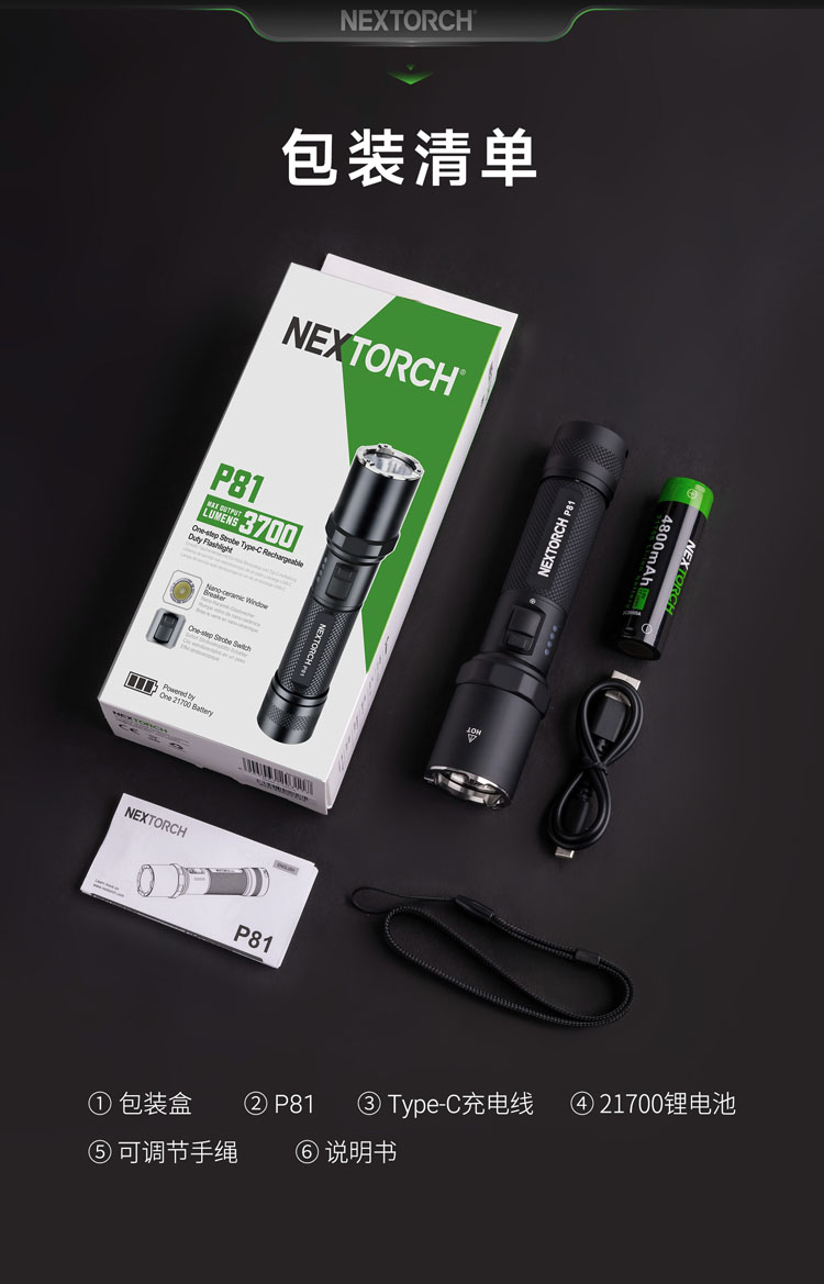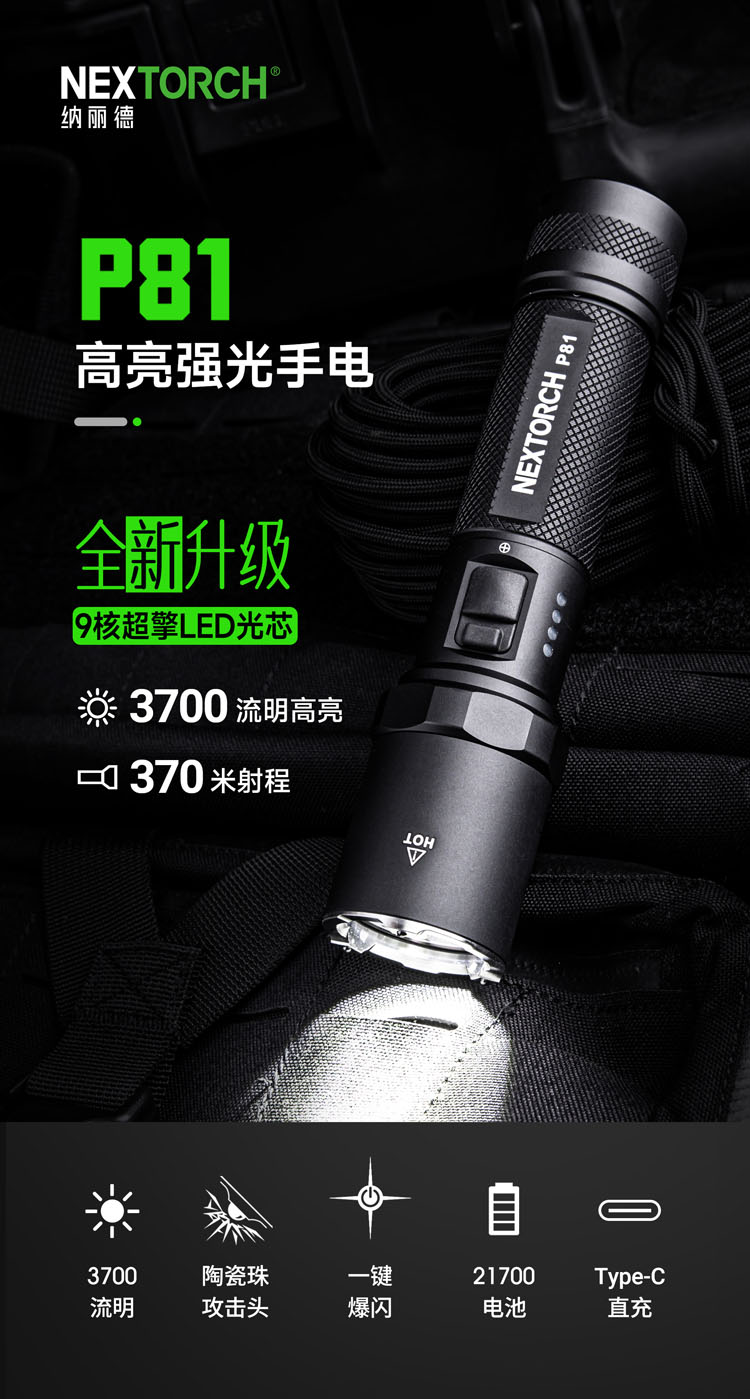【新品】P81升级版强光手电筒便携勤务战术户外超亮远射防水防身可充电