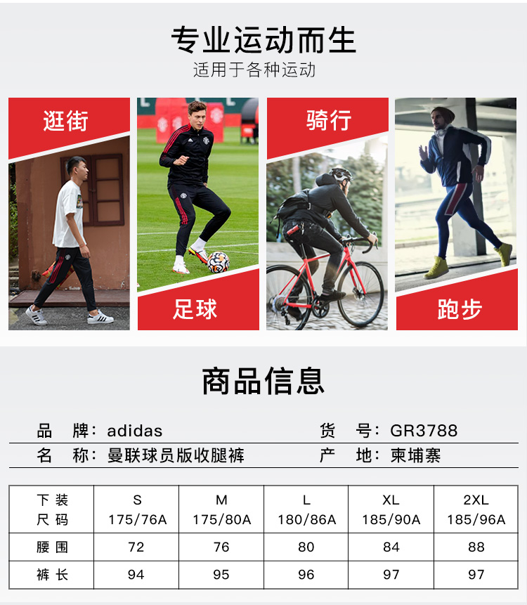 ADIDAS曼联球员版运动休闲训练收腿裤男GR3788