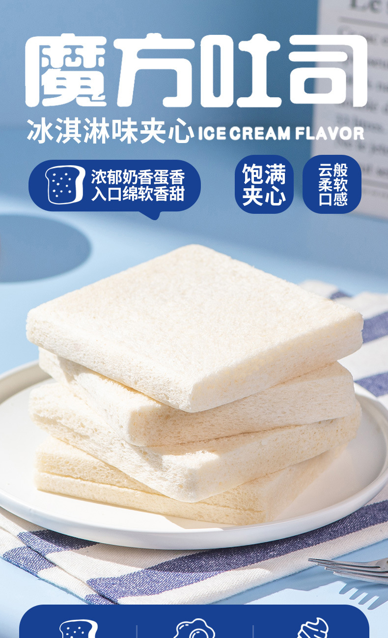 【壹得利夹心!魔方无边吐司冰淇淋】无皮去皮,面包糕点心,夜宵早餐休闲食品健康