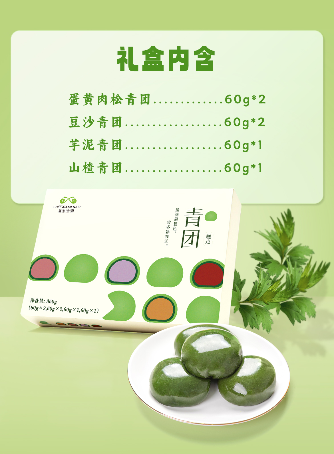 「青团」春日限定礼盒 揉满屉碧色 尝多彩春天 厦航空厨春日限定青团礼盒6粒装360g