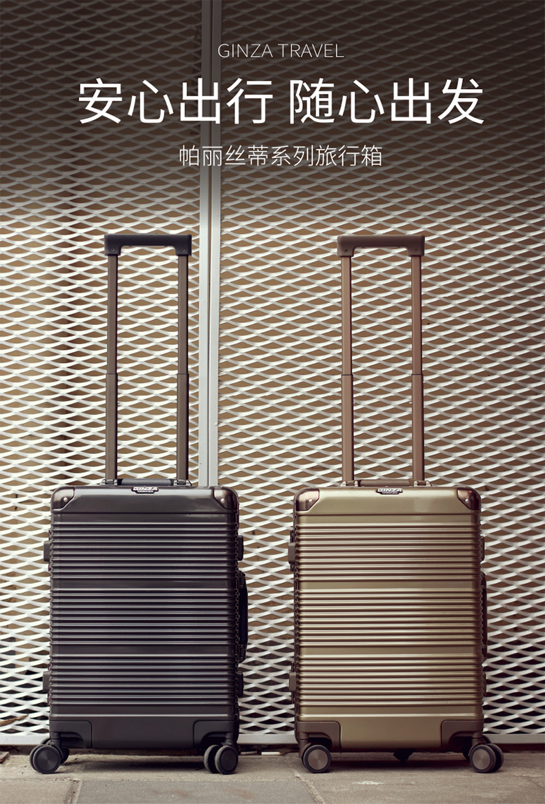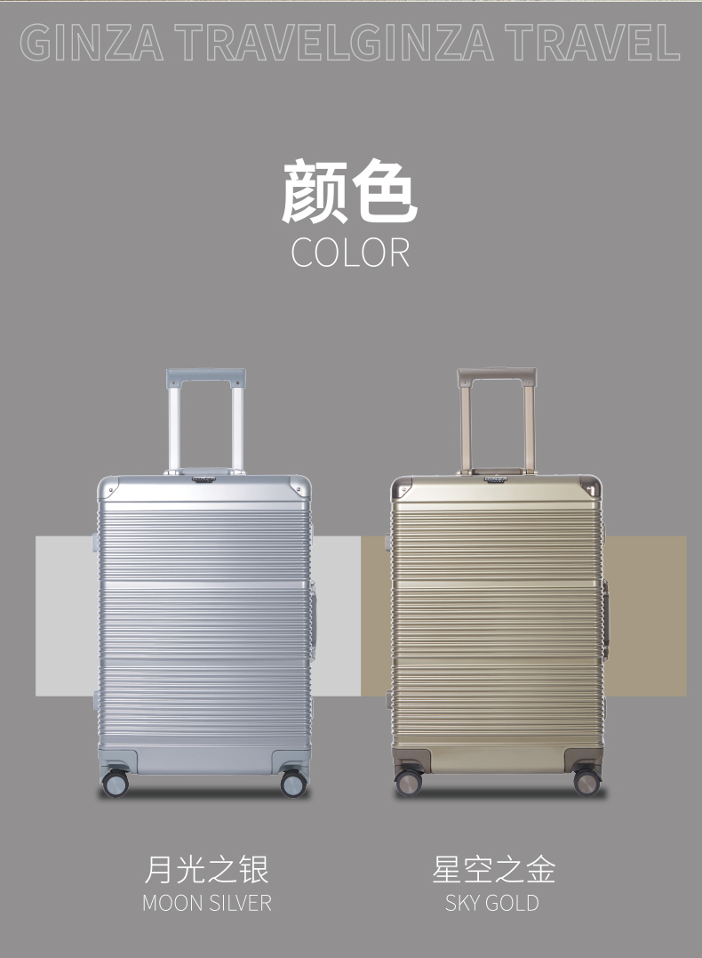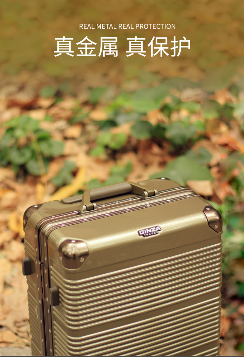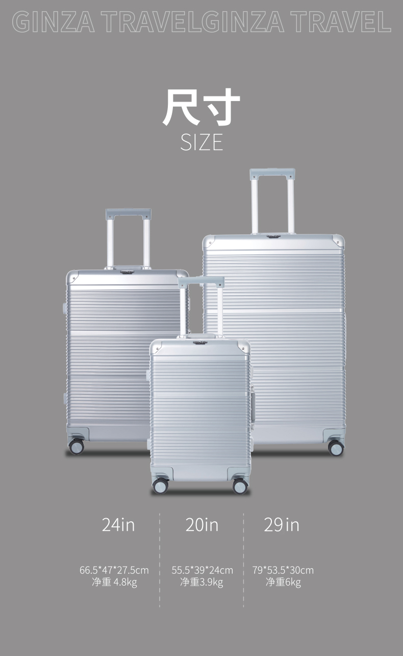 银座PC铝框旅行箱飞机轮20/24/29寸商务登机箱密码锁拉杆箱男女6618K
