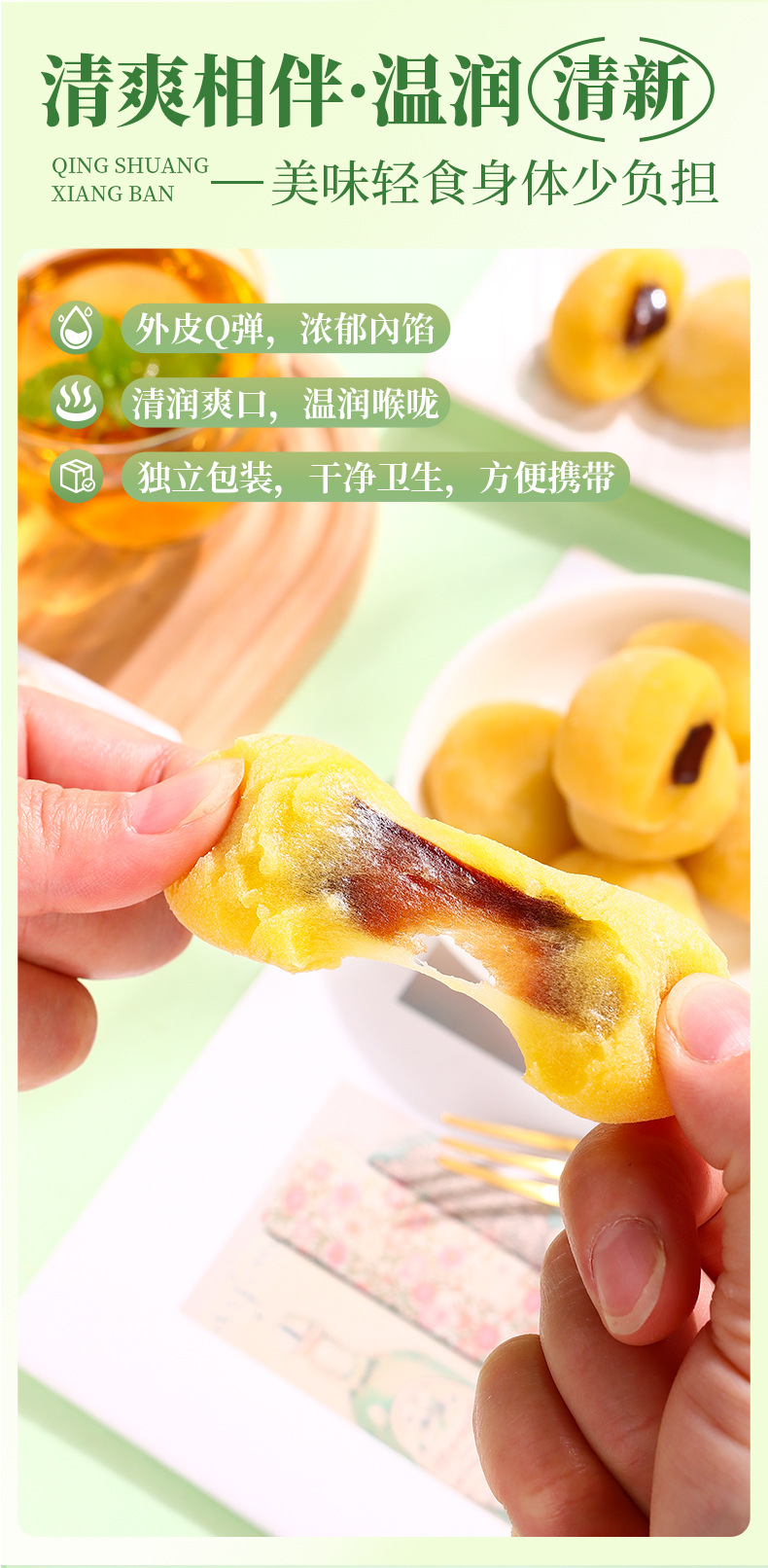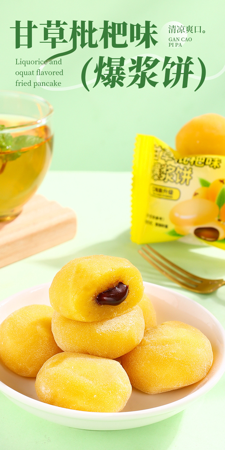 【减少身体“腹”担!甘草枇杷爆浆饼夹心麻薯】外皮Q弹浓郁内陷,清润爽口温润喉咙,营养美味,糯米滋营养健康老人糕点零食健康特价清仓