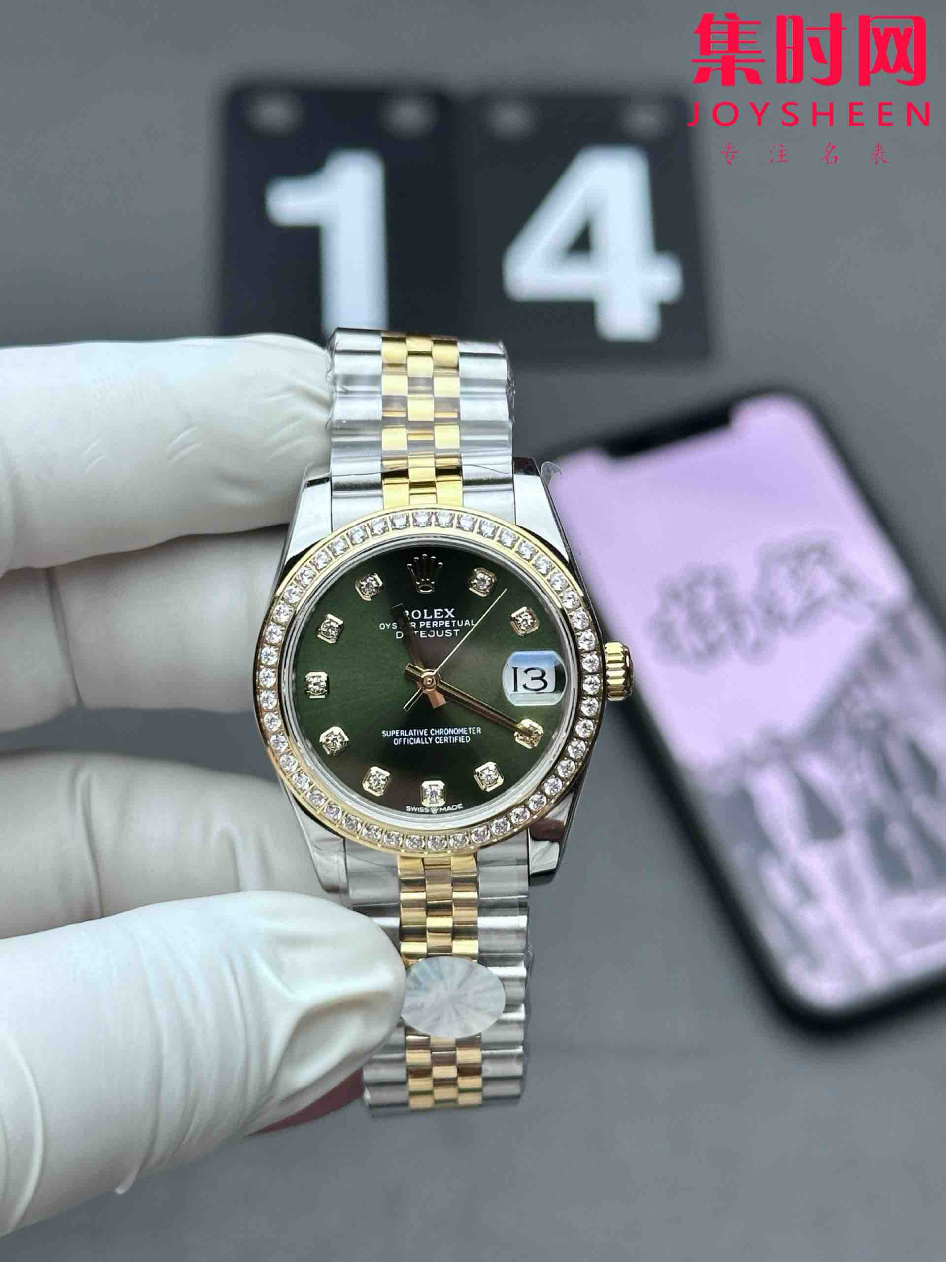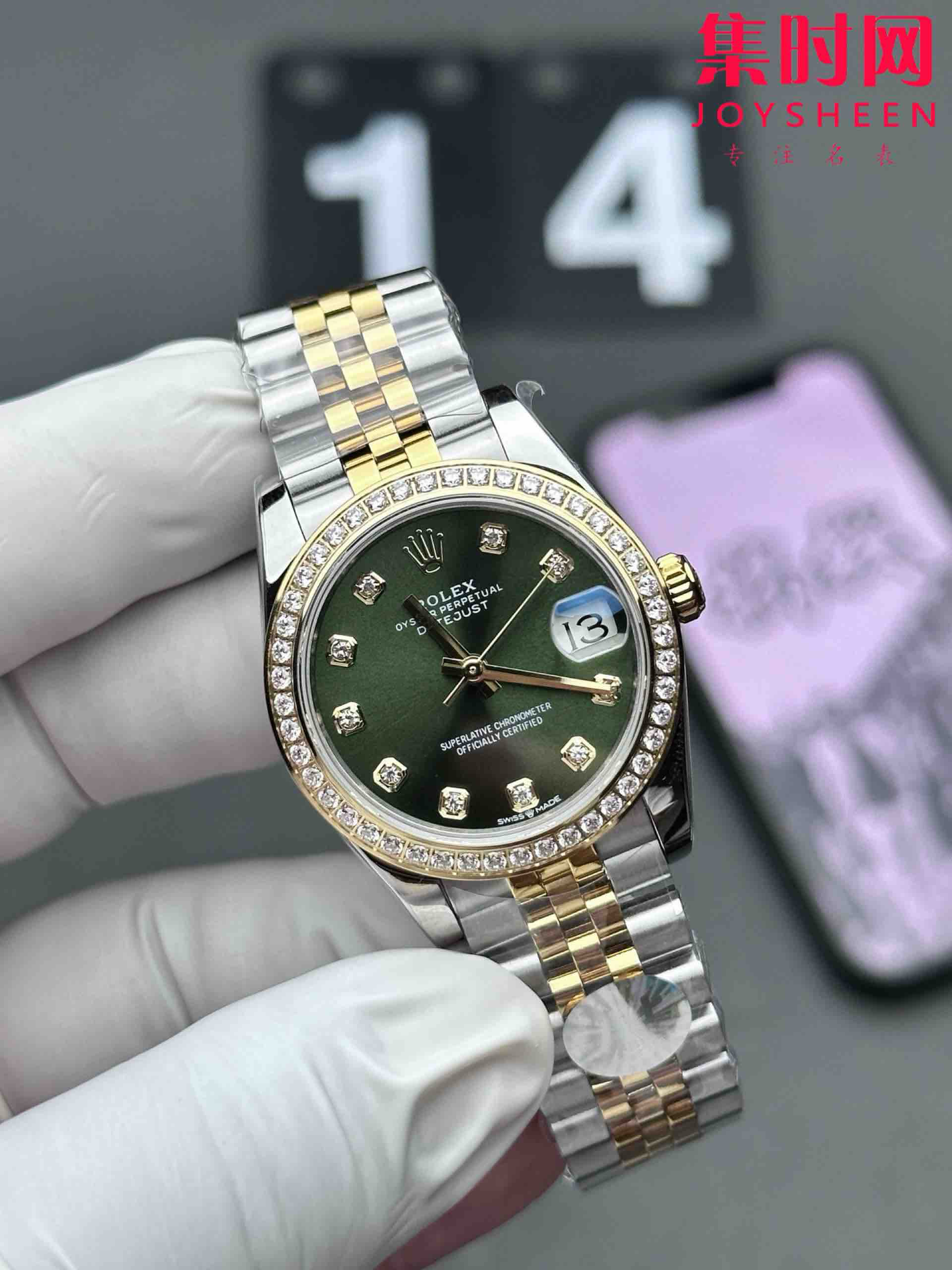 【钻圈款】劳力士日志型31系列 女士腕表 绿盘钻面 机芯:搭载改Cal.2236