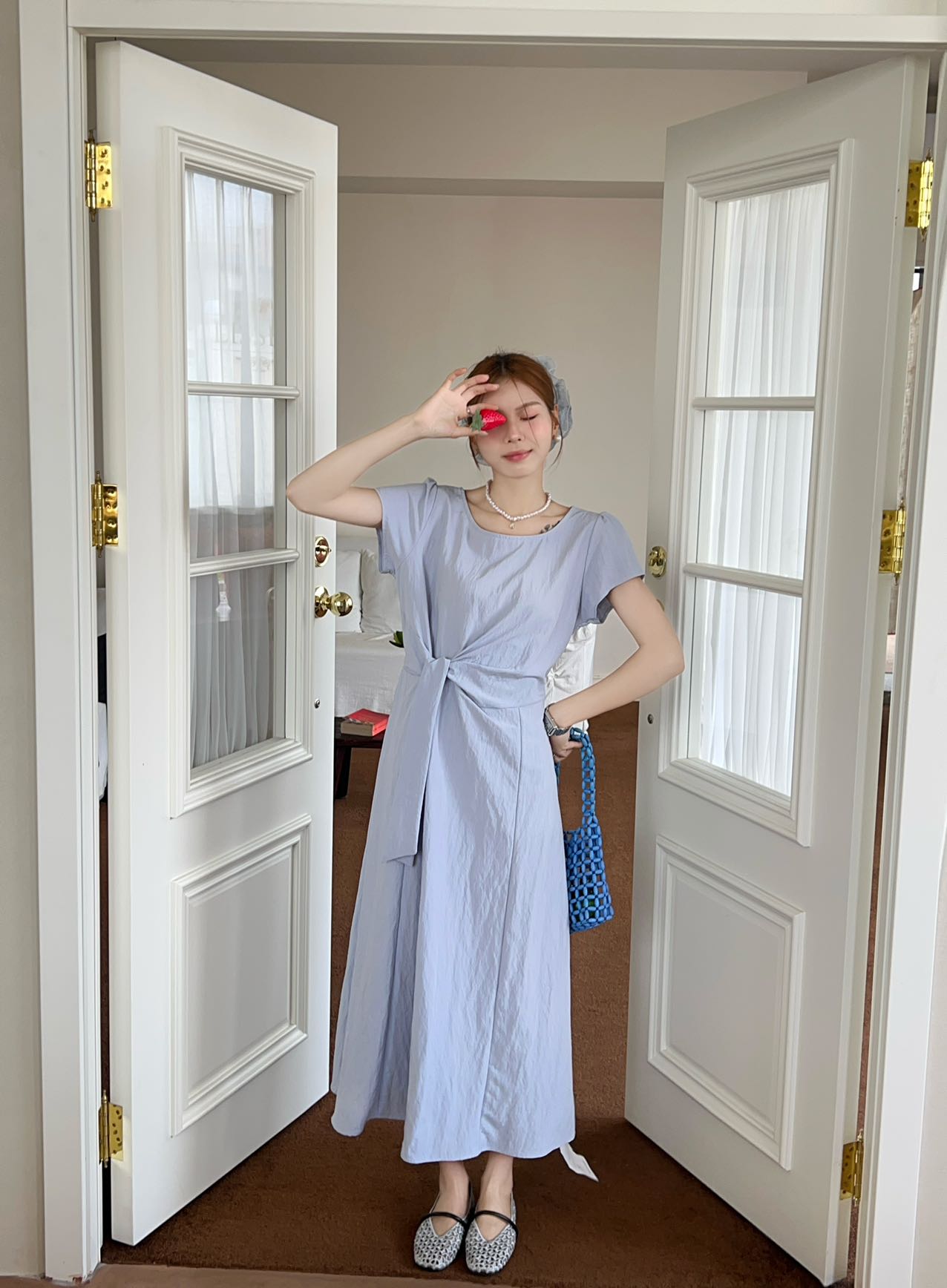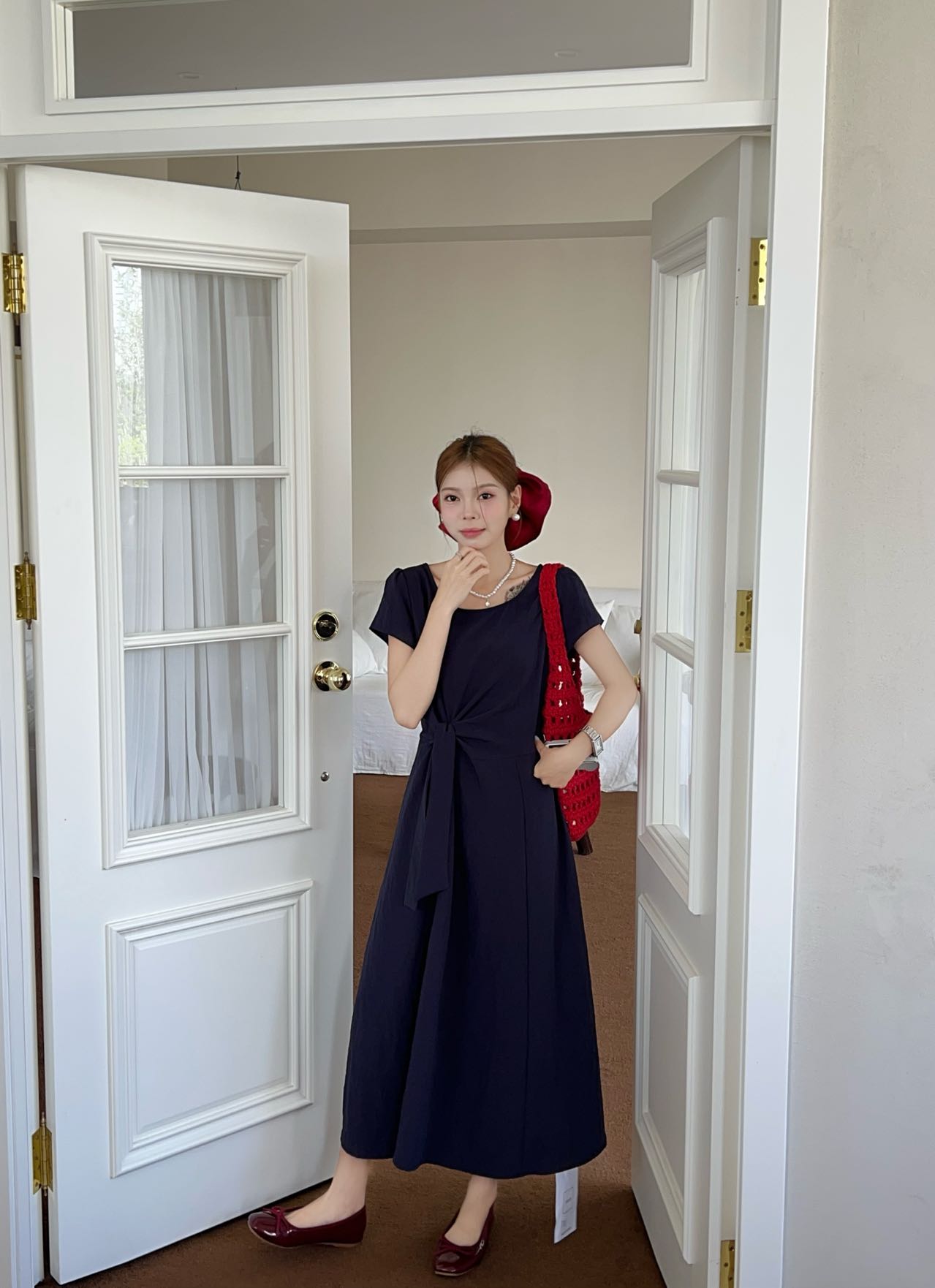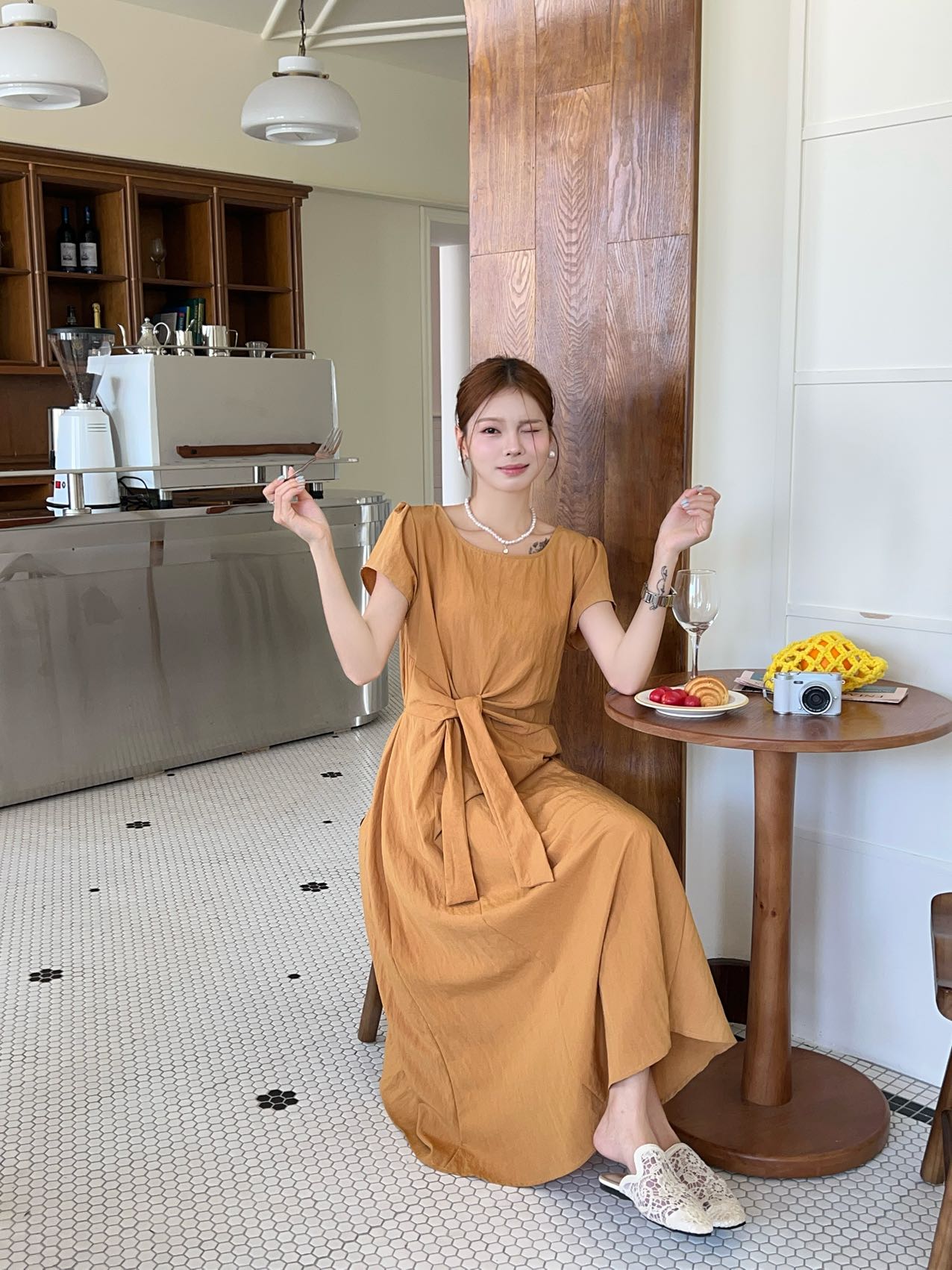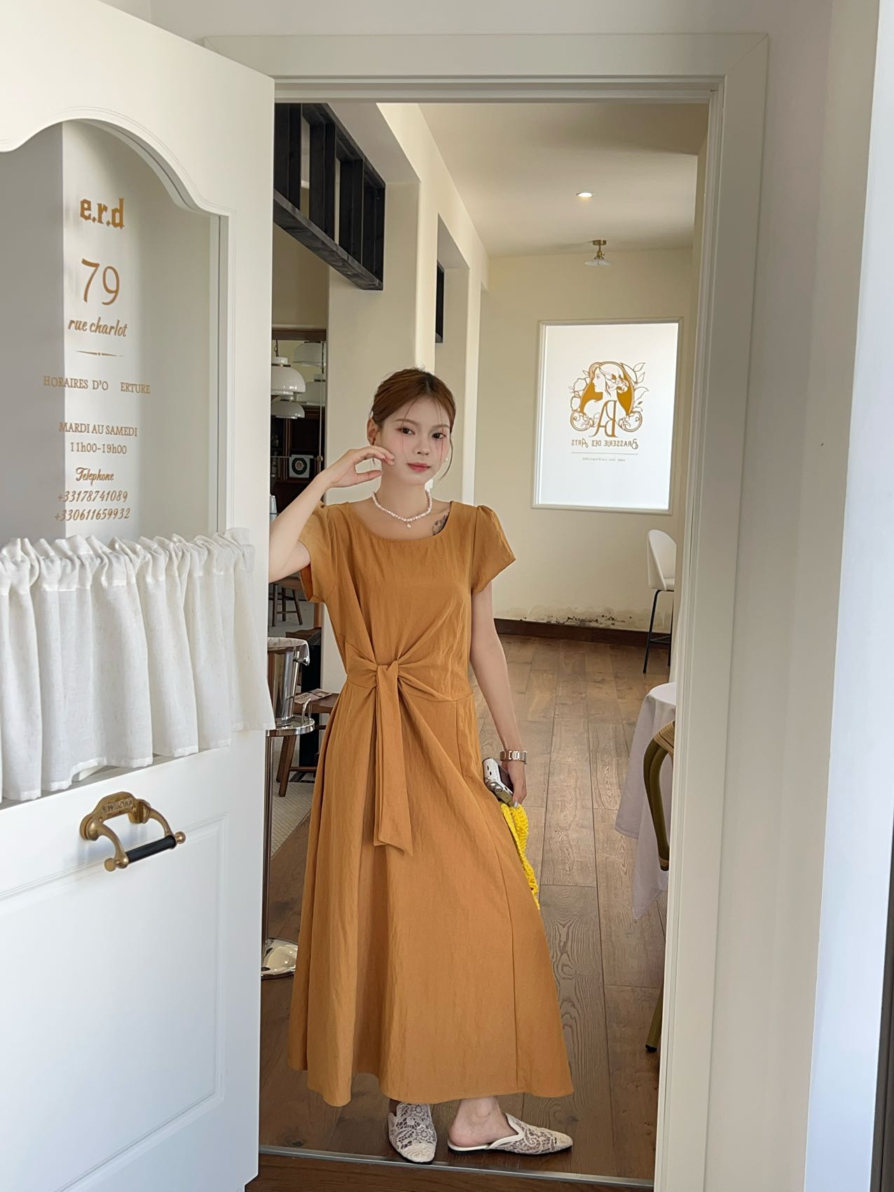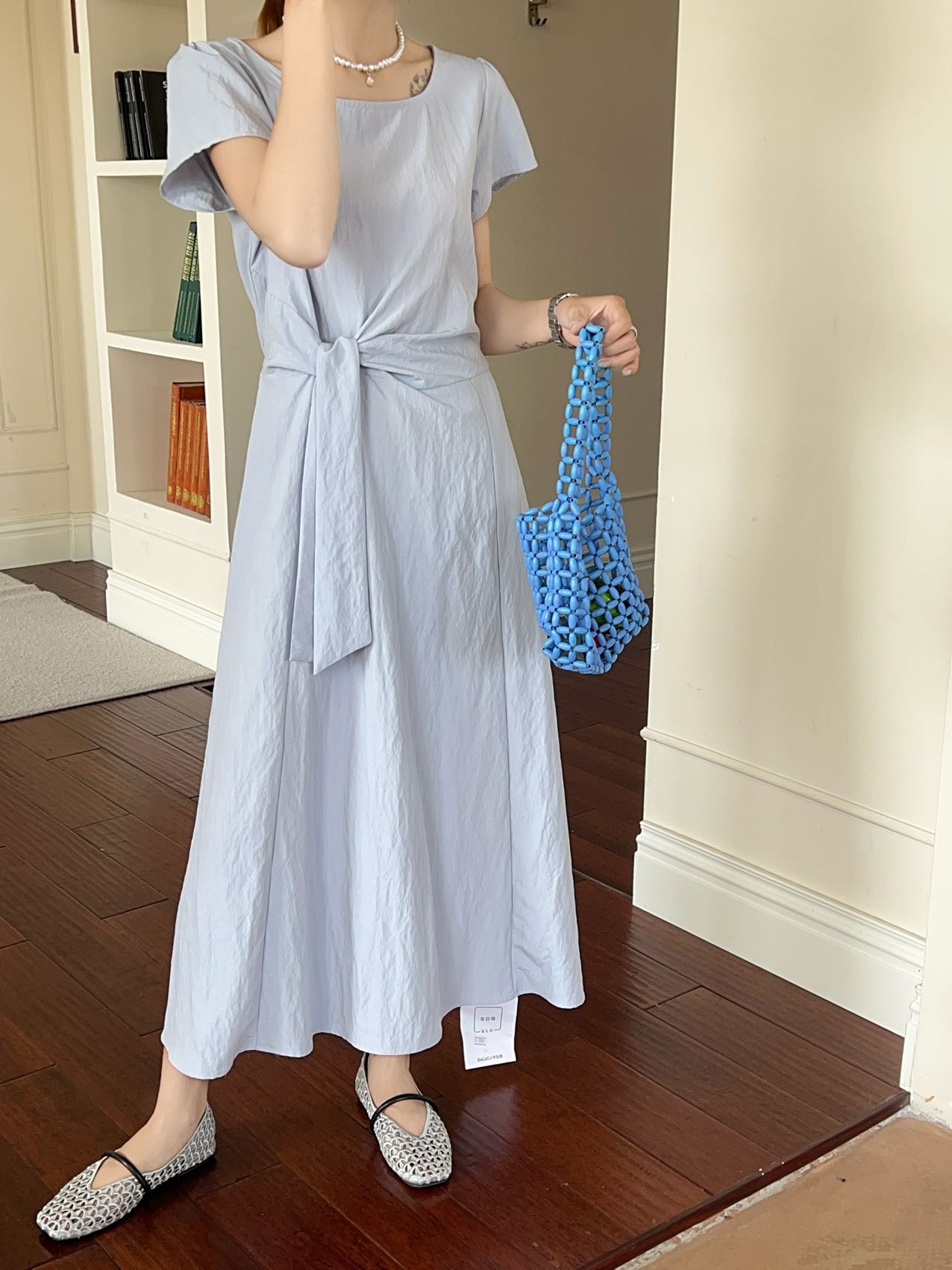 【GZ】无忧购法式圆领系带收腰显瘦小个子休闲短袖连衣裙1952(截单后3-5天发货)