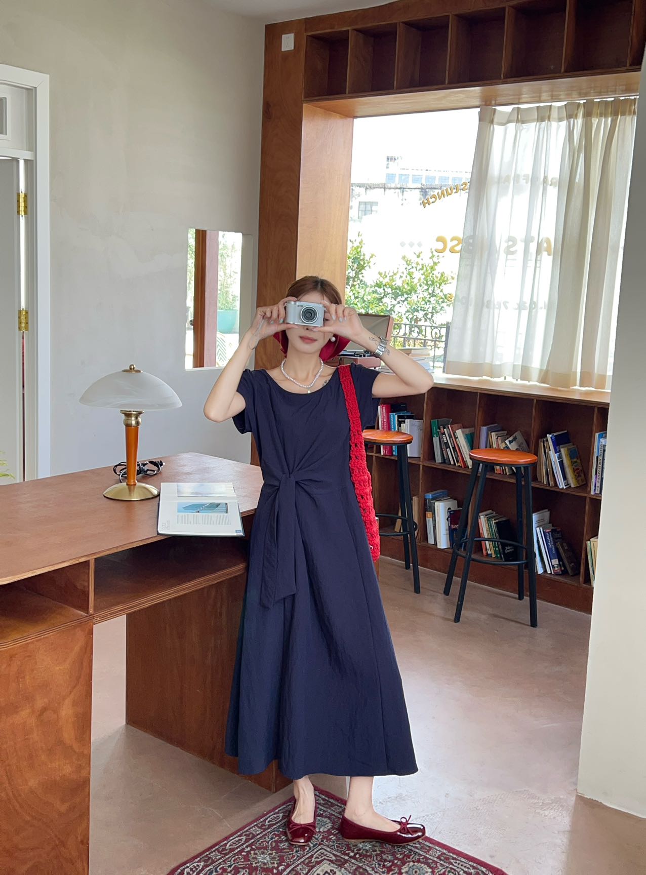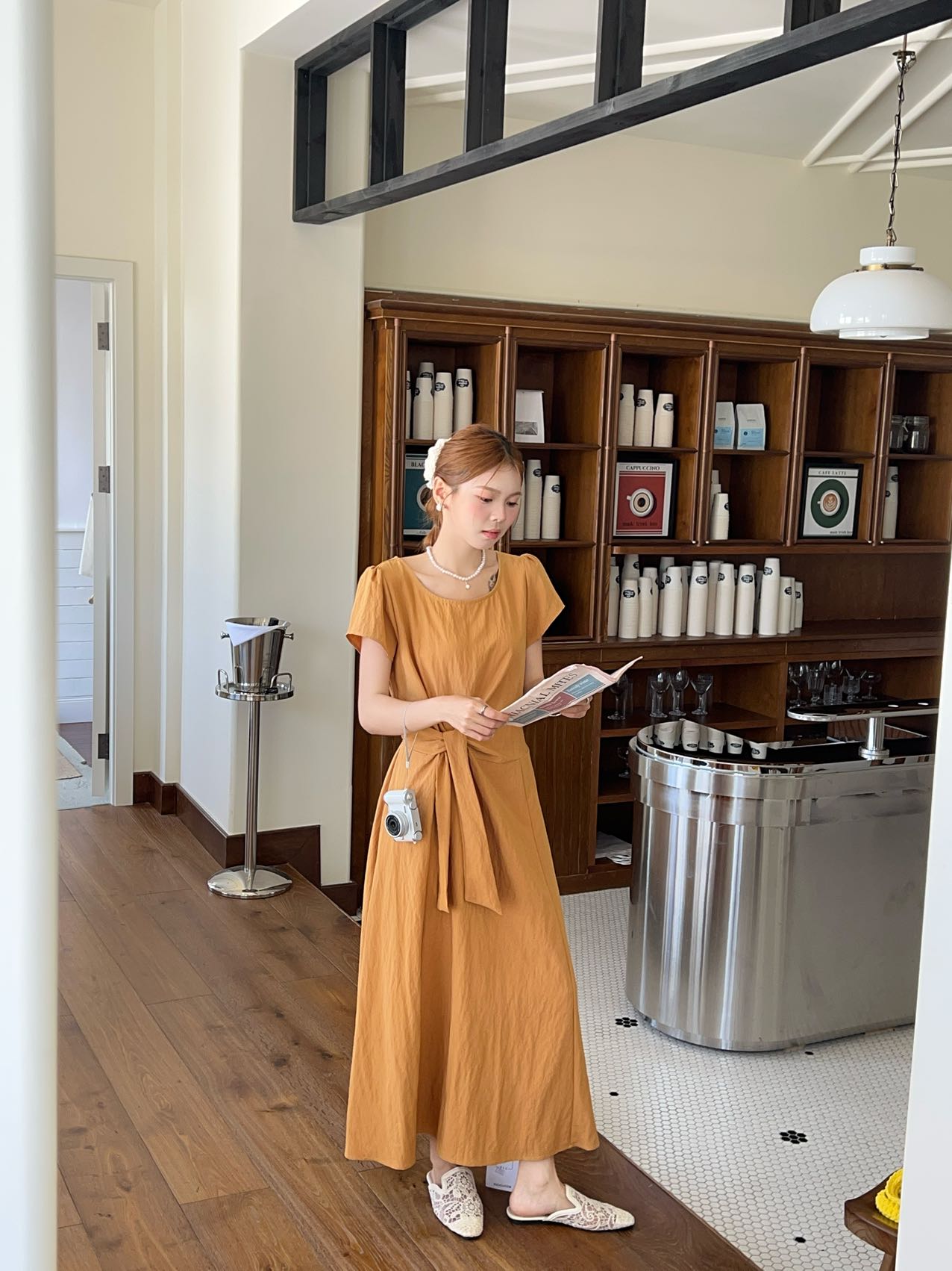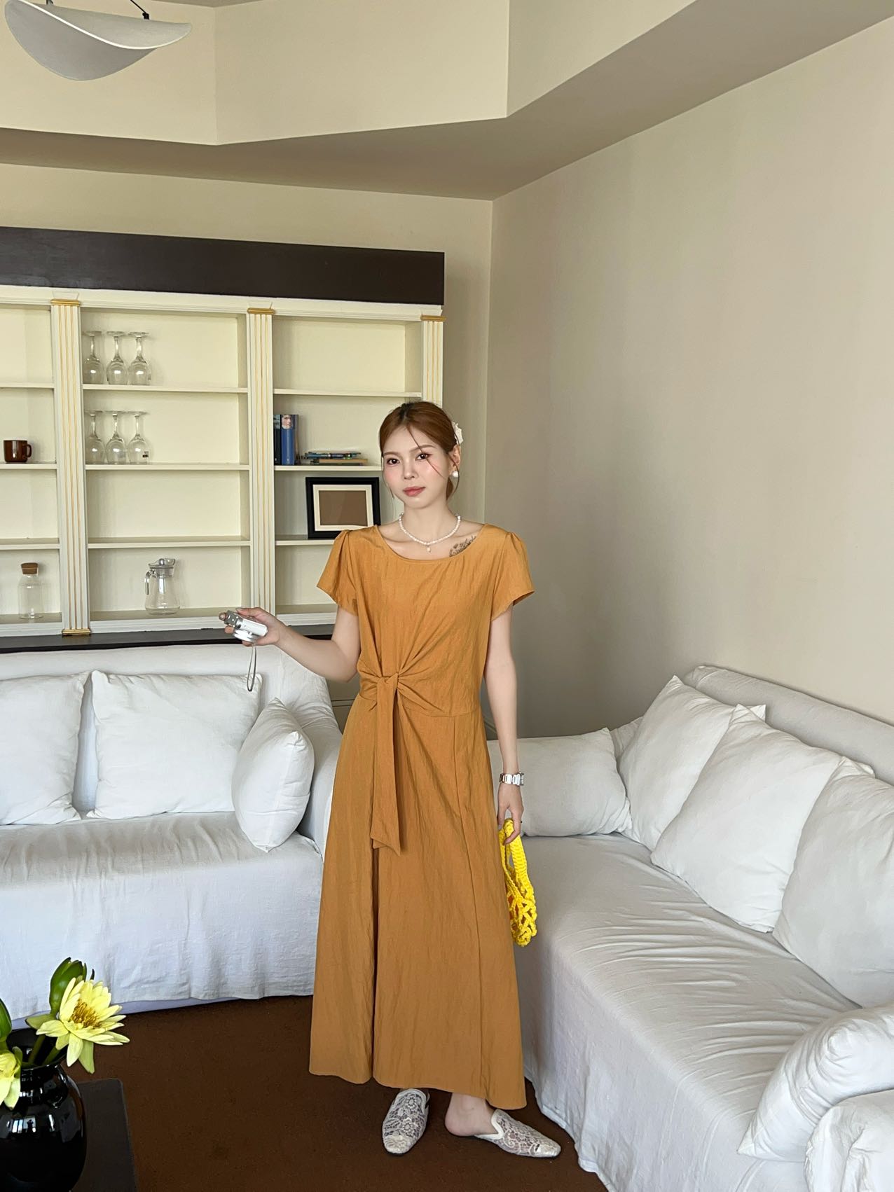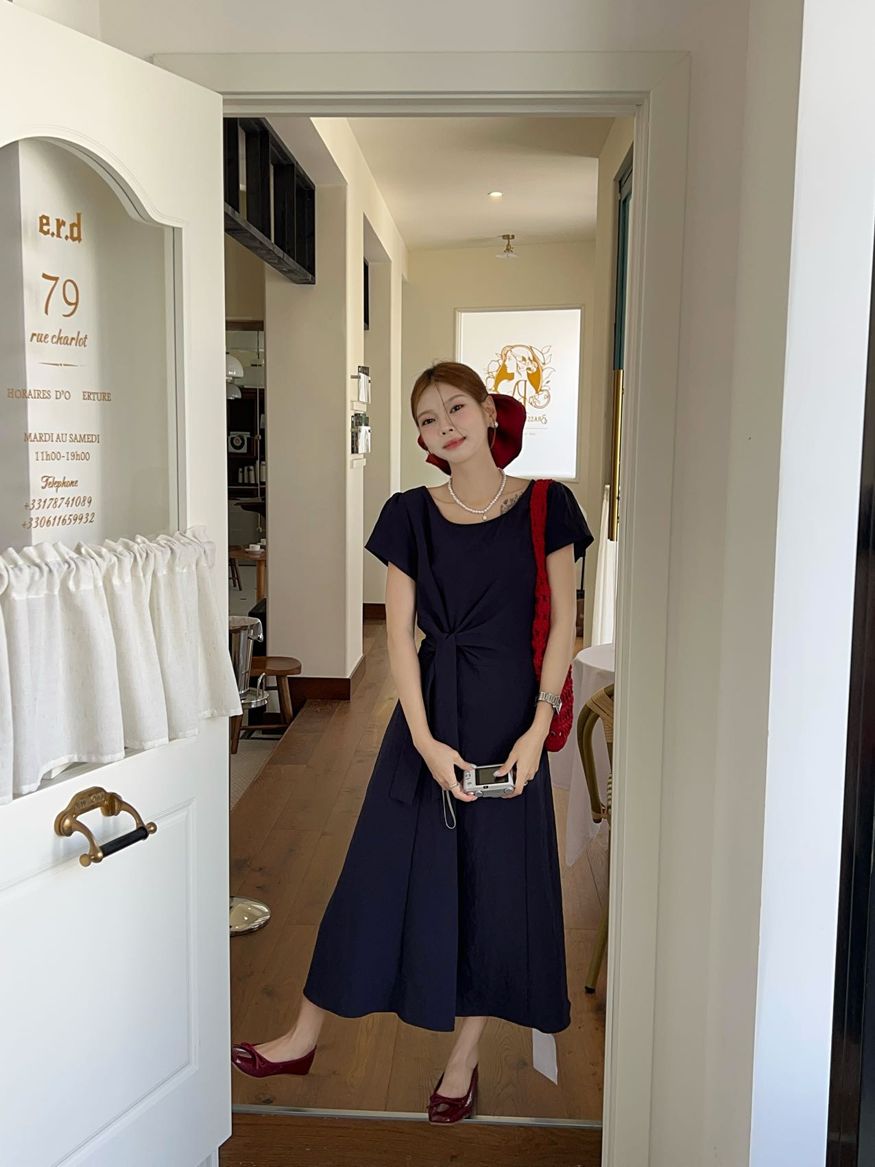 【GZ】无忧购法式圆领系带收腰显瘦小个子休闲短袖连衣裙1952(截单后3-5天发货)
